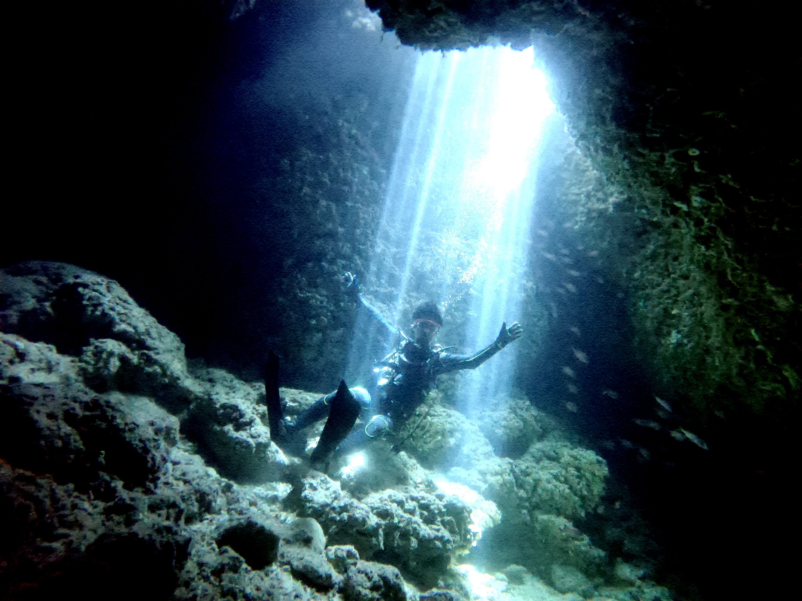 「通り池」透明度20m 天気☀ 気温32℃ 水温29℃ 南東の風 波1m