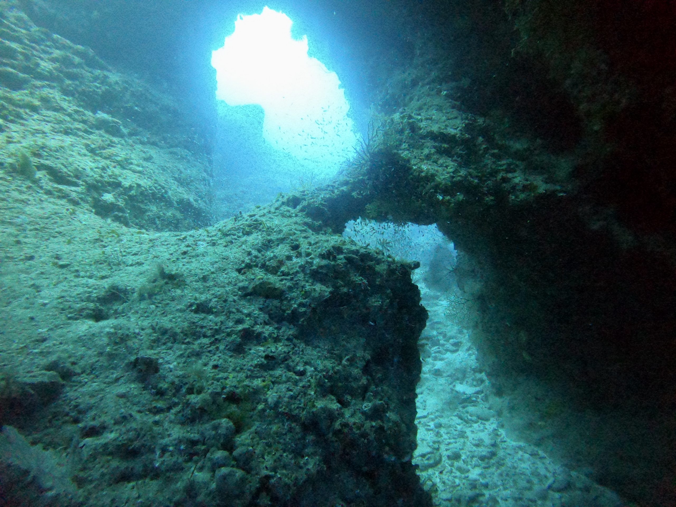 「サプライズホール」 透明度20m 天気:晴れ 気温:33℃ 水温:30℃ 南西の風 波:2m