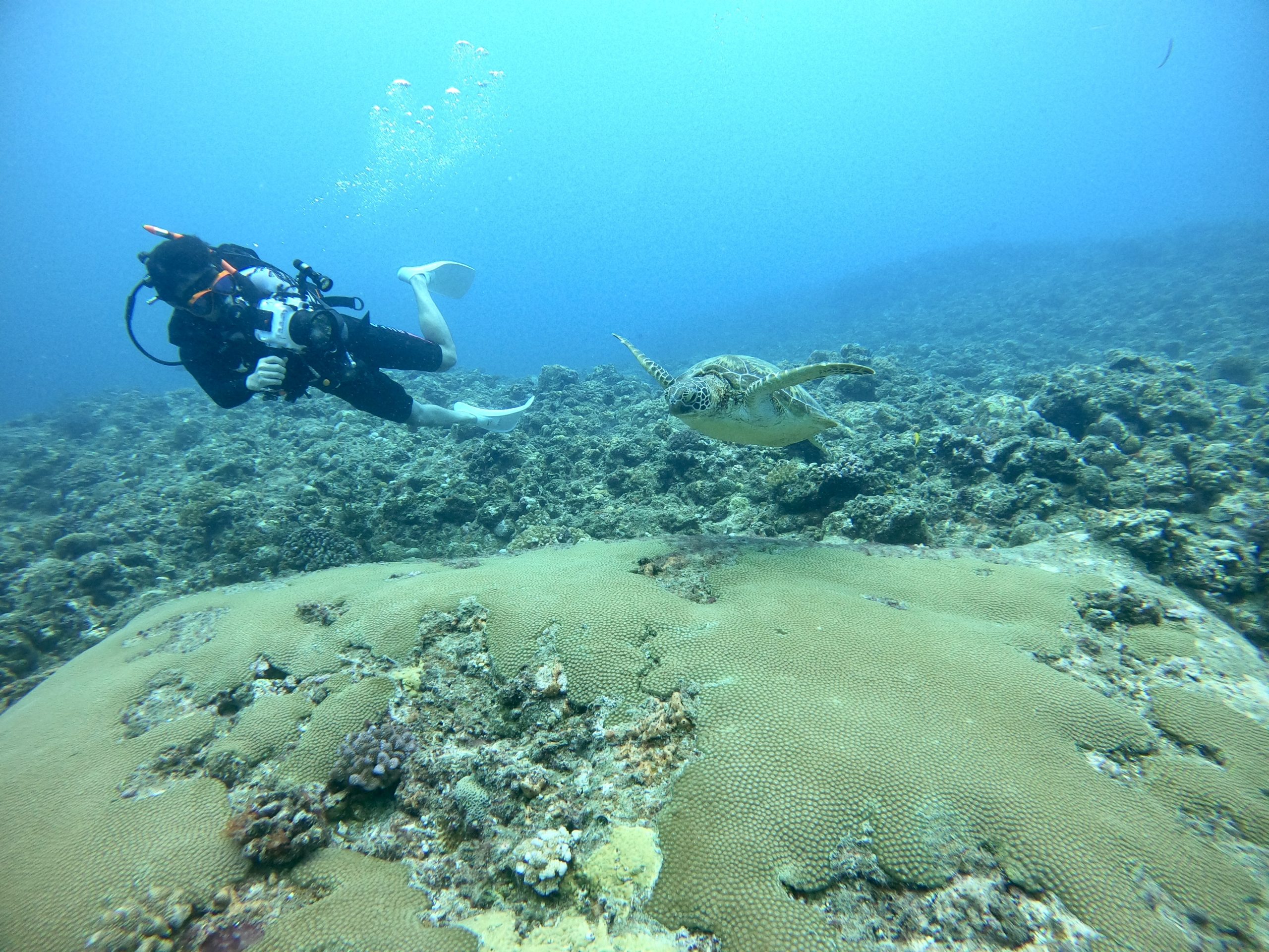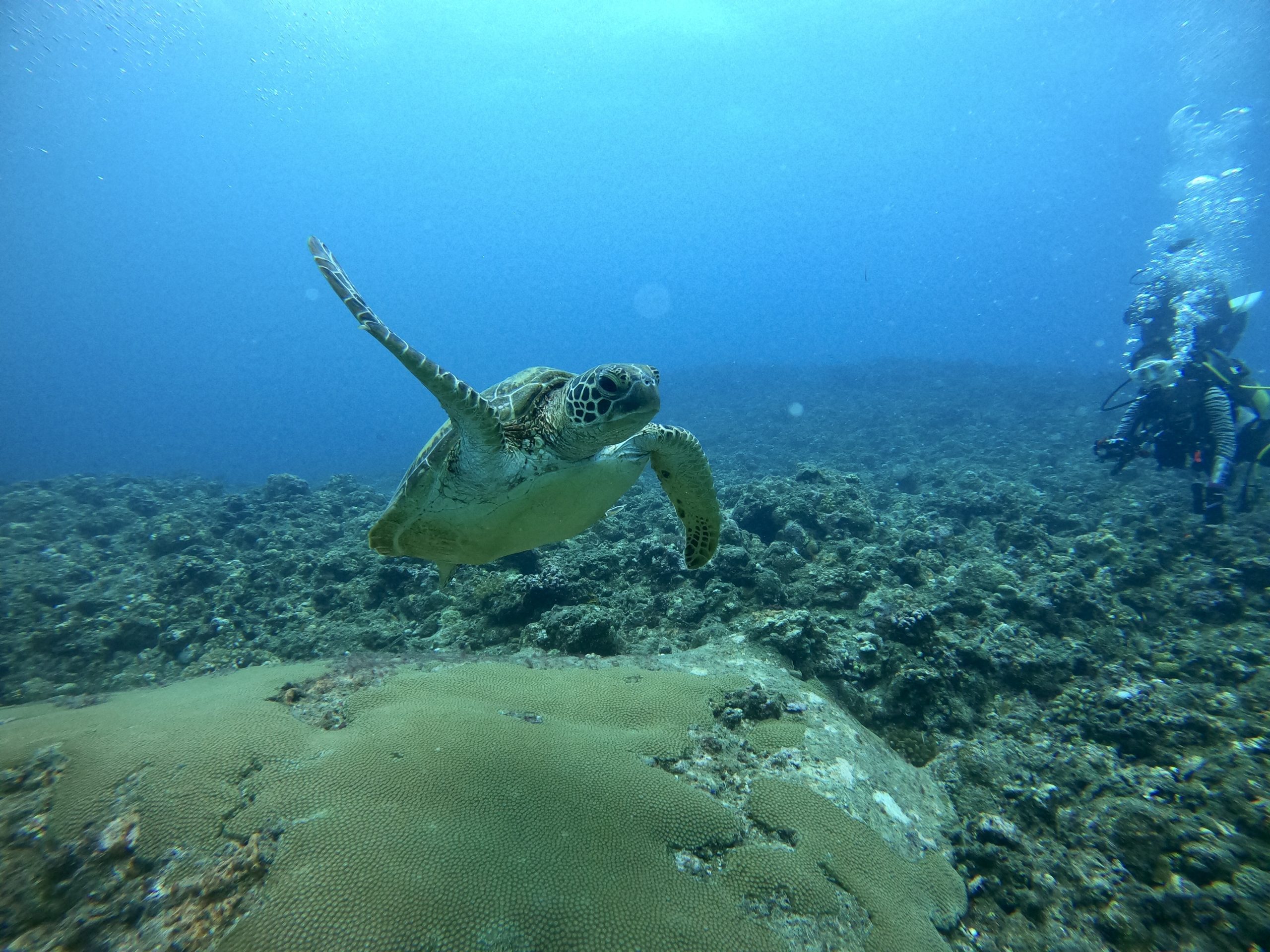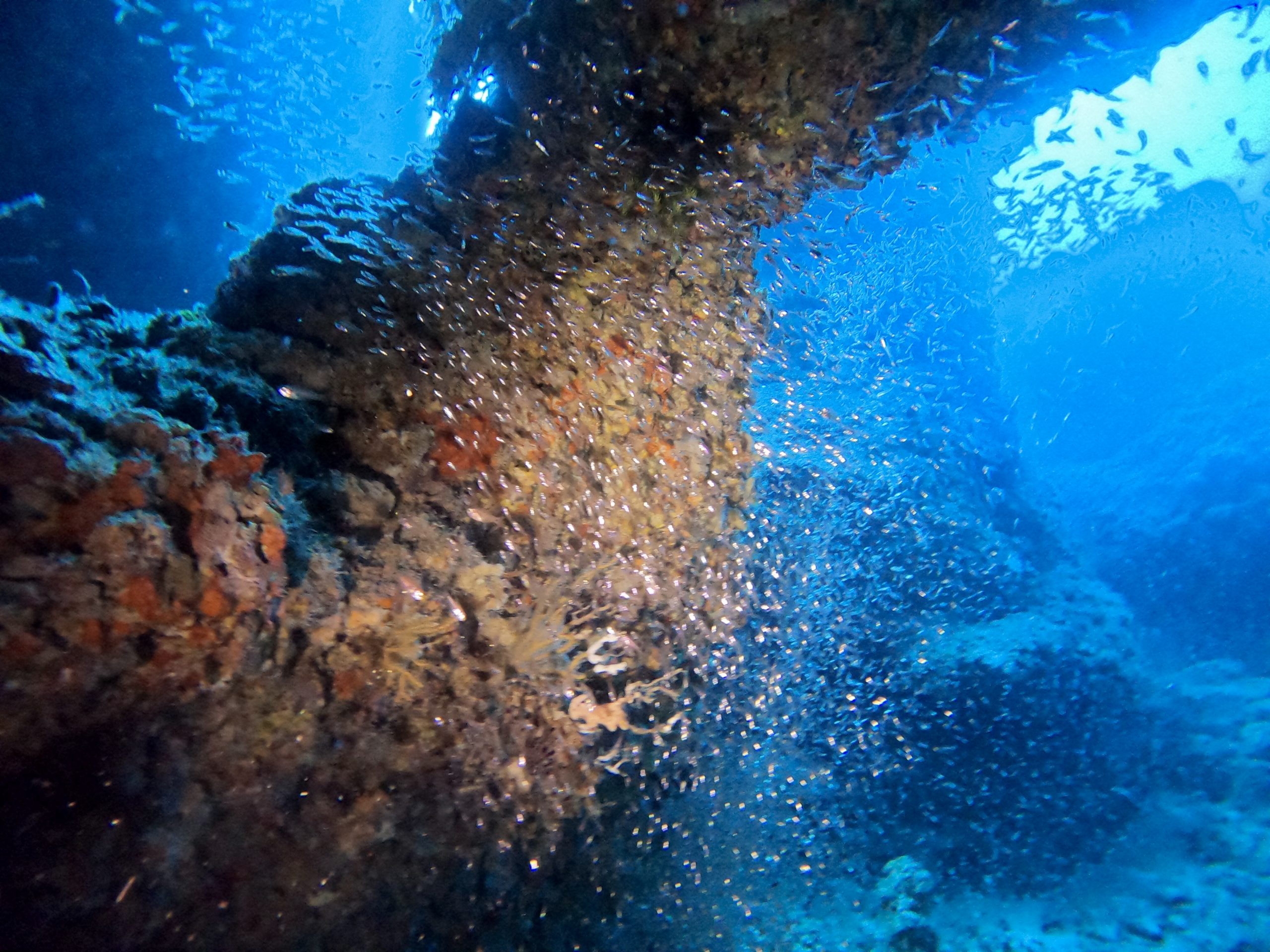 船下の透明度、Zアーチの透明度、カメの根の透明度、場所場所によって、良くなったり悪くなったりでした。アーチにはスカシテンジクダイがたくさん。カスミアジの軍団がスカシテンジクダイを狙って猛スピードでアーチの中を暴れていました。すごい迫力!帰りは至近距離でアオウミガメに会えました。