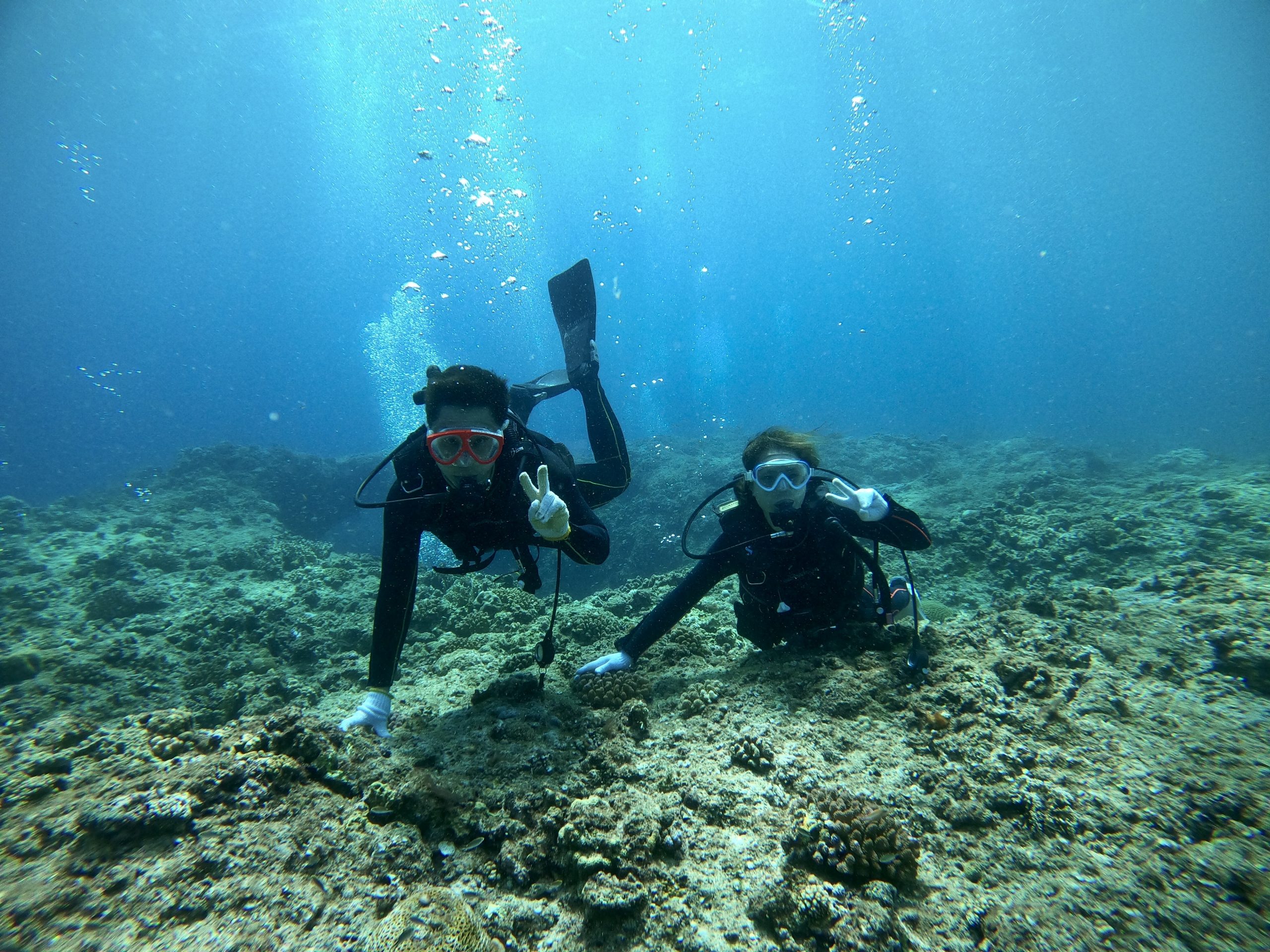 体験ダイビングのゲストさんは何度も経験があるそうで、ダイバーのように海の中を自由自在に泳いでいました。