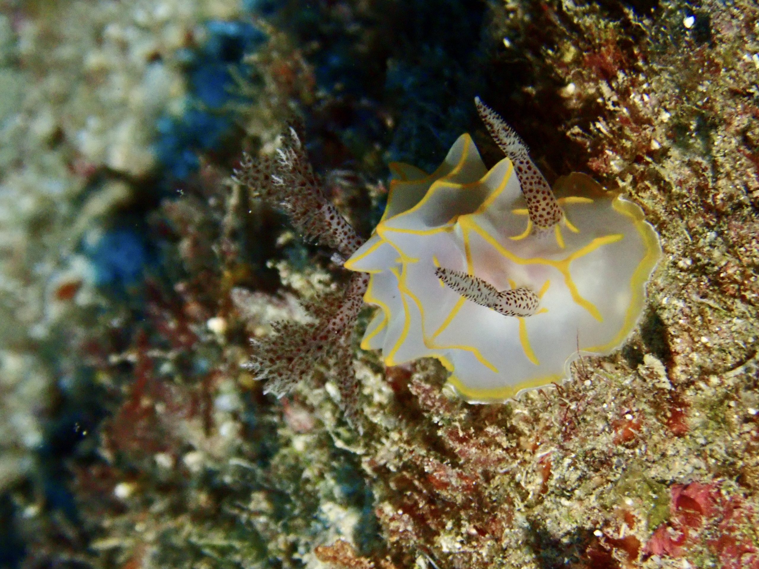 #今日紹介した生物 ハダカハオコゼ ソリハシコモンエビ キスジカンテンウミウシ ノコギリガニ アカモンガニ オオモンカエルアンコウ グルクン ノコギリダイ モンダルマカレイ アサドスズメダイ オキナワスズメダイ