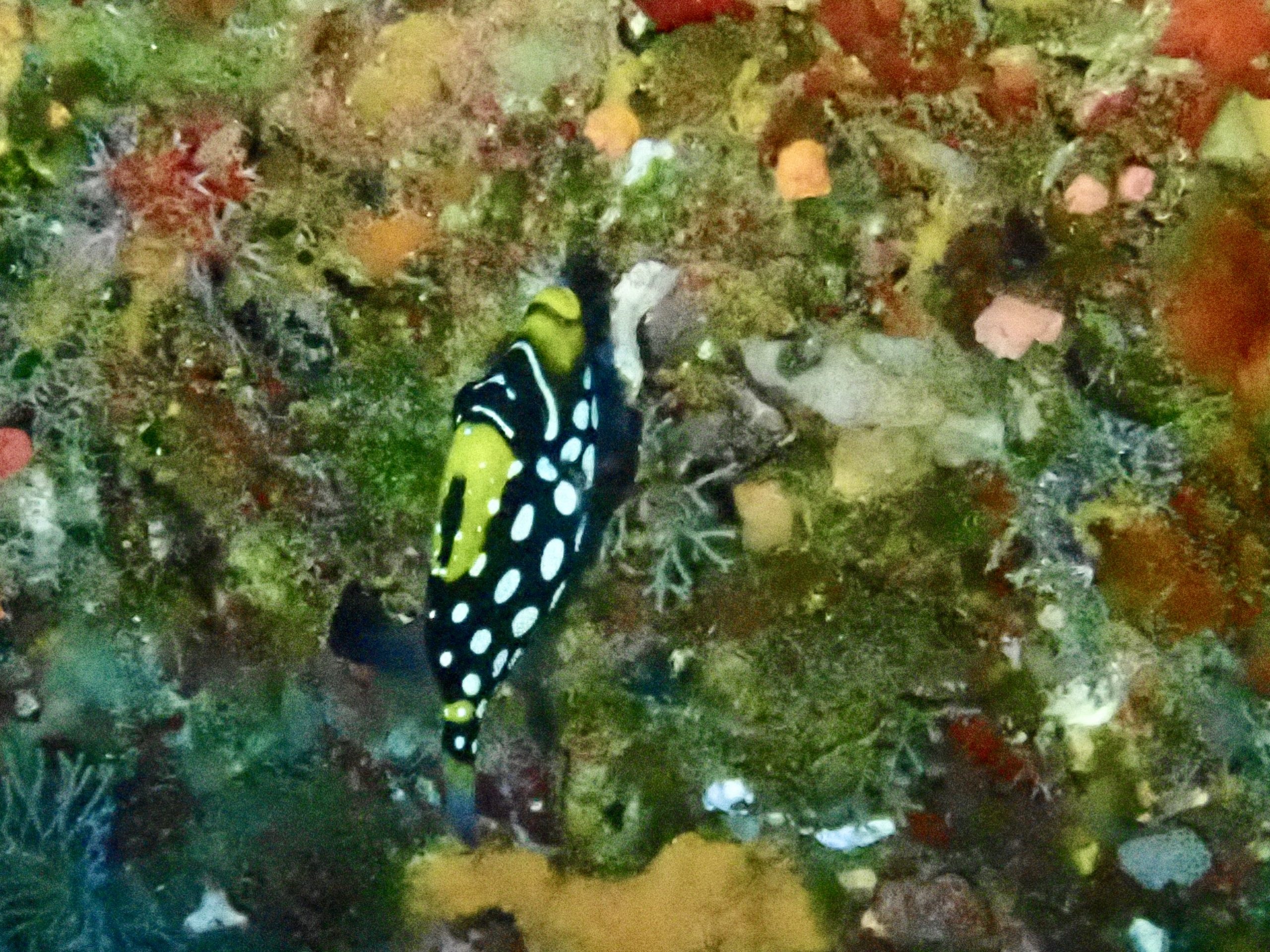 最後は幼稚園でマクロ探し。みんなでゴロタをひっくり返してみたり、ライト片手に壁を捜索してみたり。とっても小さなイロブダイの子を最近見かけます。ピグミー狙いでかなり捜索しましたが、今日は会えず・・・。キャラメルウミウシはとっても小さいサイズでした。