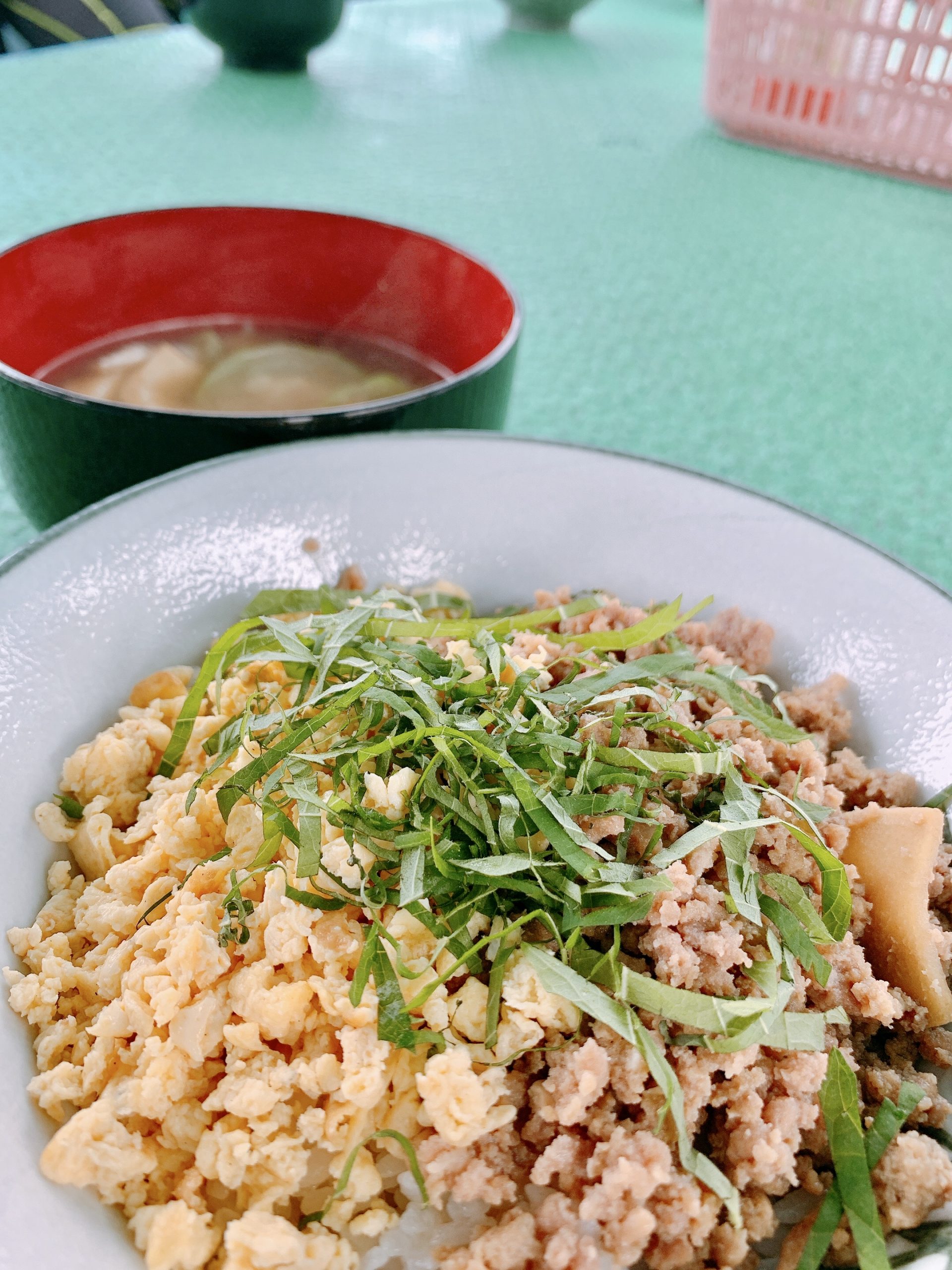 そぼろ丼 ヘチマのみそ汁