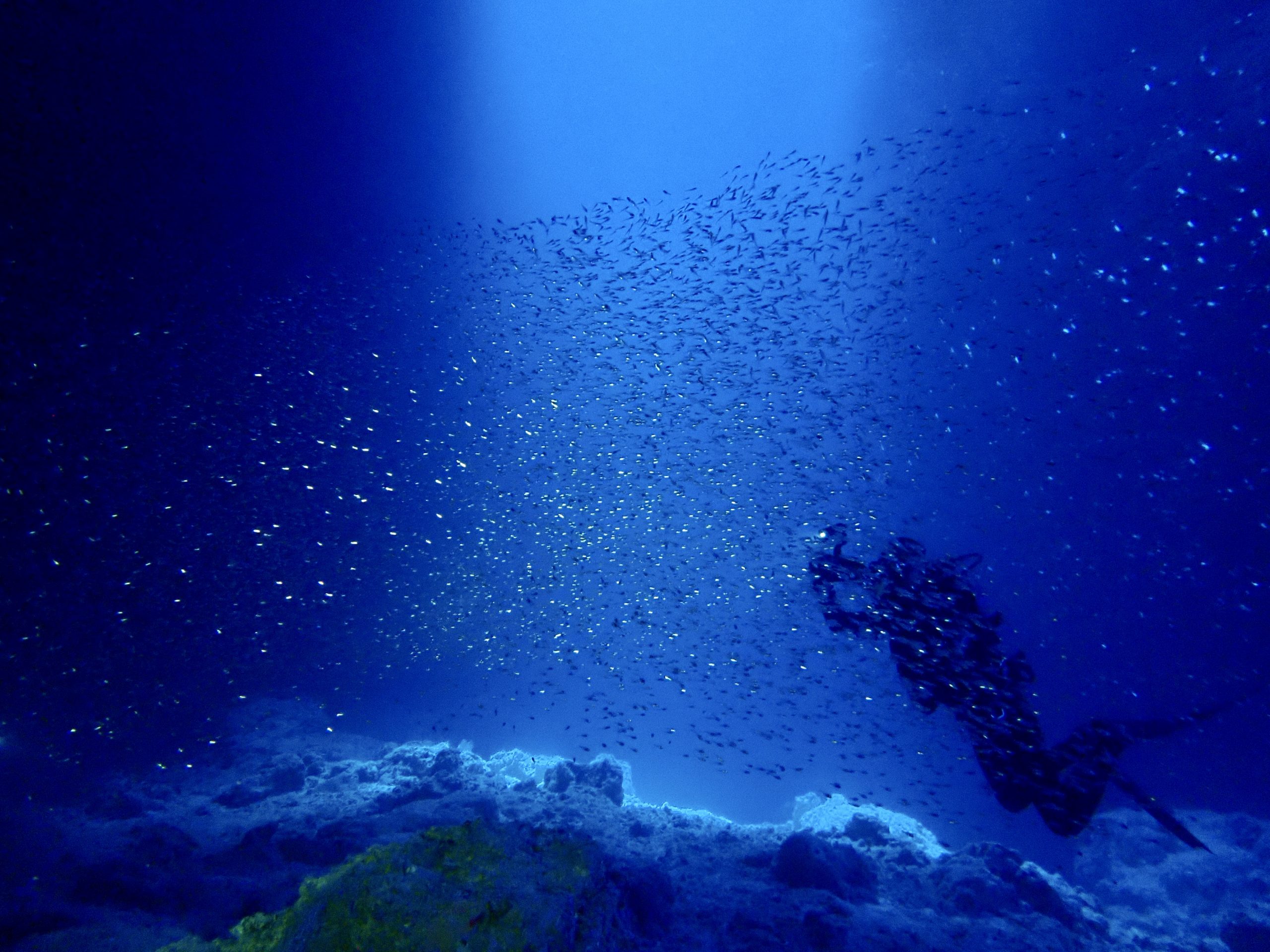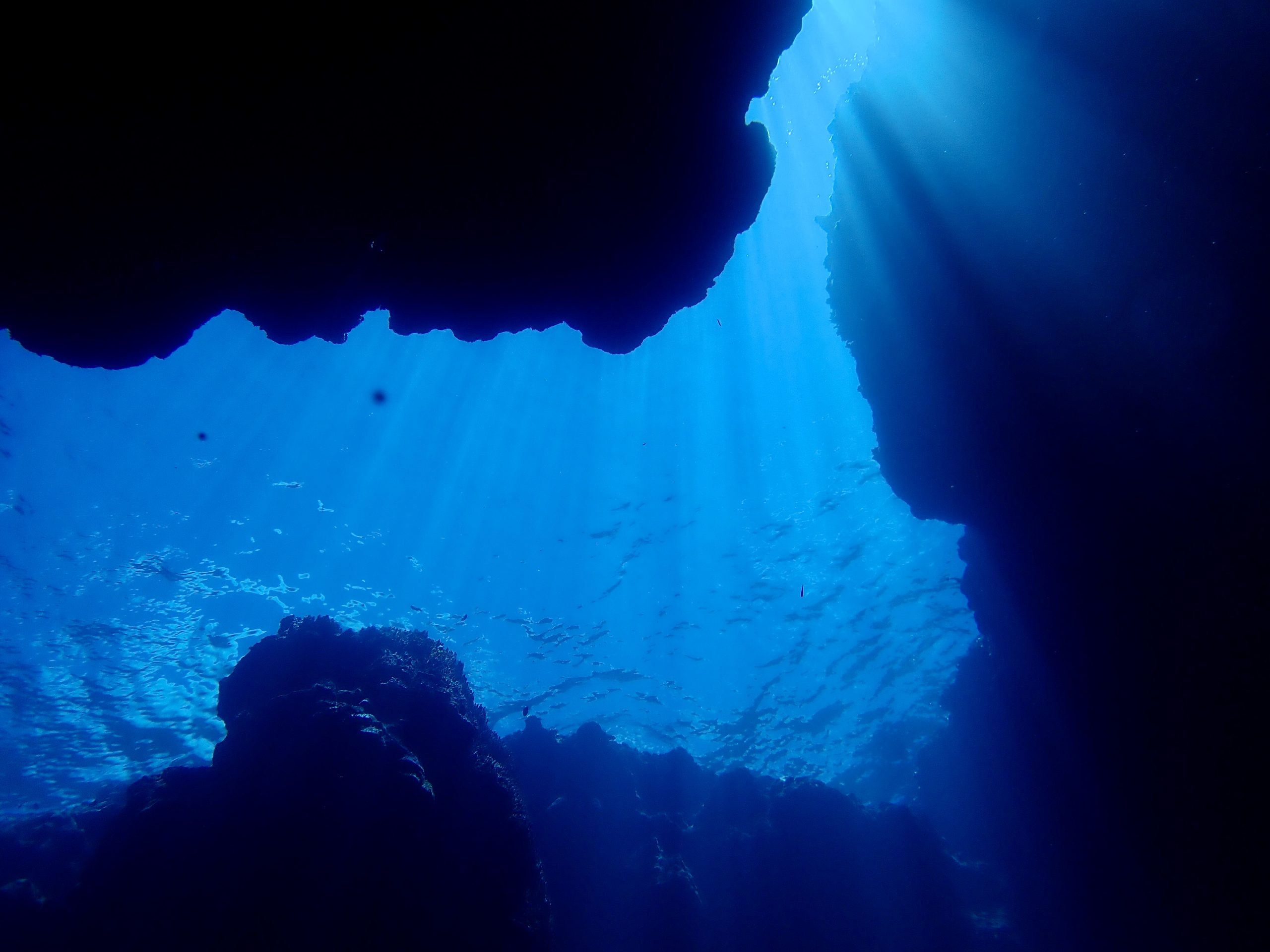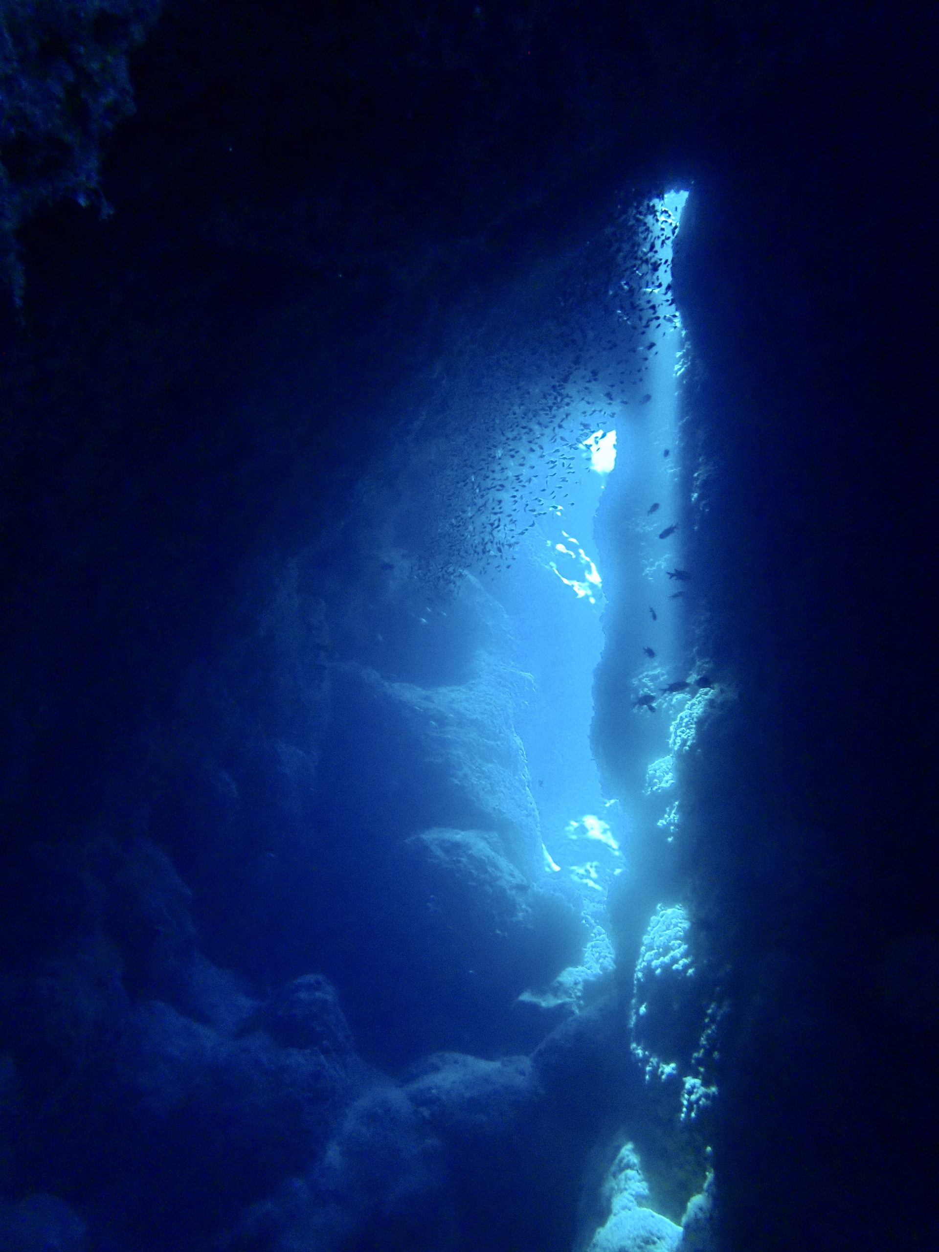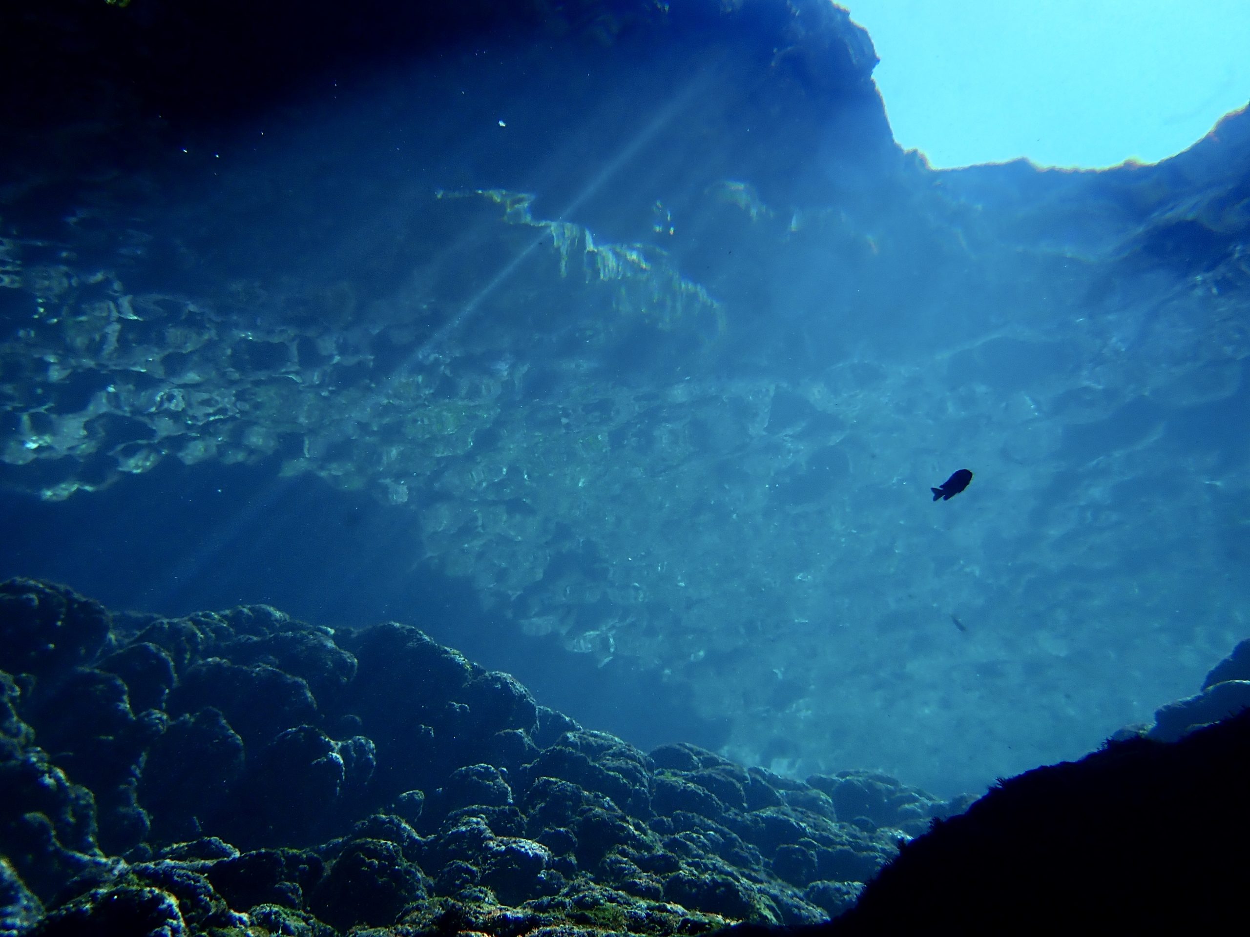 天気も良いので、今日は光の下地フルコースらしいです。迷わず一の瀬ホールへやってきました。キレツの光の中にはハタンポの小さい子が玉になっていました。メインのホールにもスカシテンジクダイが入っていて、一緒に時間いっぱい泳いできました。