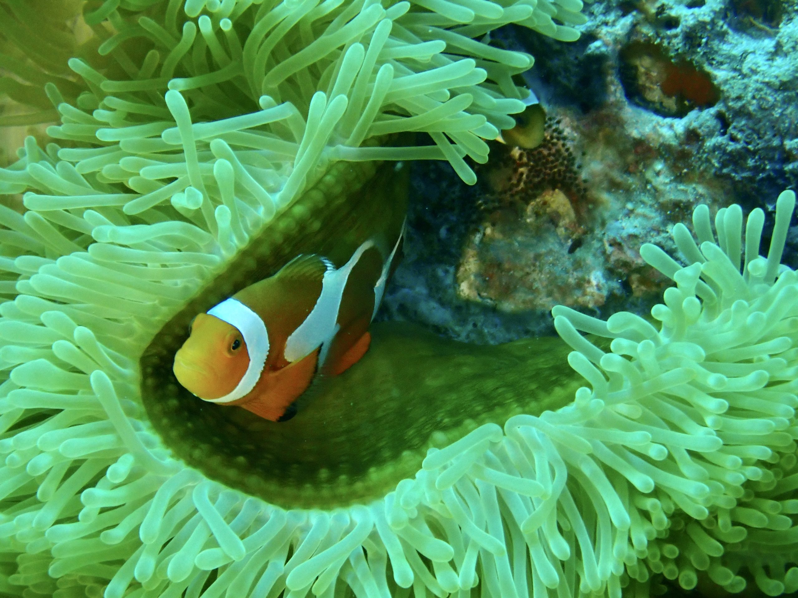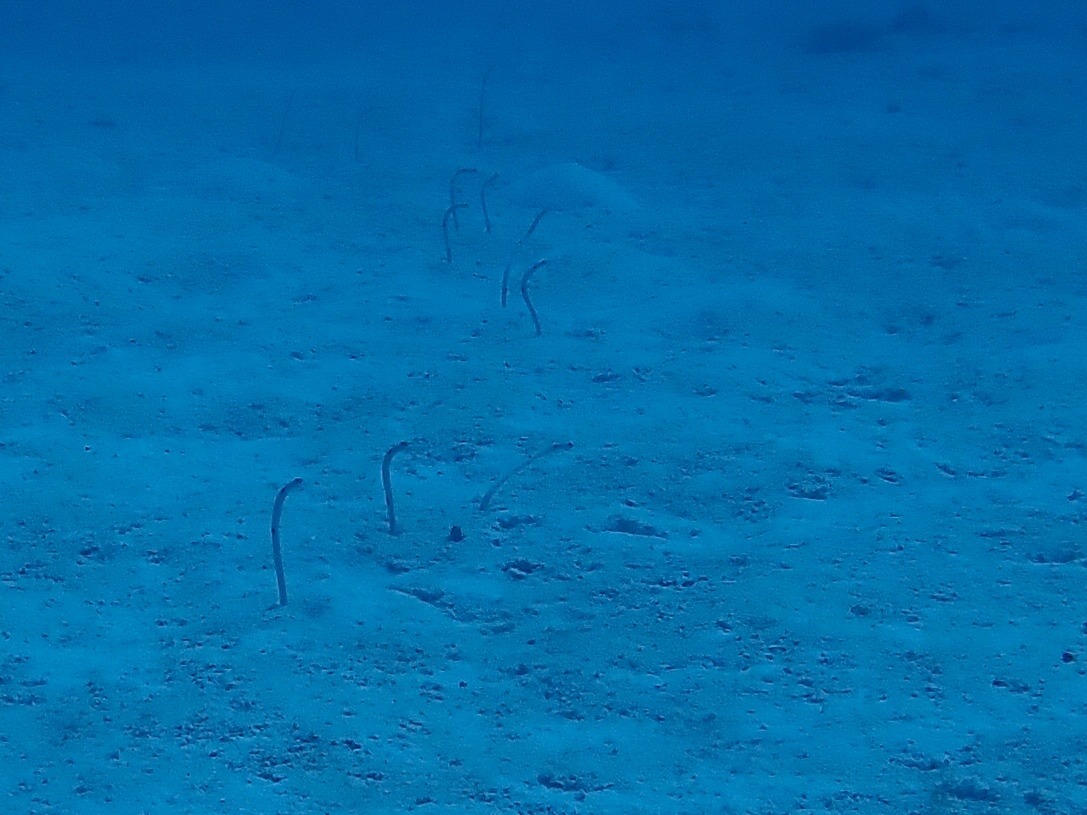 最後は静かな砂地のポイントを選んだのが正解!透明度、砂地の方がよく、太陽の光も入って海の中明るかったです。ここの人気者、ガーデンイールを至近距離で観察してきました。少しぐらい隠れてもたくさんいるので関係なし!ほんと一面に見ることができます。他にもホワイトチップシャークやカクレクマノミ、セジロクマノミなどに会ってきました。