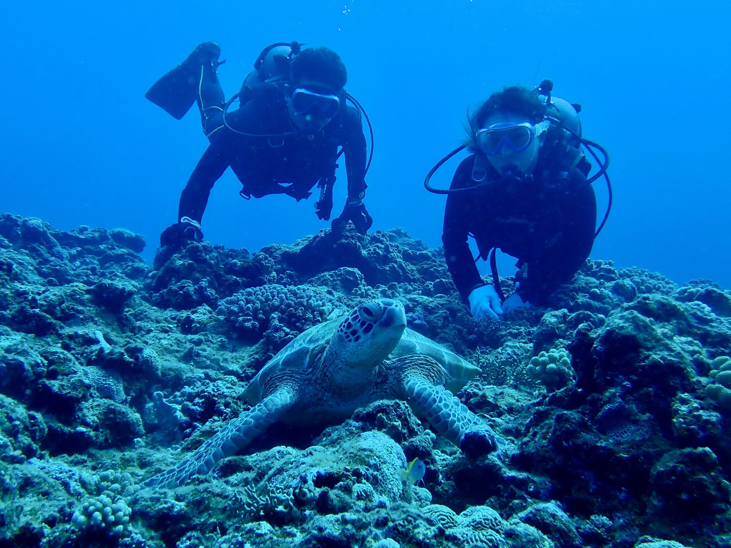 ライセンス取得して初ファンのゲストさん。最初はドキドキしていたようですが、今日は透明度も良くてあっという間に海の世界に溶け込んでいました。2つのアーチを色んな角度から眺め、ドキドキ気分でトンネル探検も楽しんできました。