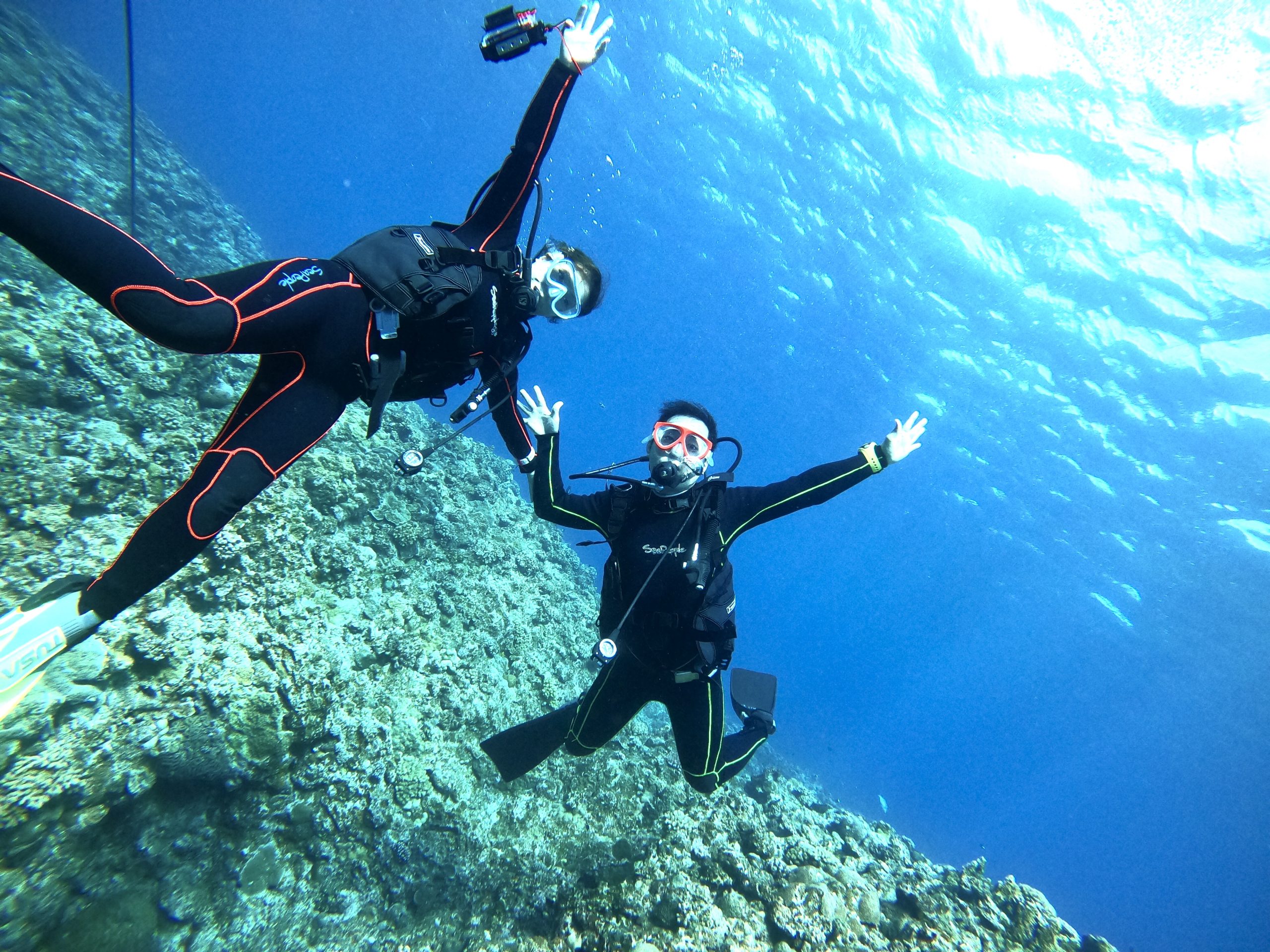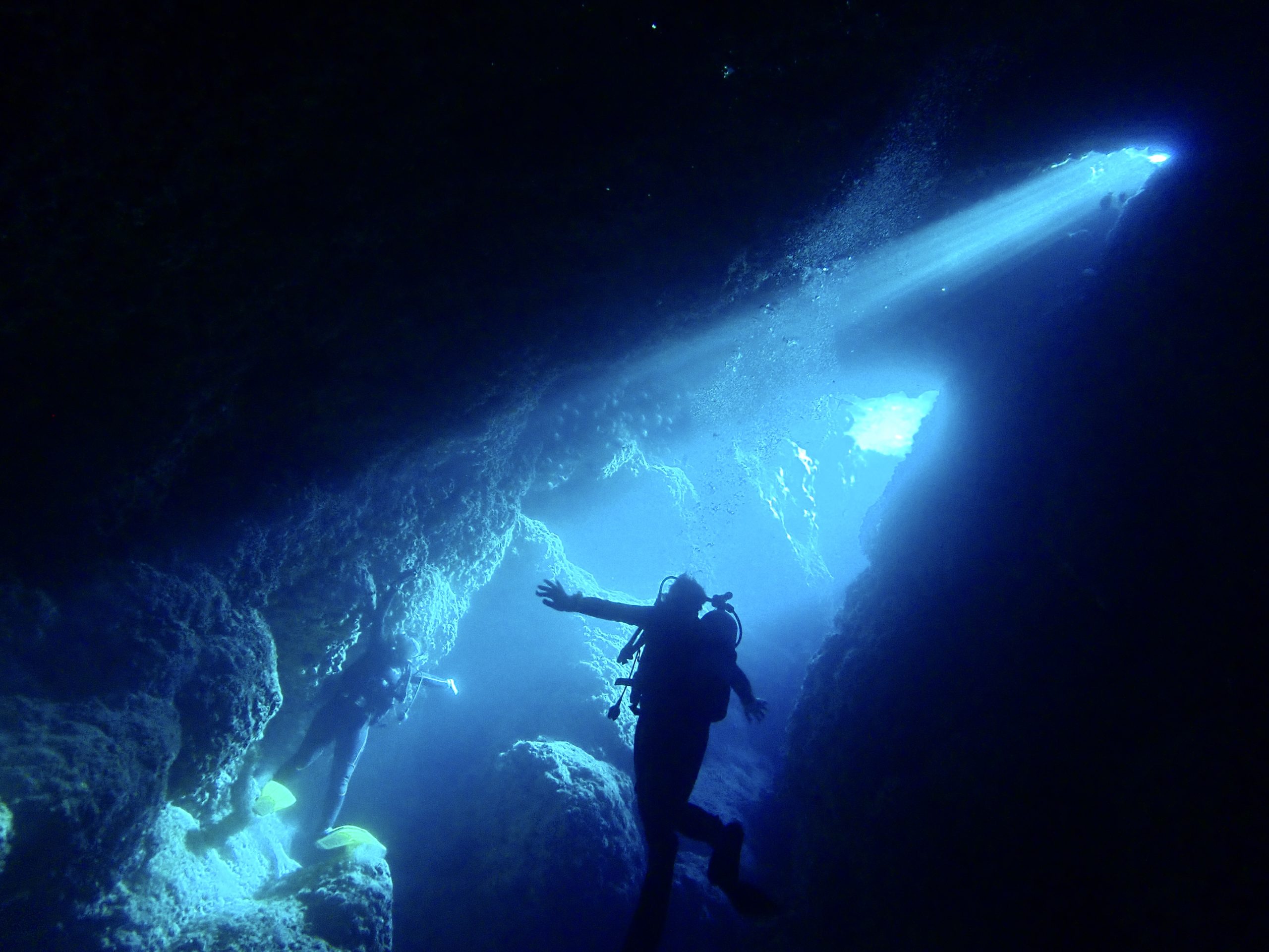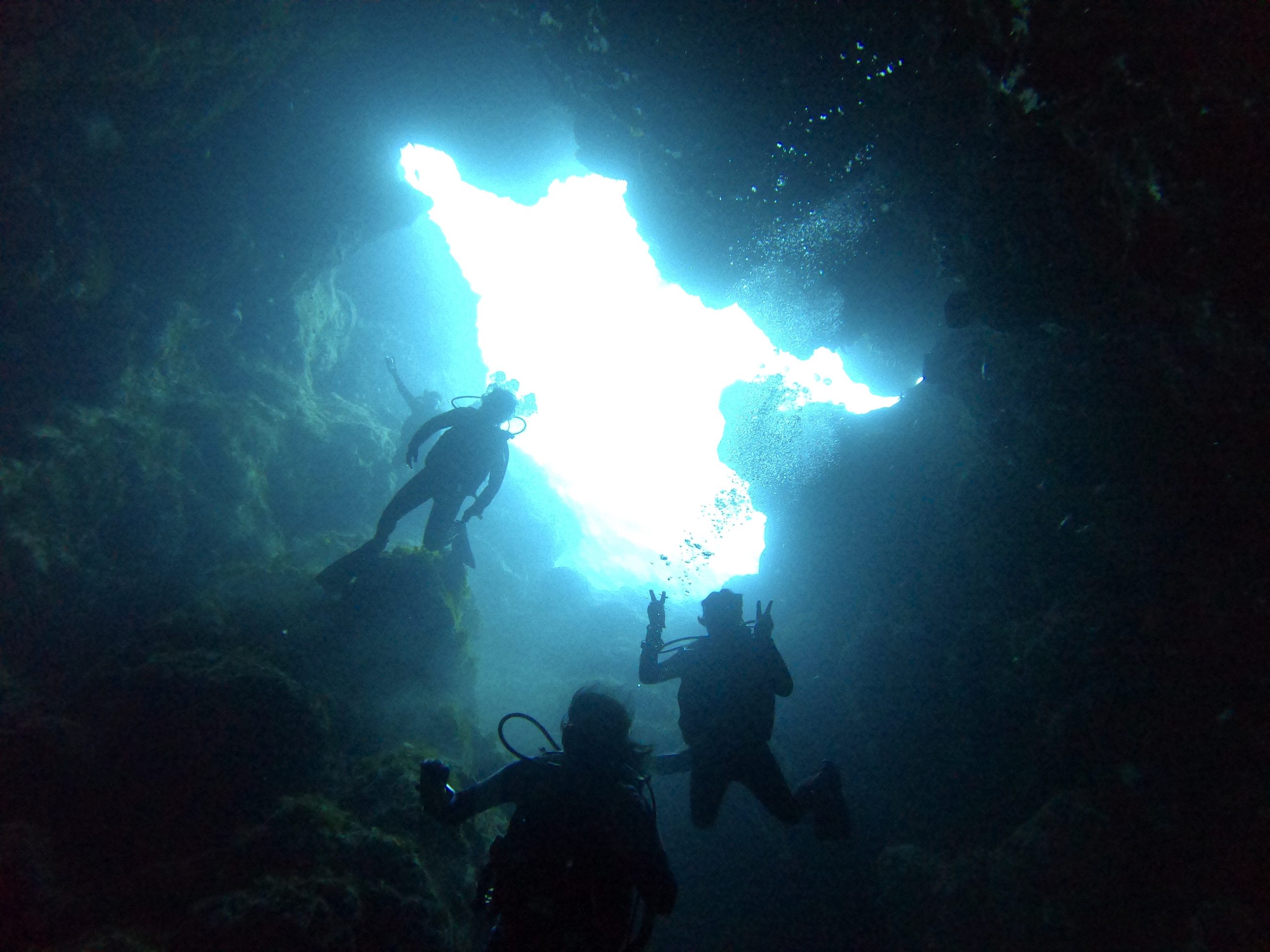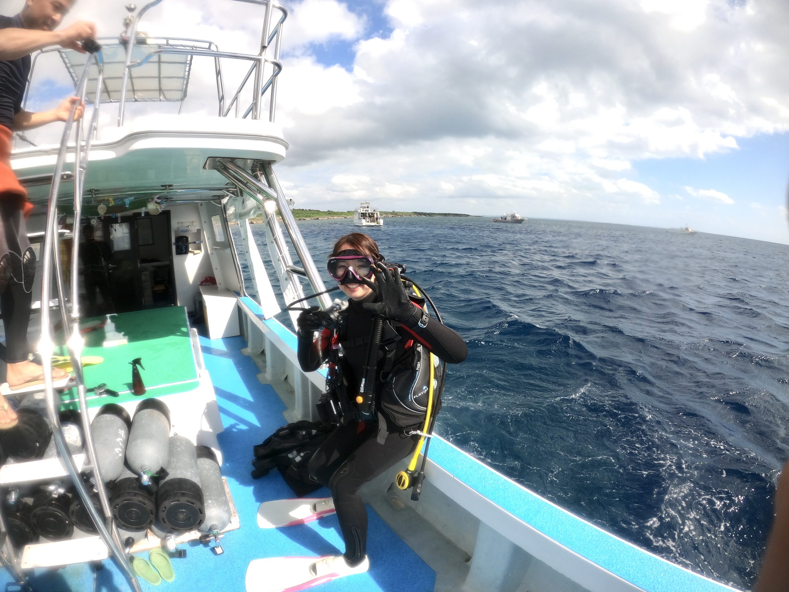 「一の瀬ホール」透明度25m 天気☀ 気温26℃ 水温25℃ 北東の風 波3m