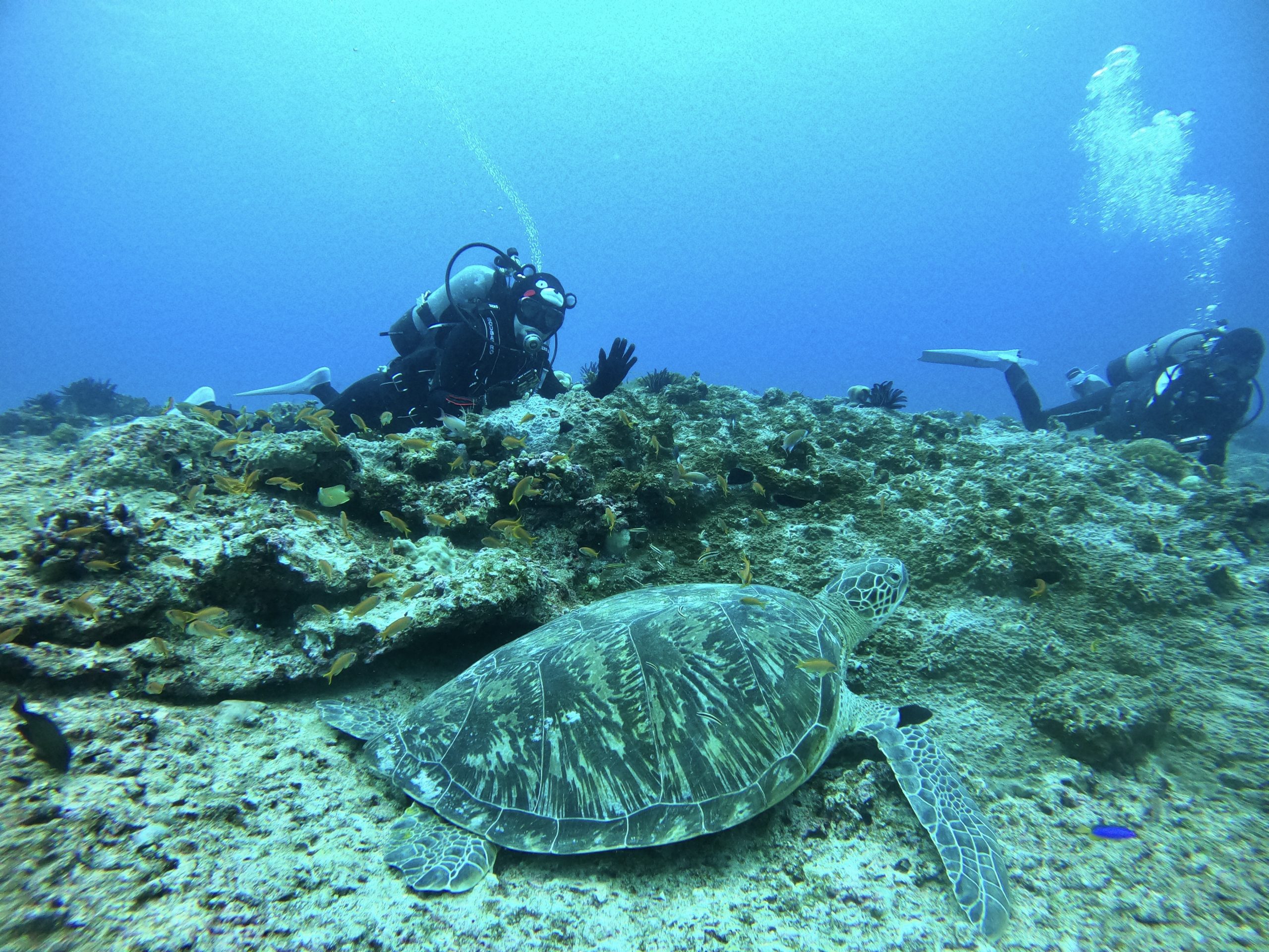 #今日紹介した生物 アオウミガメ ロウニンアジ ハタタテシノビハゼ ダーベルウミウシ ギンガメアジ アカモンガラ