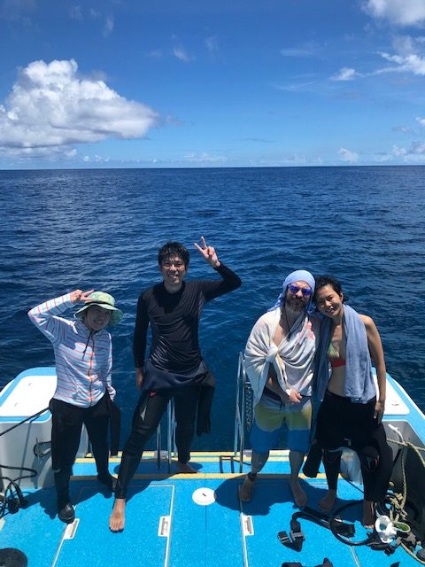 8月4日(木)あっつーーい! コメントを残す みなさまごきげんよう。 今日はゆったりダイビングです✨ 地形や生物などなど! DCIM100GOPROGOPR6876.JPG お久しぶりのゲストさま🥰 たくさん泳ぎました! 生物もルックルックしましたよ👀 パイナップルウミウシちゃんに、 レアキャラのクマドリちゃん💜 人気者すぎて、 休むヒマもなさそうです👀 くぼみにハマってお休み中のカメさん✨ 穴の中でこちらの様子をうかがってる、 ハリセンボンちゃん🐡 DCIM100GOPROGOPR6871.JPG ランチは、 マーボー豆腐丼!! アーサの中華スープ😋 おかわりほいほいでした! ✋ ハルカ