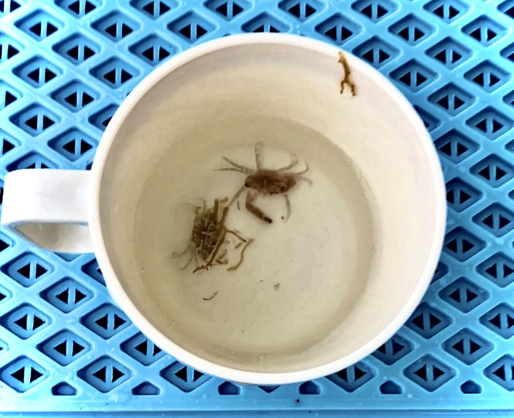 ごみ(海藻など)と一緒に選別される小生物たち。