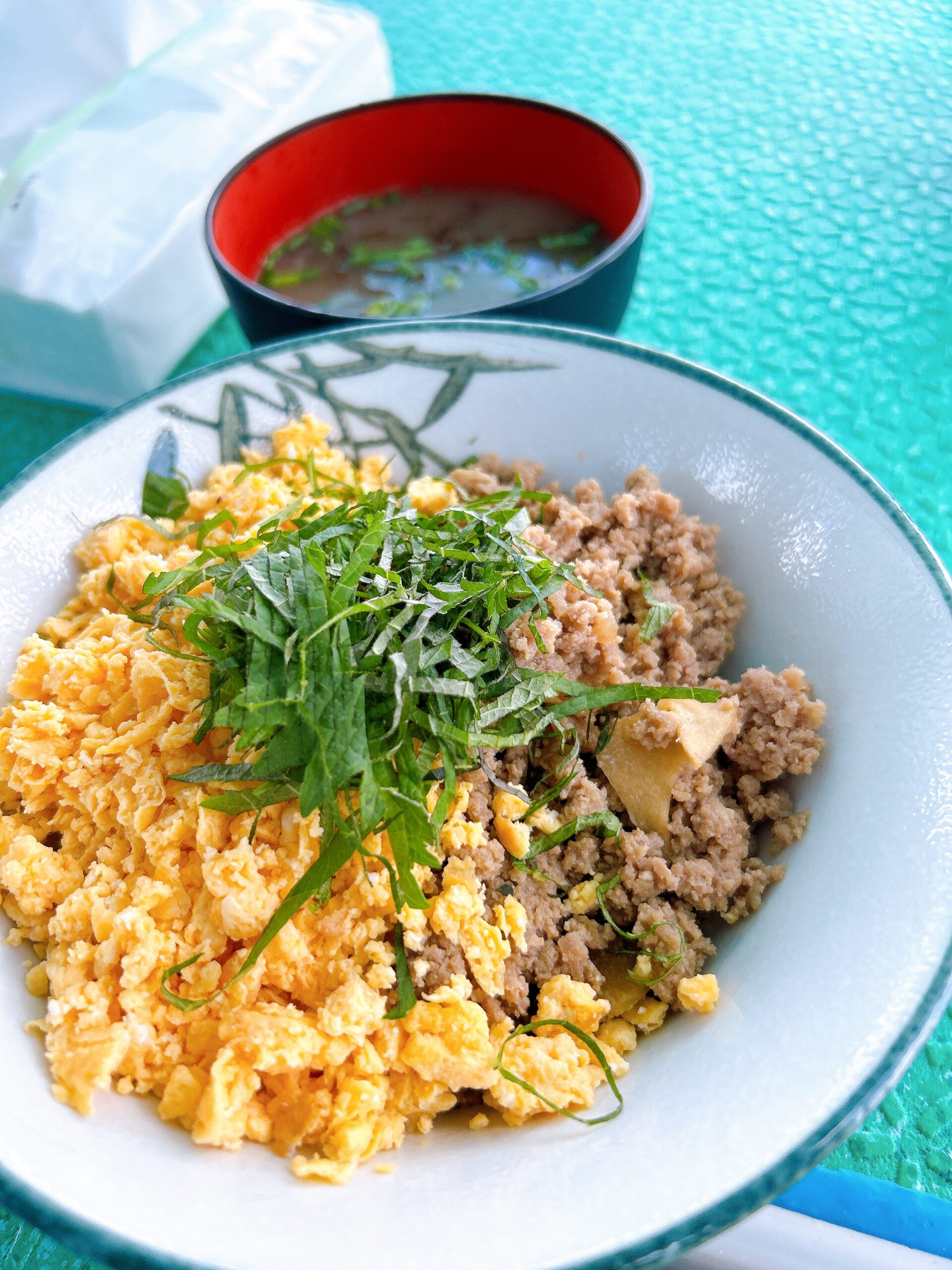 そぼろ丼&モズクのみそ汁