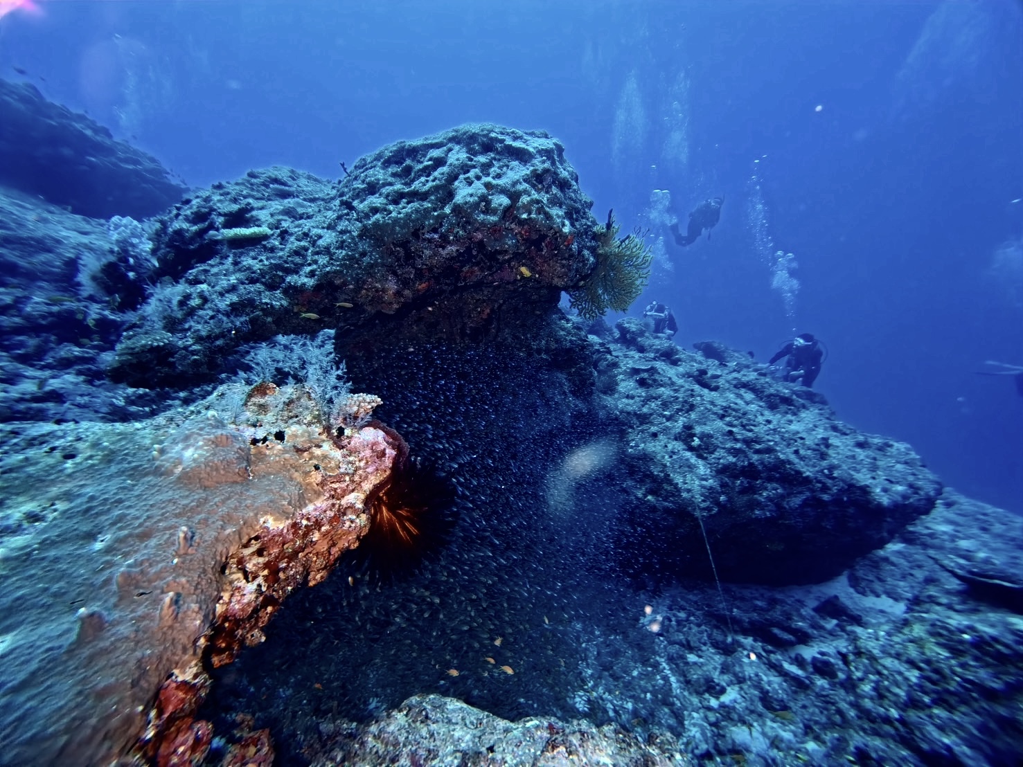 水深25Mほどの根にはスカシテンジクダイがいっぱい〜