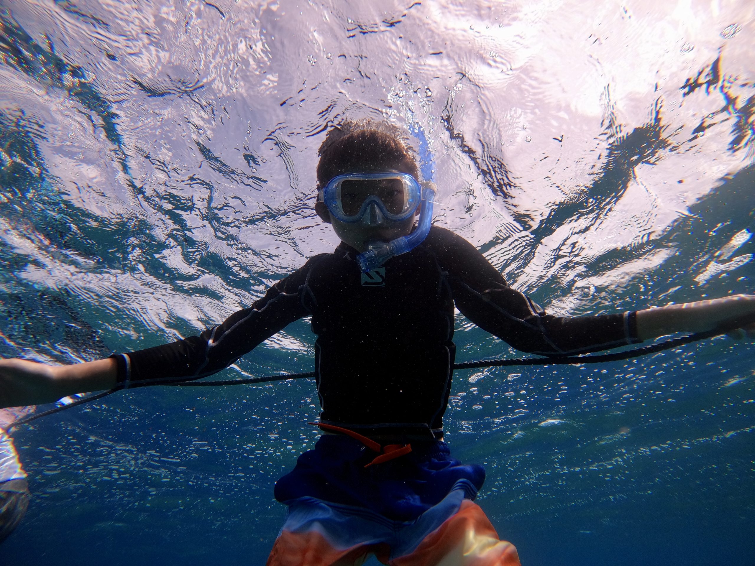 キッズは初の体験ダイビング!毎年スノーケル乗船していますが、待ちに待った今日!遂にタンク背負って潜ってきました。とっても笑顔で泳いでいました~♪