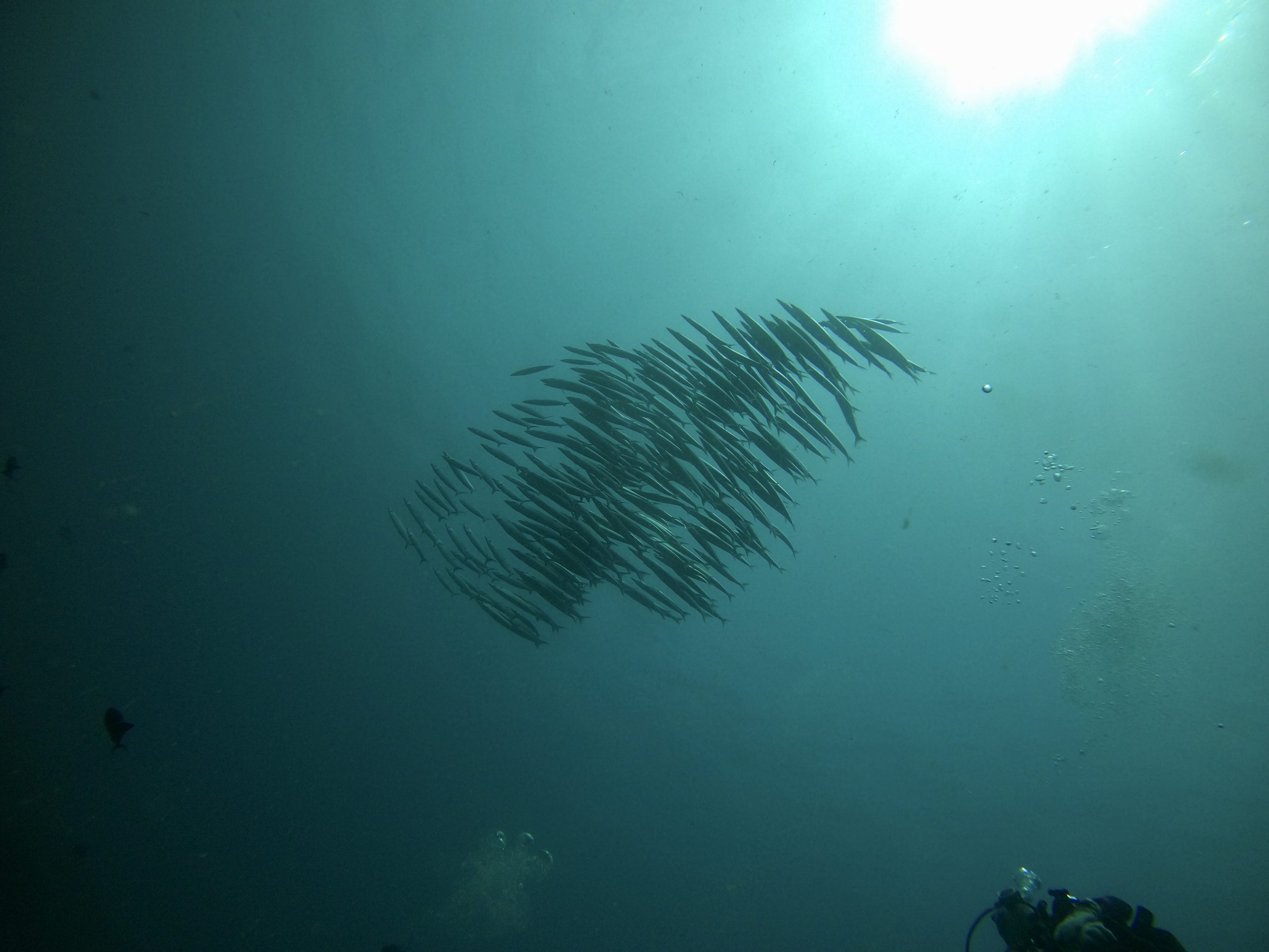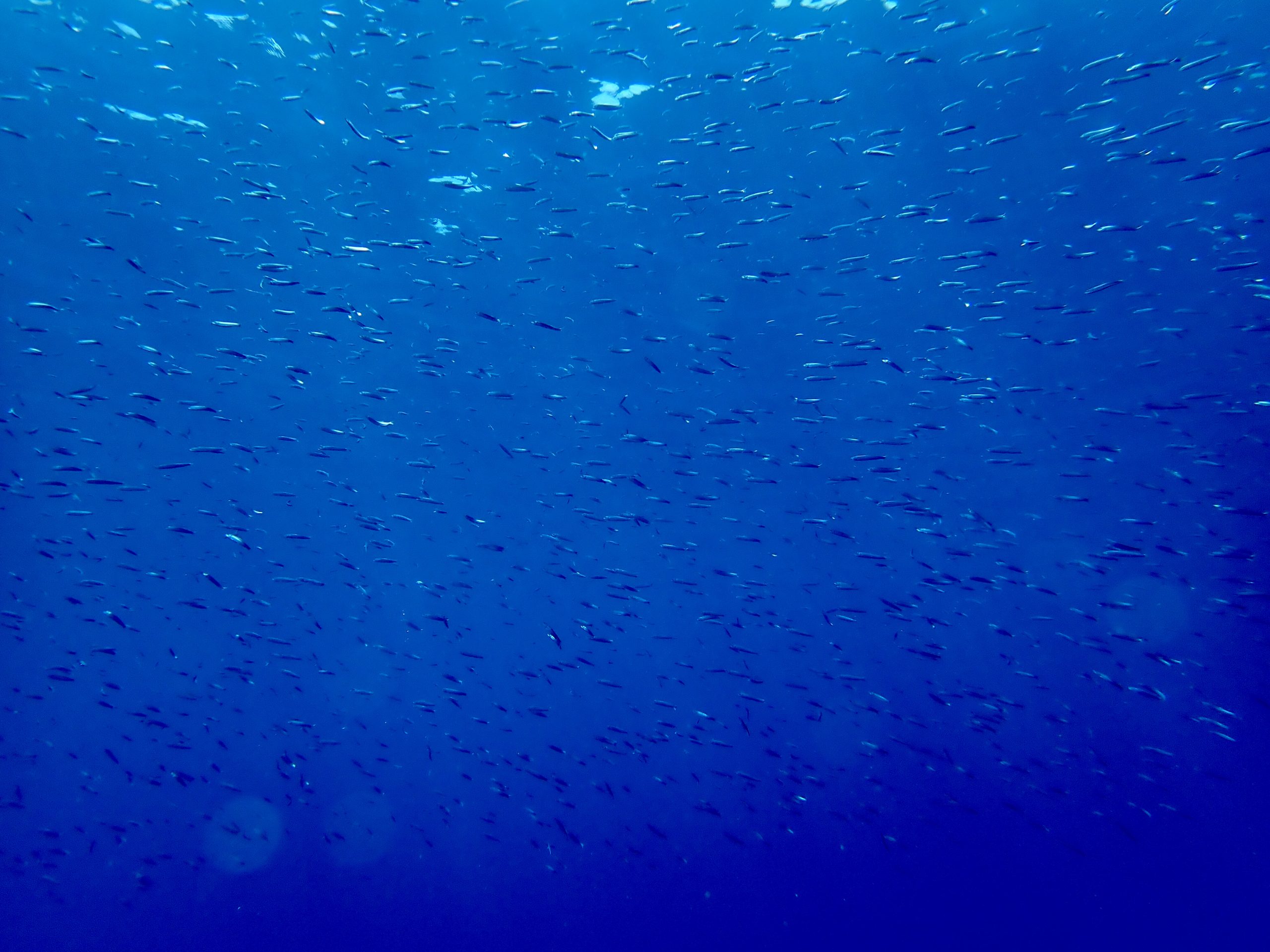 透明度、こちらはまずまず。船の下にはたくさんのカタクチイワシが群れていて、キラキラしています。時折ニジョウサバが追いかけていました。オキナワスズメダイもたくさん!ハナダイの根もサカナ達で賑やか。たくさんサカナ達に出会えてゲストさんも楽しんでもらえたようです。