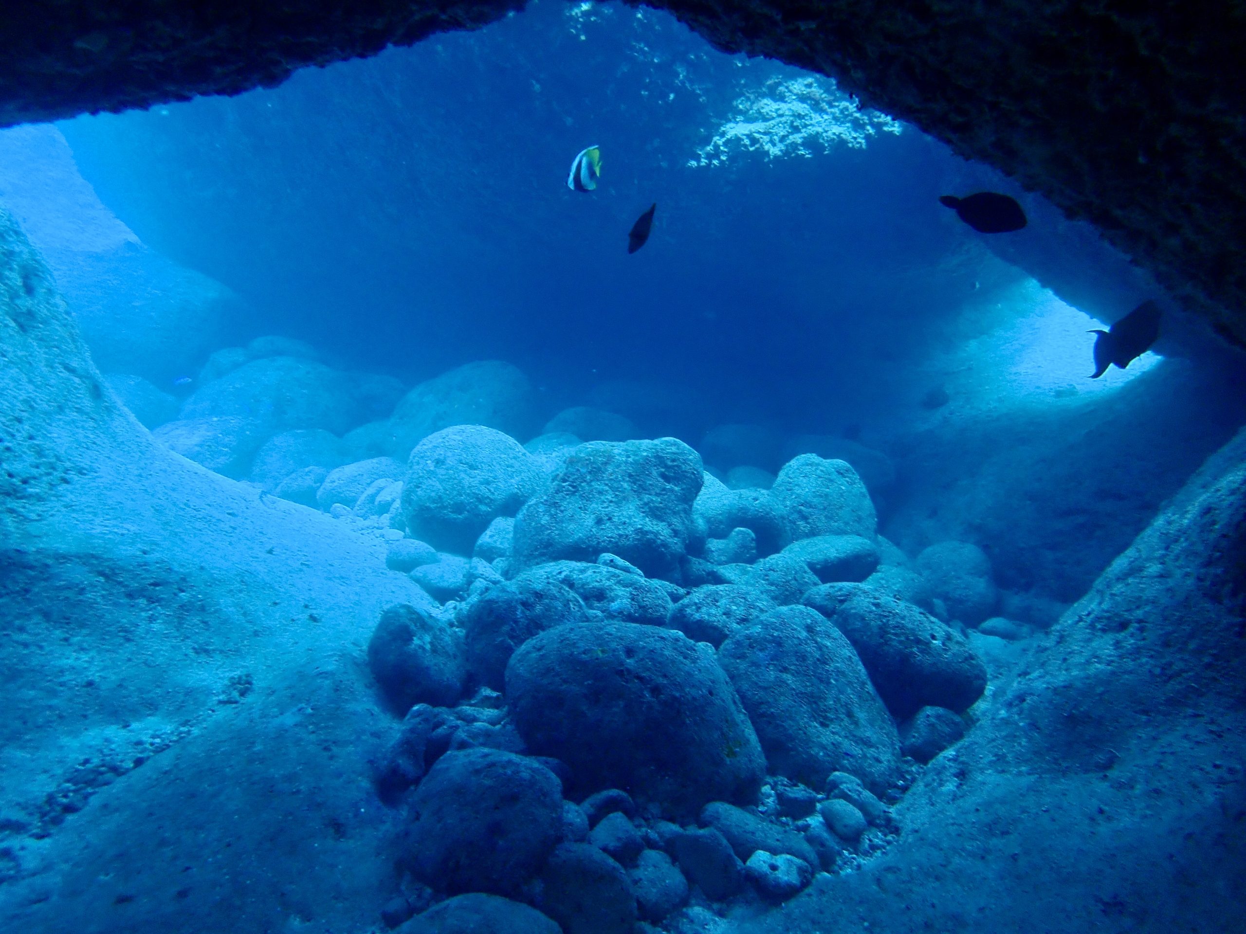 船を停泊した時は青かったのに、エントリーすると潮が入ってきてか緑色の海の中。着底したら船がとっても遠く見えました!笑。Wアーチに向かって行くとだんだんと青い世界に!色の層がはっきりと見えていました。アーチを下から鑑賞したり、台風にも耐えてくれてハダカハオコゼを見たり。ゴロタには特大のタツウミヤッコが見られました。