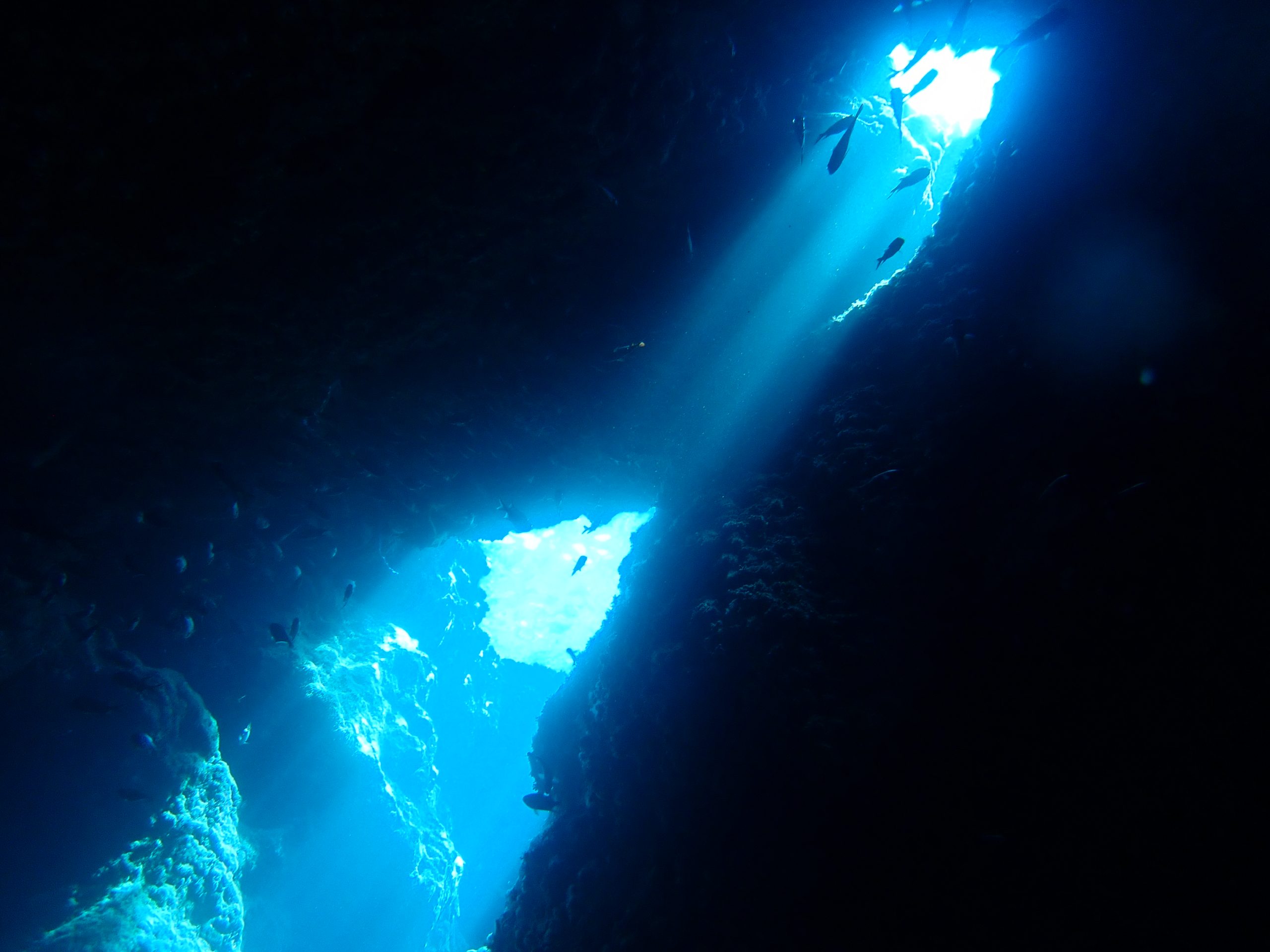 めちやくちゃ透明度高いです。ゲストさんは初宮古ダイブ。パイカジのHPをチェックしてくれてるようで、パイカジお勧めの一の瀬ホールへ行きたいとのこと。お昼前だったので、強い光がたっぷり見られました。