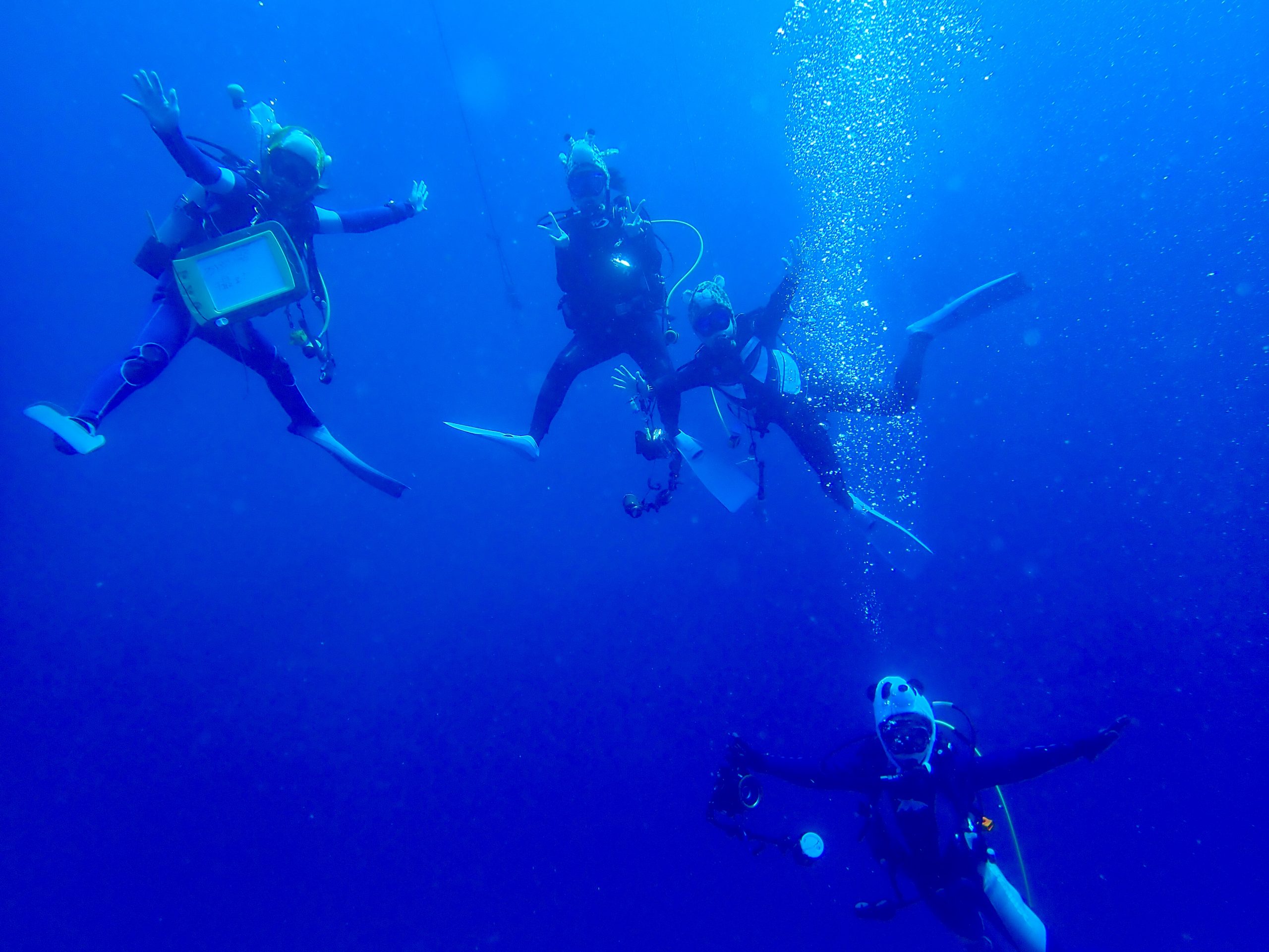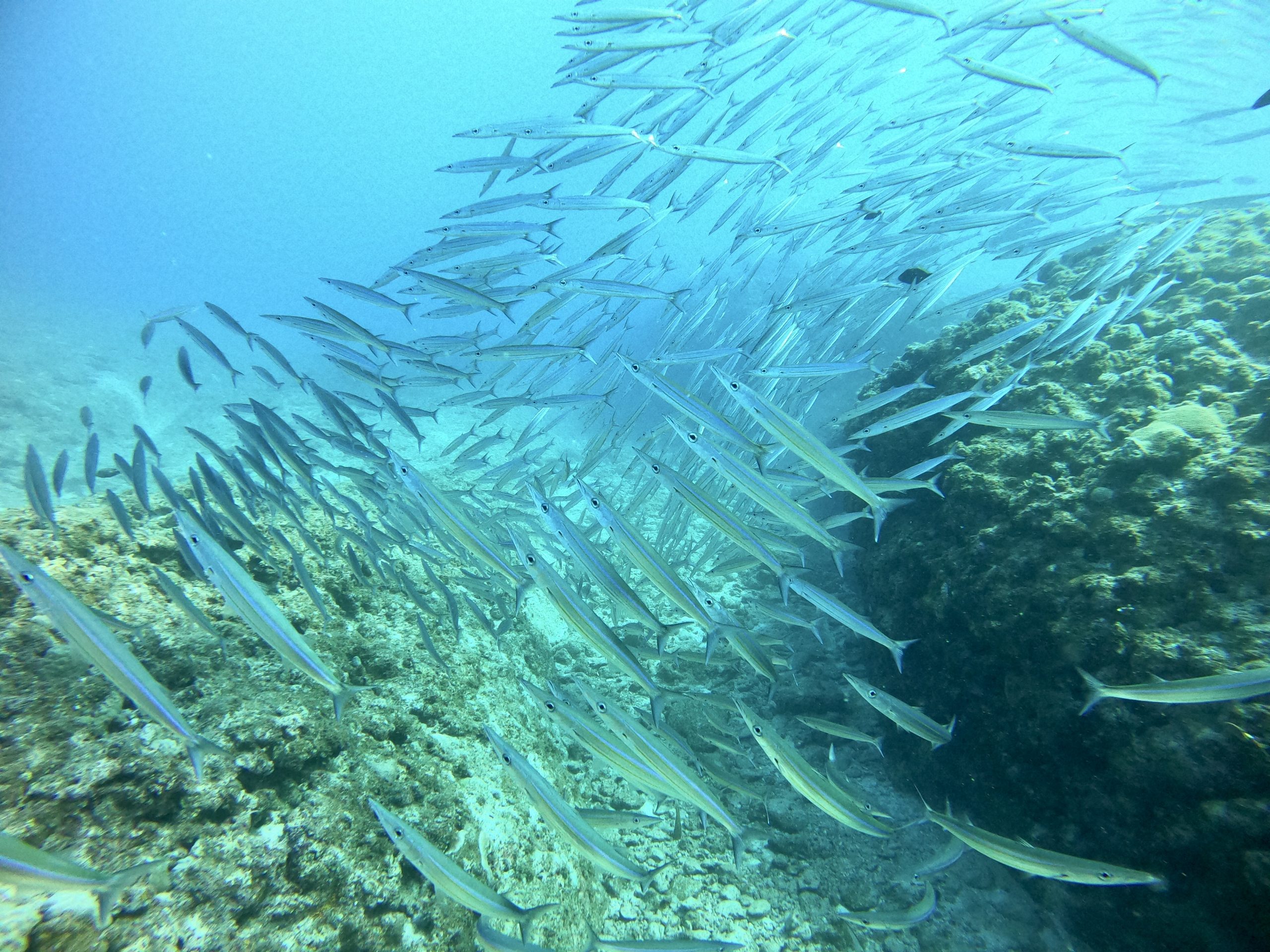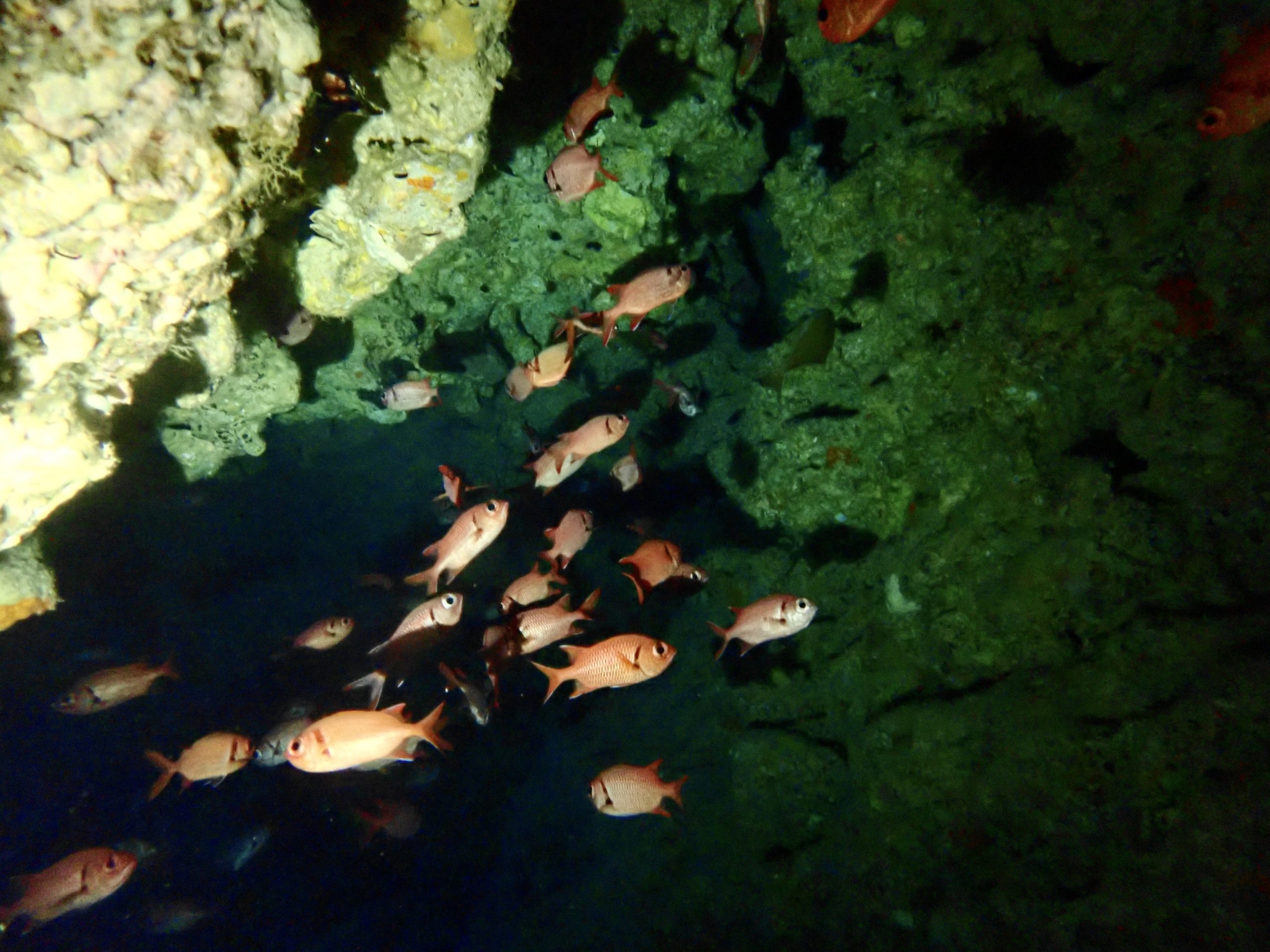 最後はミニ通り池へ!ドロップ沿いの浮遊感を楽しみながら、サカナ達の間を泳いできました。ハナゴイ、アマミスズメダイがたくさん群れています。ミニ通り池も貸し切りで水面に浮上して、トンネルの中も独占してきました。帰りにはホワイトロードにもお邪魔して、細いトンネルくぐったり、ちょっとショートケーブを覗いたりして遊んできました。