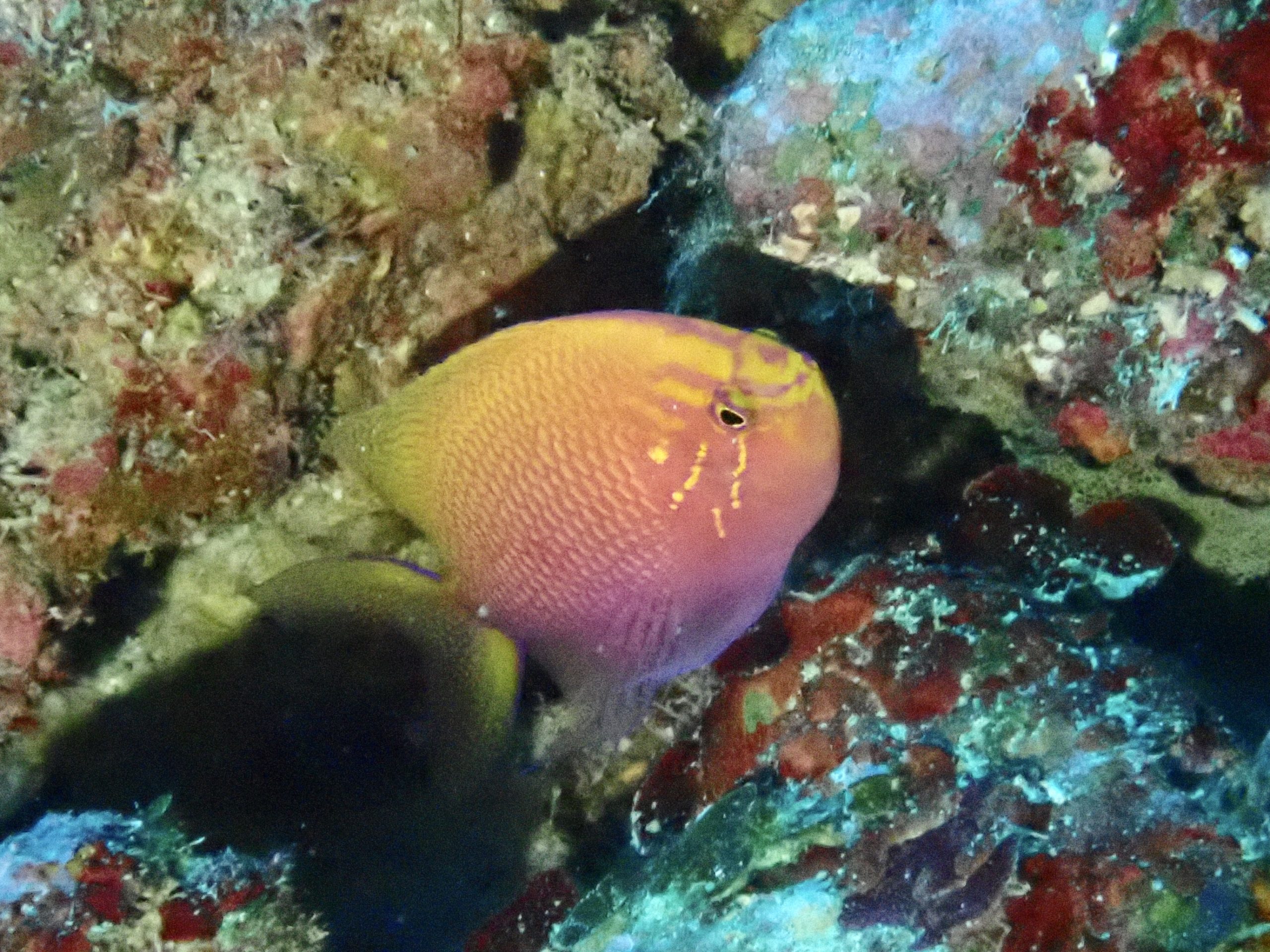 通り池へ行きたかったのですが、外洋は荒れててポイント変更。女王の部屋へやってきました。静か~♪ところが海の中は潮の流れが速く頑張って泳ぐ結果に!女王の部屋ではきれいな色のハナゴンべや水底にはニチリンダテハゼ。ホシゾラワラエビなどを見てきました。