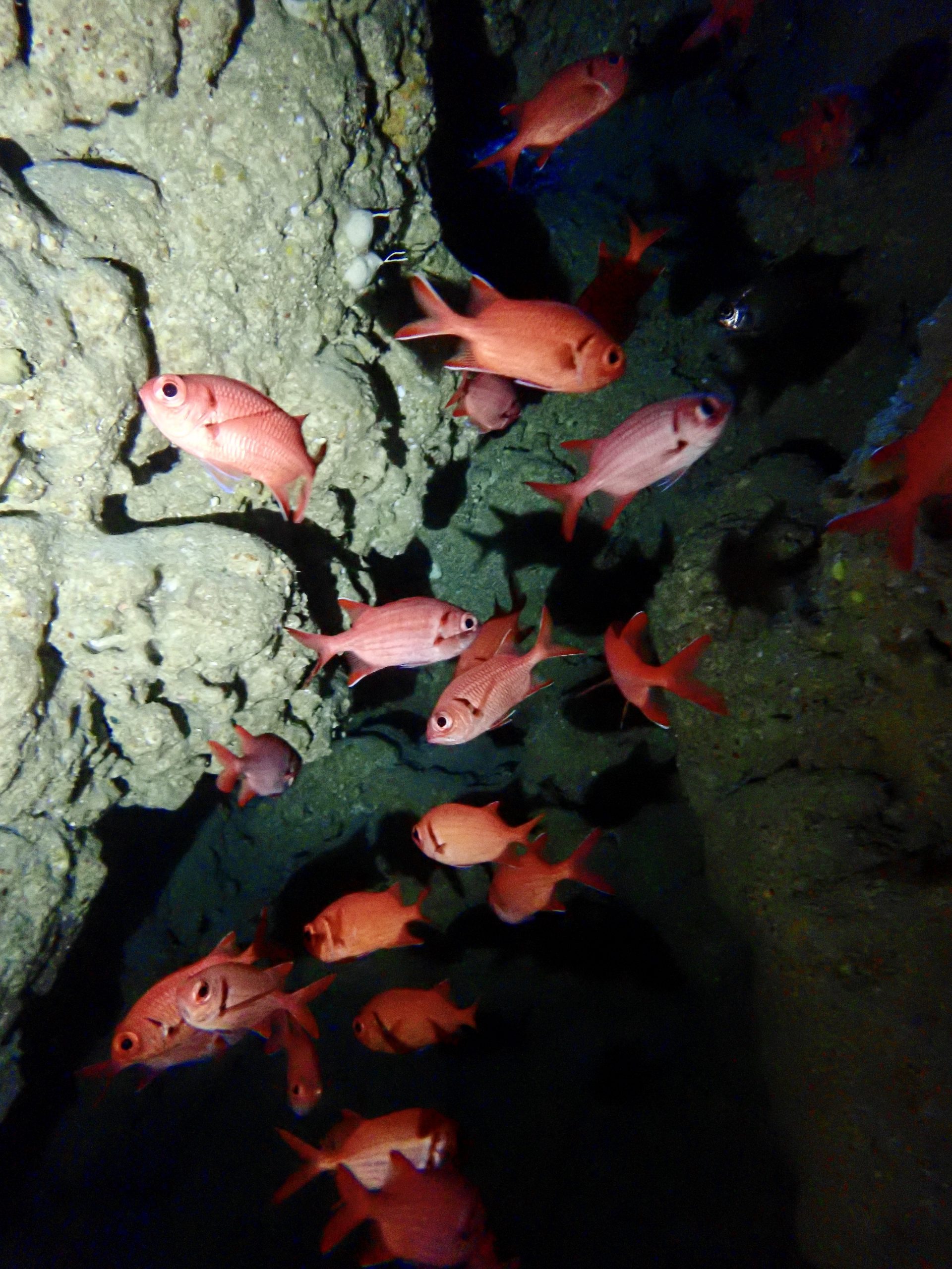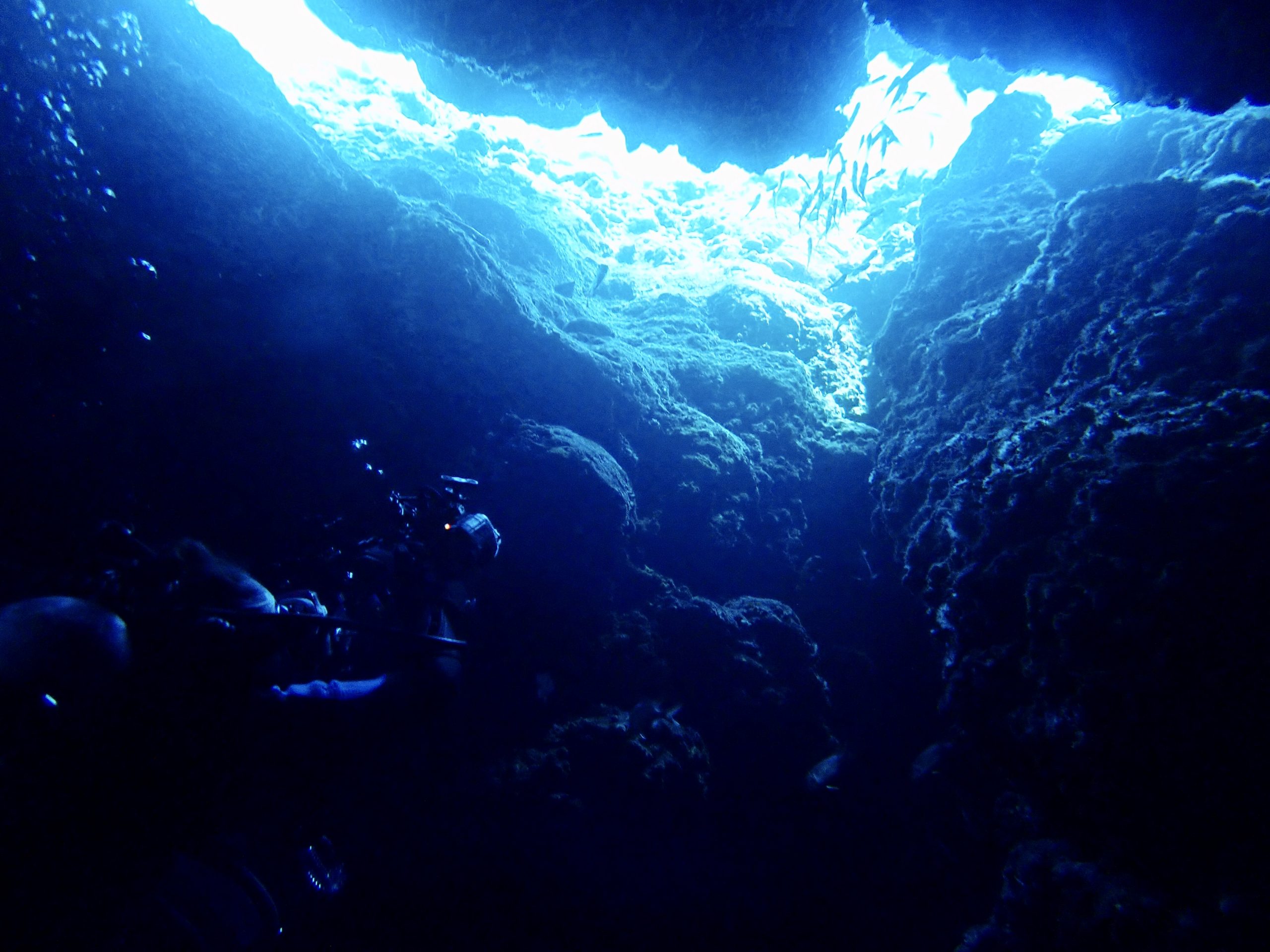 到着のゲストを迎えて、2本目へ!とっても久しぶりのダイビングとのことで、なるほどザケーブでのんびりと。お天気も良くて、キレツから差し込む光がキレイでした。ケーブのとなりのキレツも光がたくさん差し込みます。ゴロタではお久しぶりにキンチャクガニにも出会いました。
