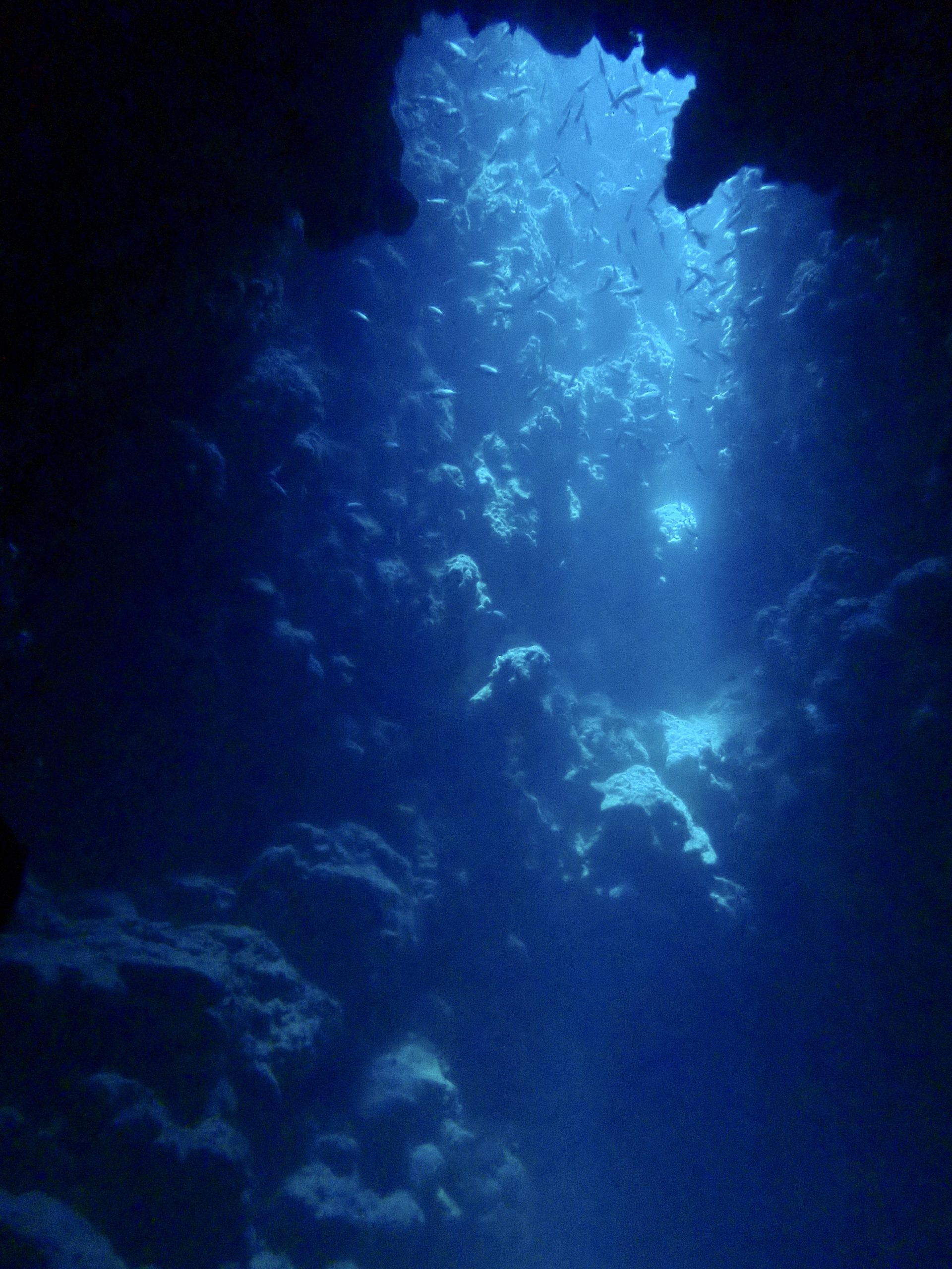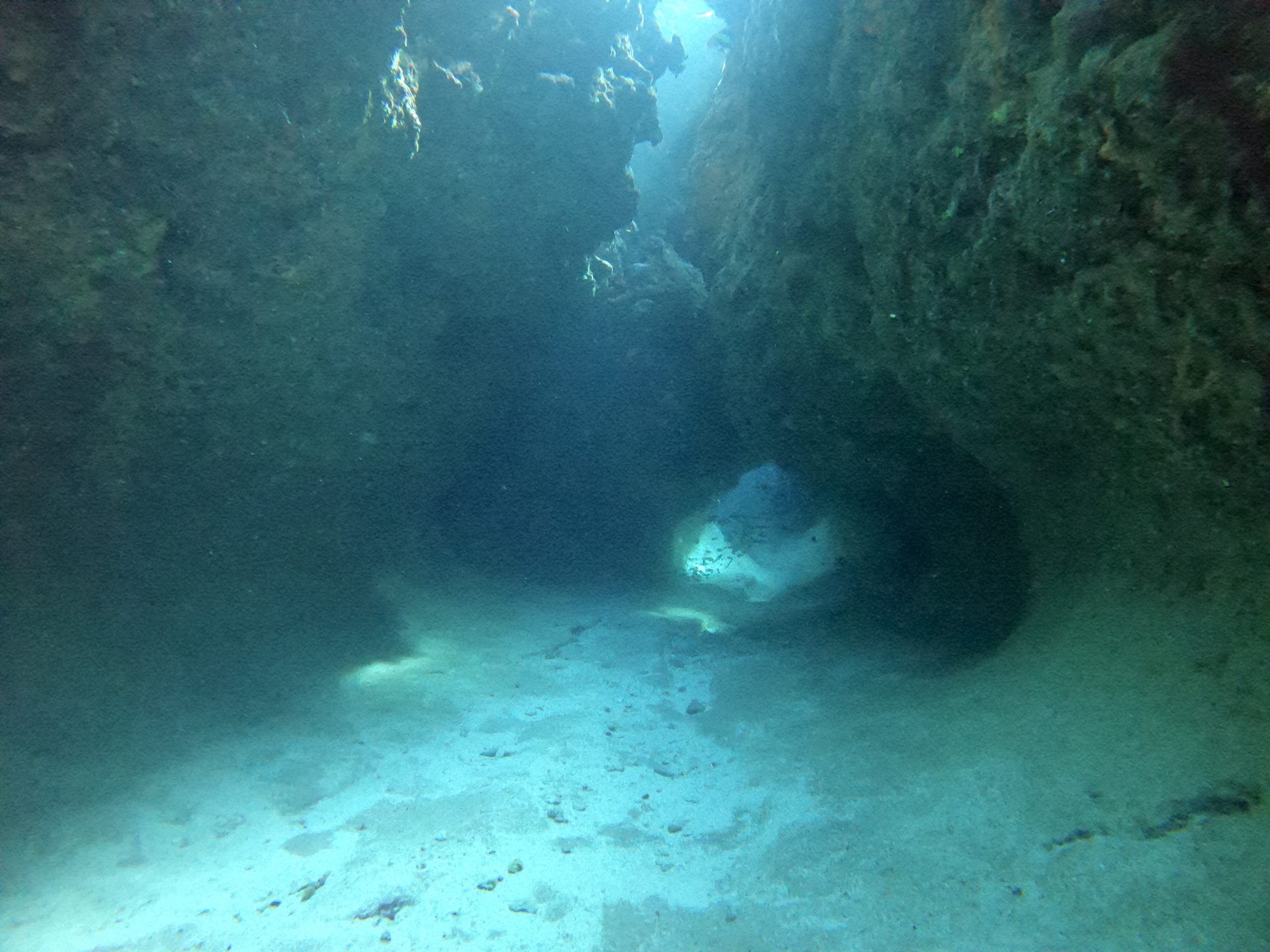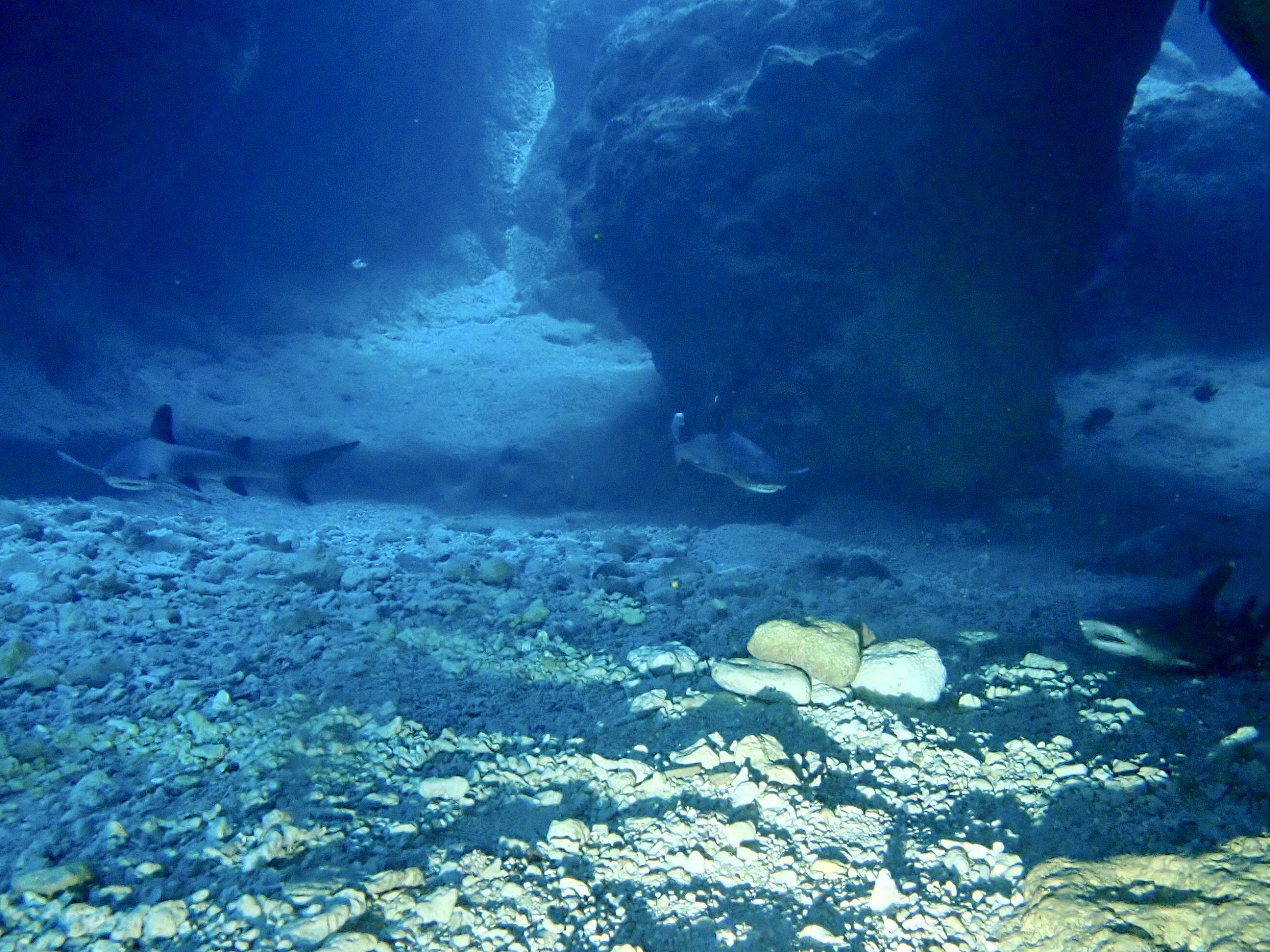チャネルの中にも光が入ってとってもキレイでした。3匹のホワイトチップシャークも健在です。丸いアーチをくぐってみたり、くるくる変わる景観を楽しんできました。ヤスさんチームはぐるっと泳いでホソカマスにも出会ってきました。