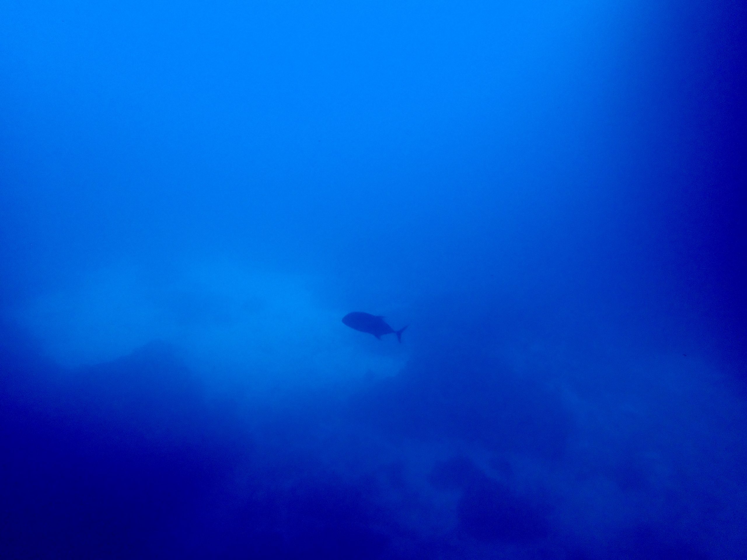 うねりも少し入っているので、ポイントを選びつつ、久しぶりに通り池へ!ゲストさんも久しぶりの通り池だったそうで、ワクワク具合もアップします。今日は池の中の透明度も良くて、池の中まで太陽の光が届いていました。帰りには大きめサイズのロウニンアジも登場してくれました。