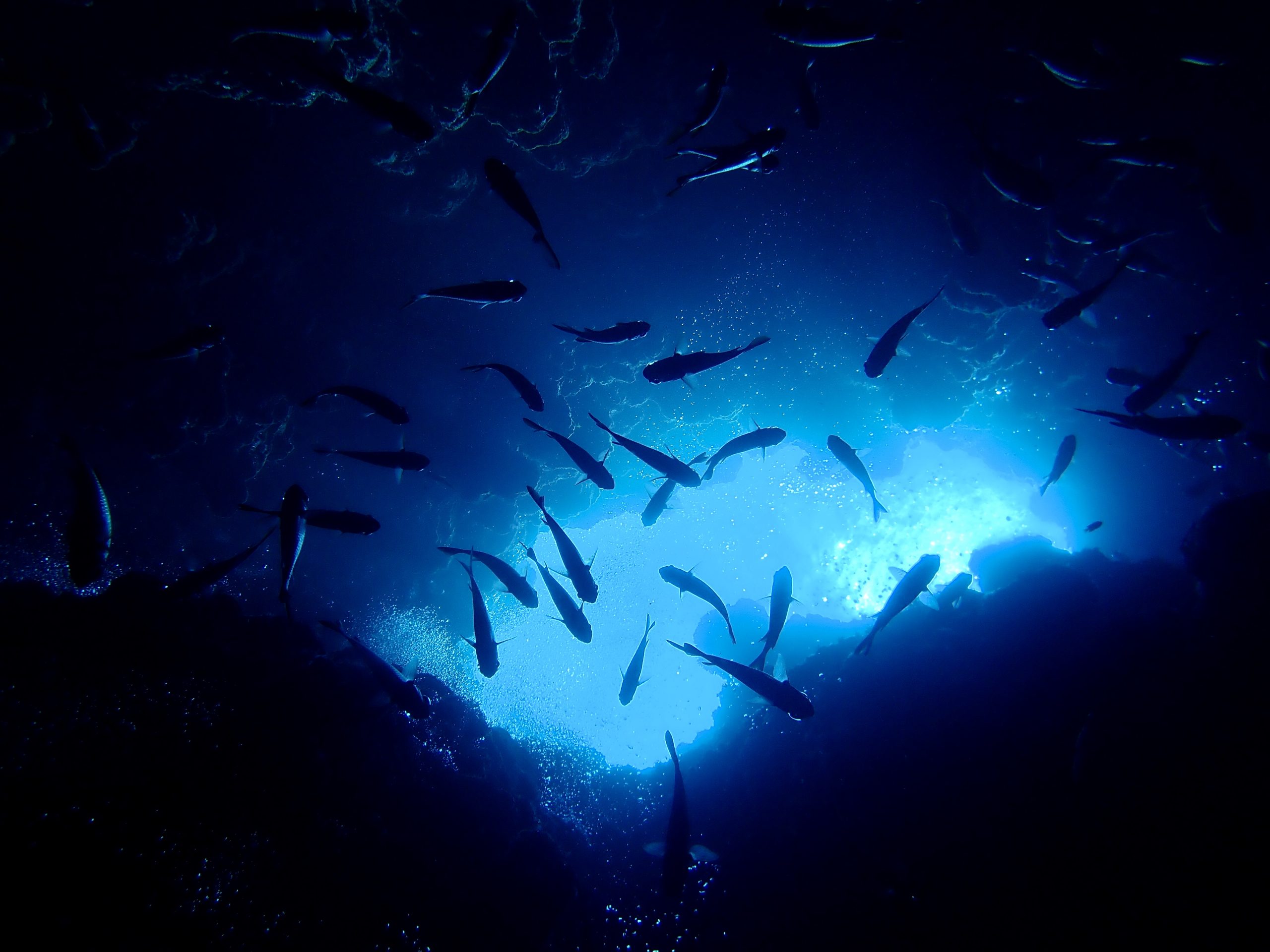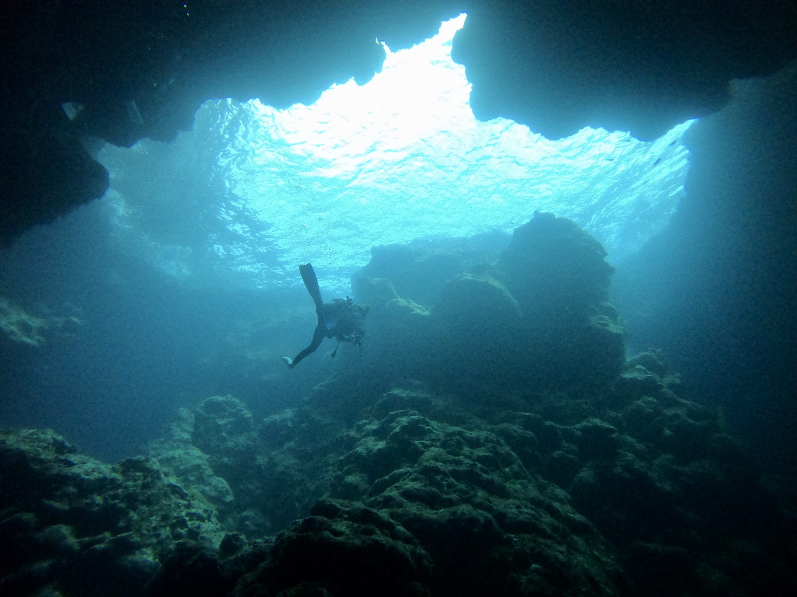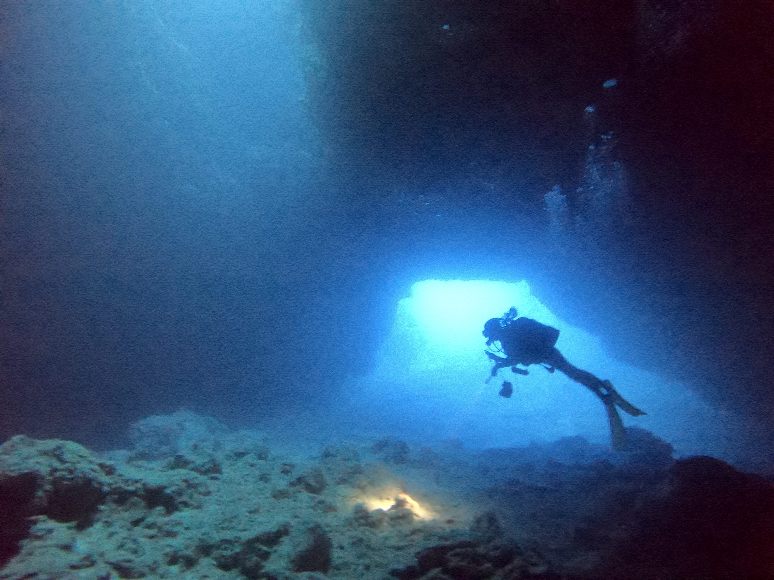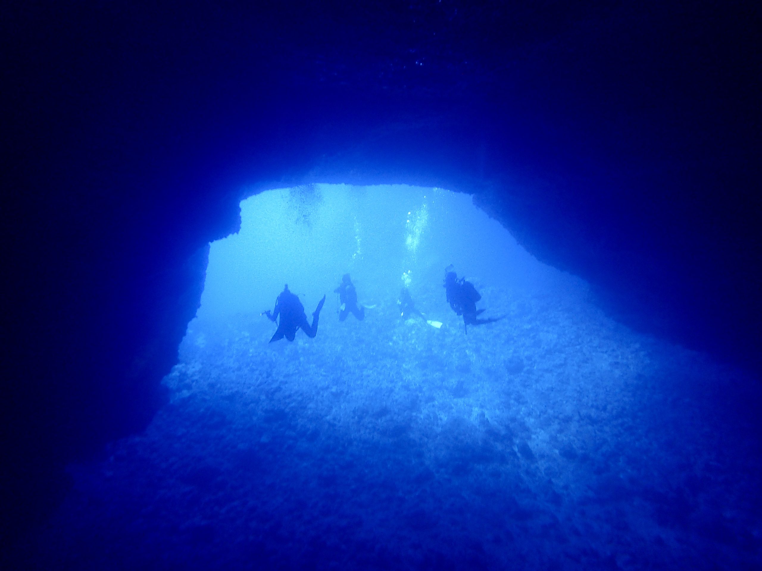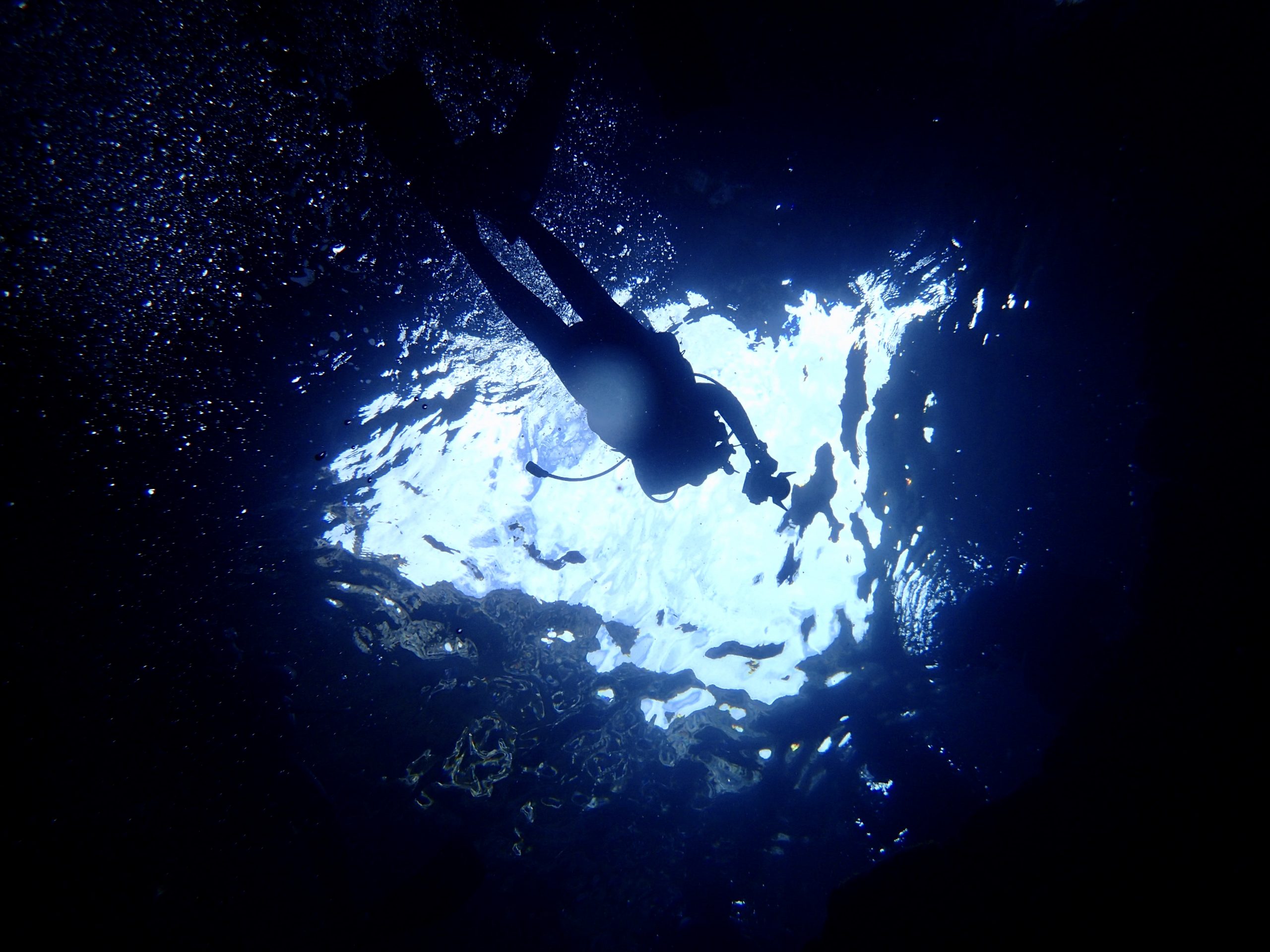 こんなに晴れたので、一の瀬ホールに向かうことに!お昼前なので強い光がじゃんじゃん注がれていました。貸し切りなので、光の合間でたくさん泳いできました。メインのホールもブルーが濃い!台形出口をバックに撮影も楽しんできました。