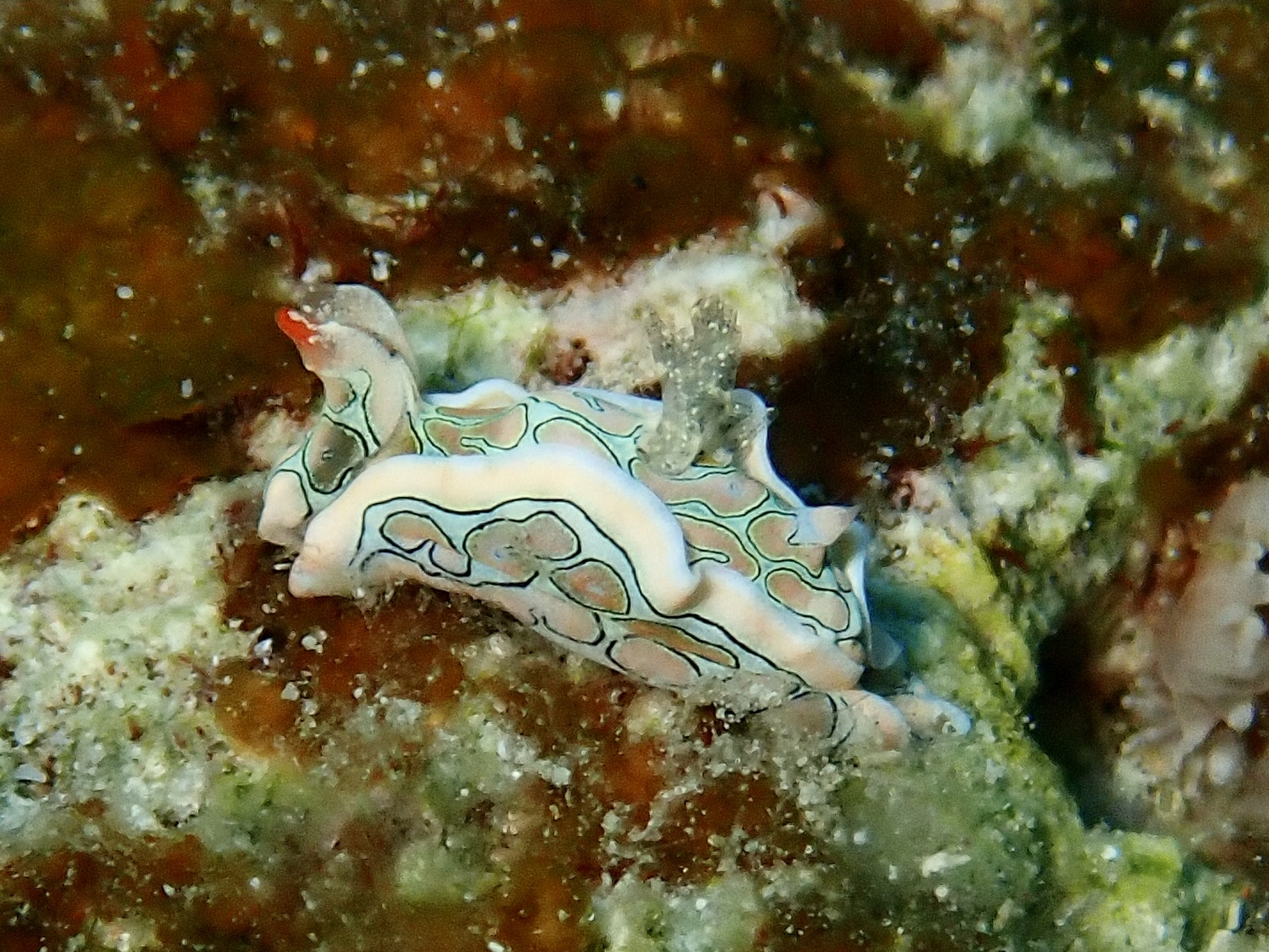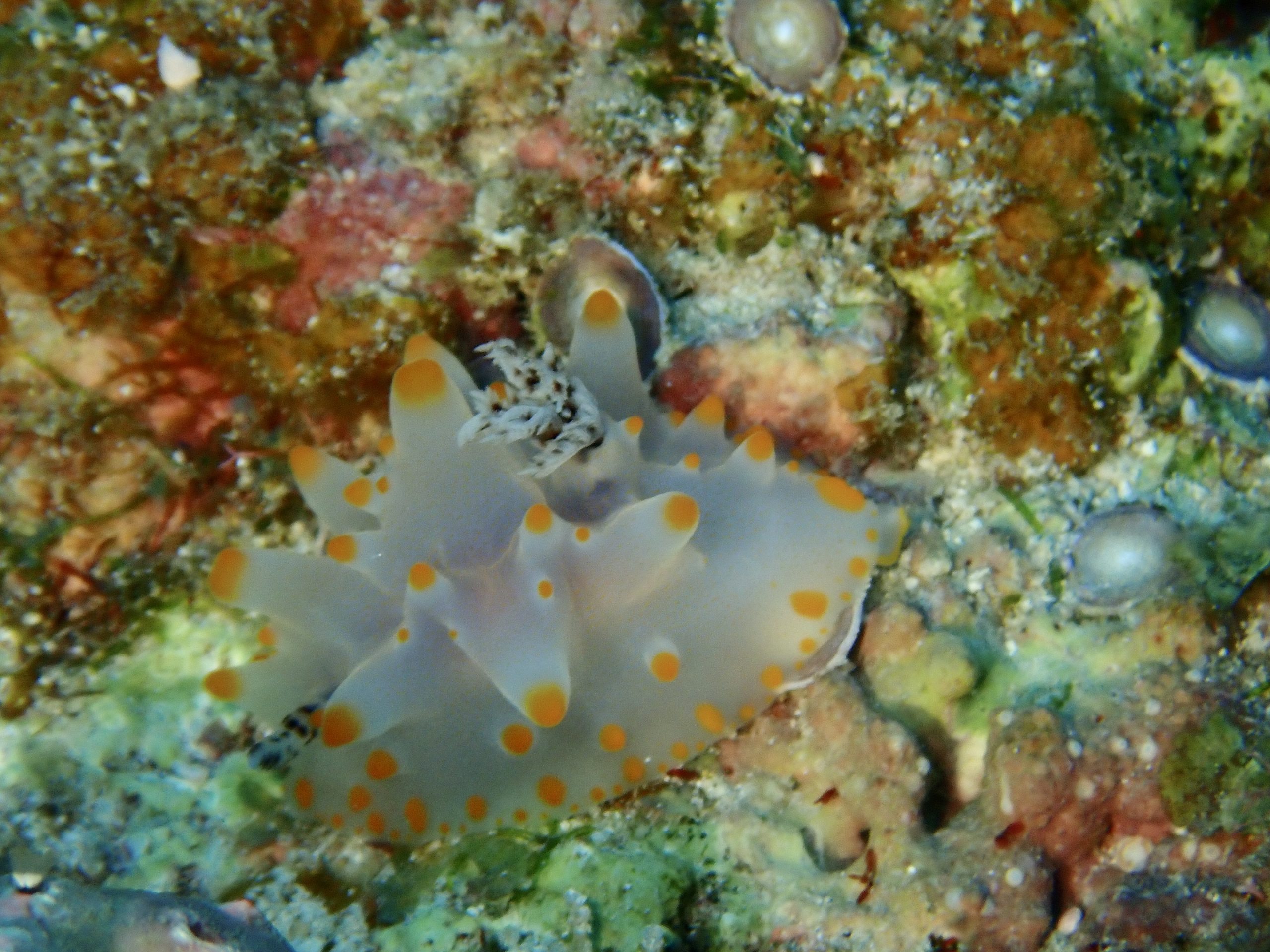 最後は35ホールへやってきました。午前中に比べてちょっと透明度が下がってました。ダイナミックなホールをじっくり鑑賞。ホールの中ではミゾレウミウシが見られました。アカマツカサもたくさん!最後は船下でヤスさんが見つけてくれたトウモンウミコチョウに釘付けでした。