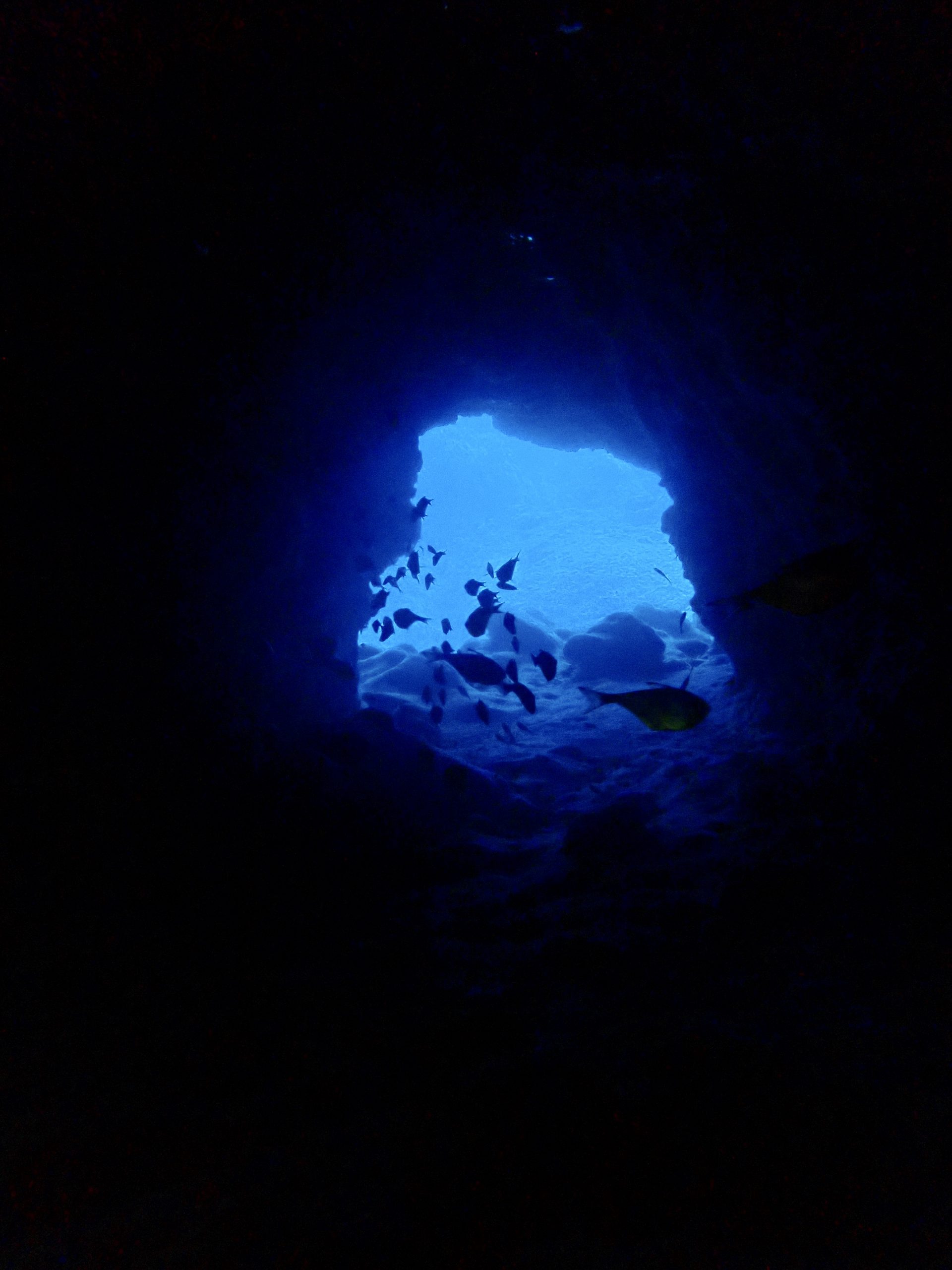 Wアーチに向かうとたくさんのダイバーで賑わっていました。大混雑です!透明度もまずまずで2つのアーチを色んな角度で眺めてきました。帰りにカメいないかな~?と探していると水面近くを小さなアオウミガメが登場!そして、大きめサイズのホワイトチップシャークもウロウロしていました。
