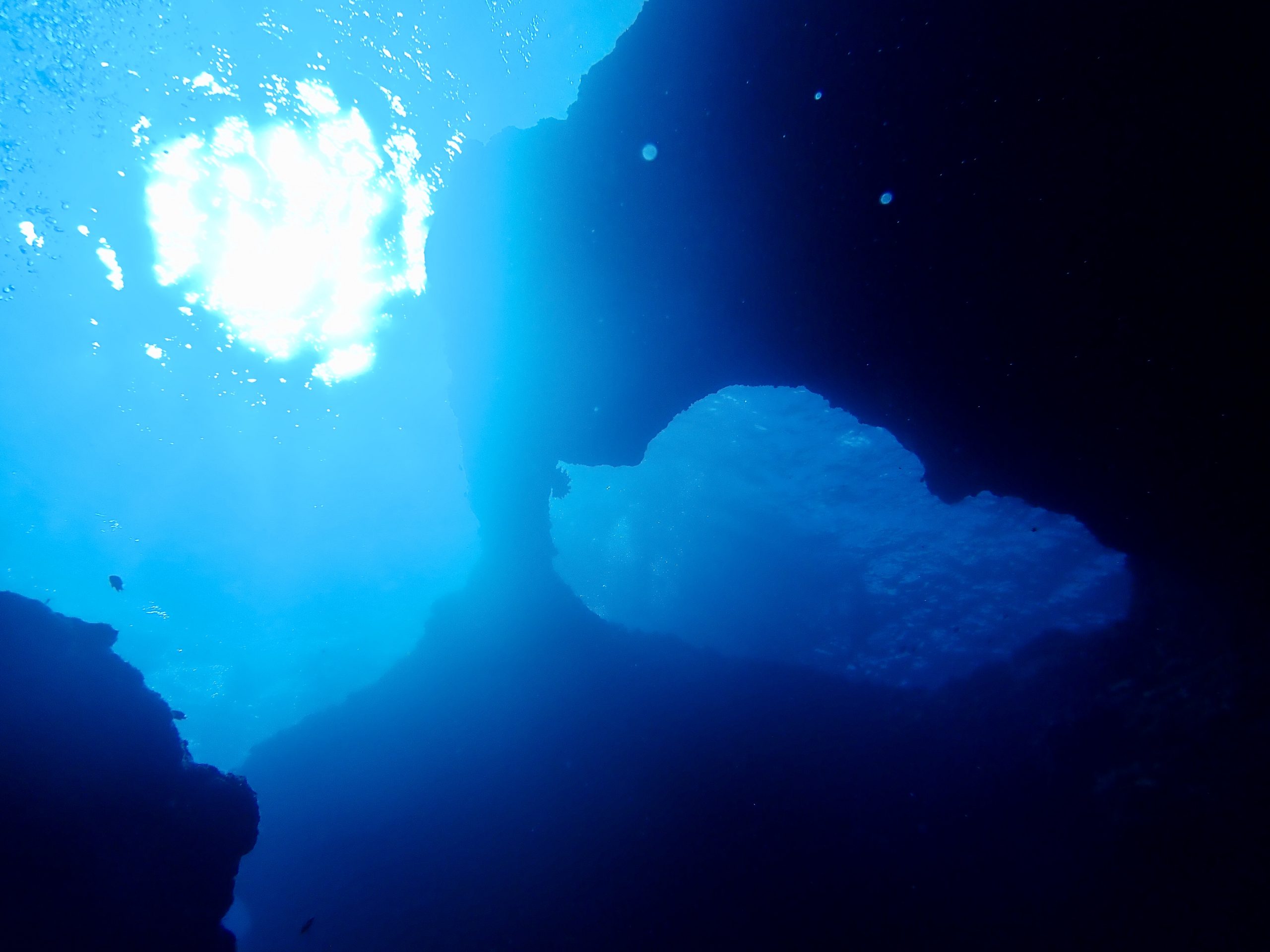 「Wアーチ」 透明度25m 天気:晴れ 気温:30℃ 水温:26℃ 南東の風 波:2m