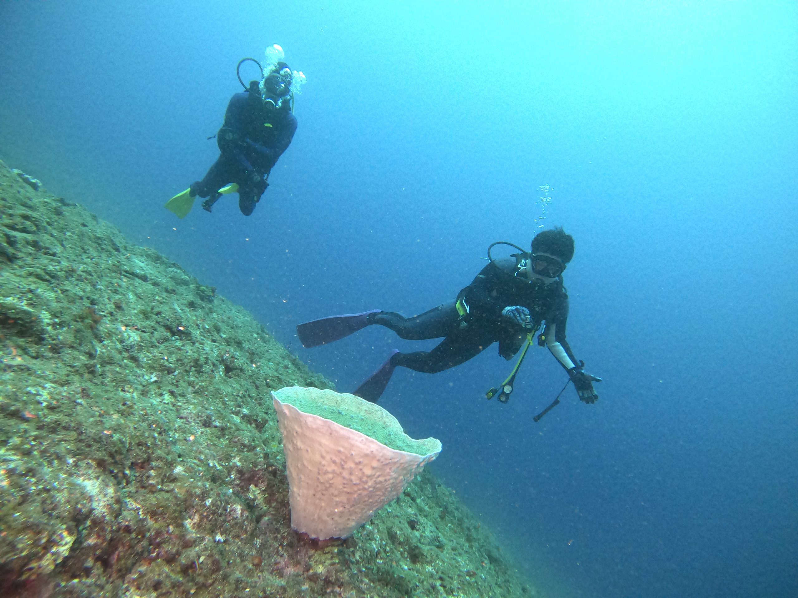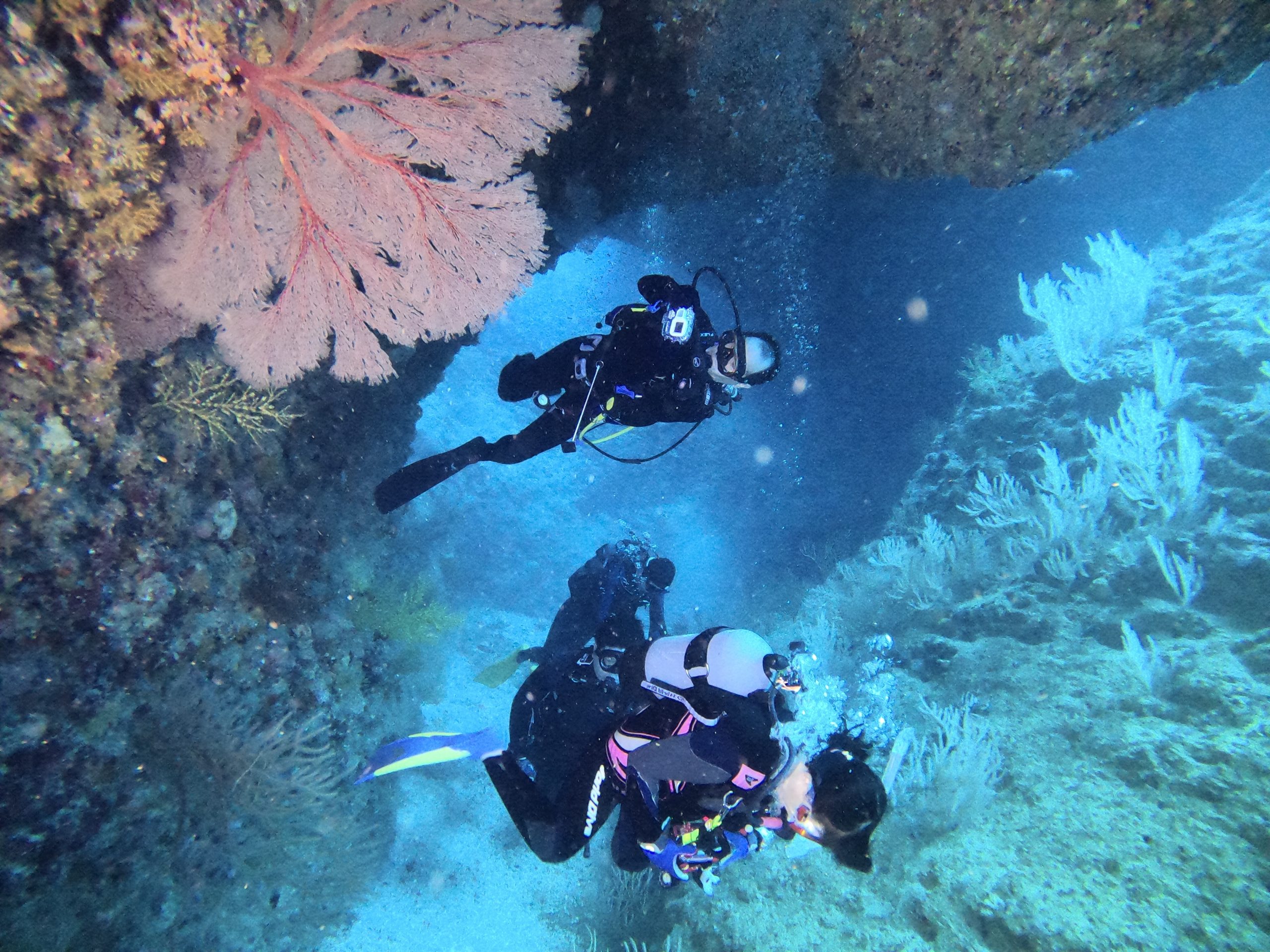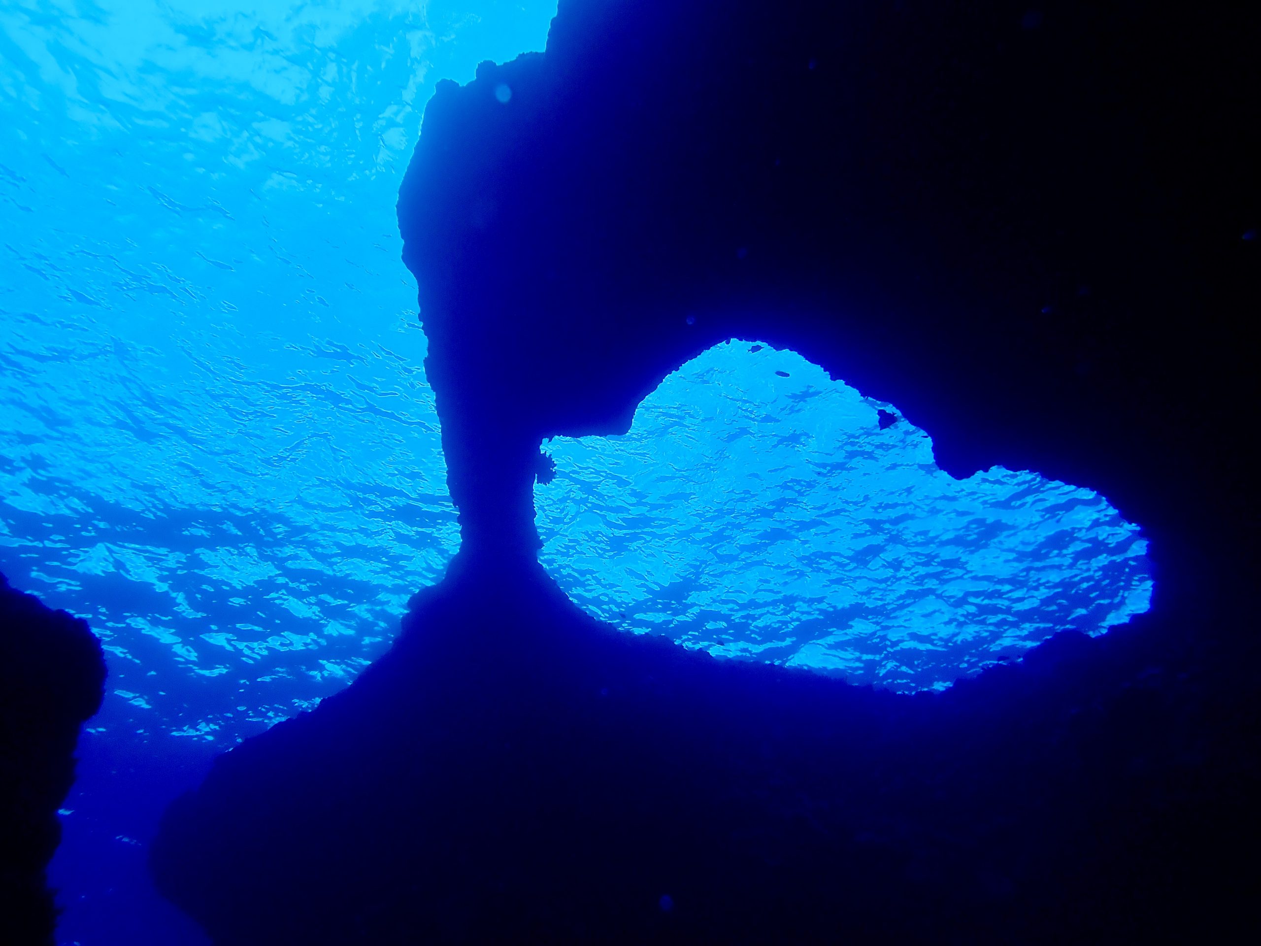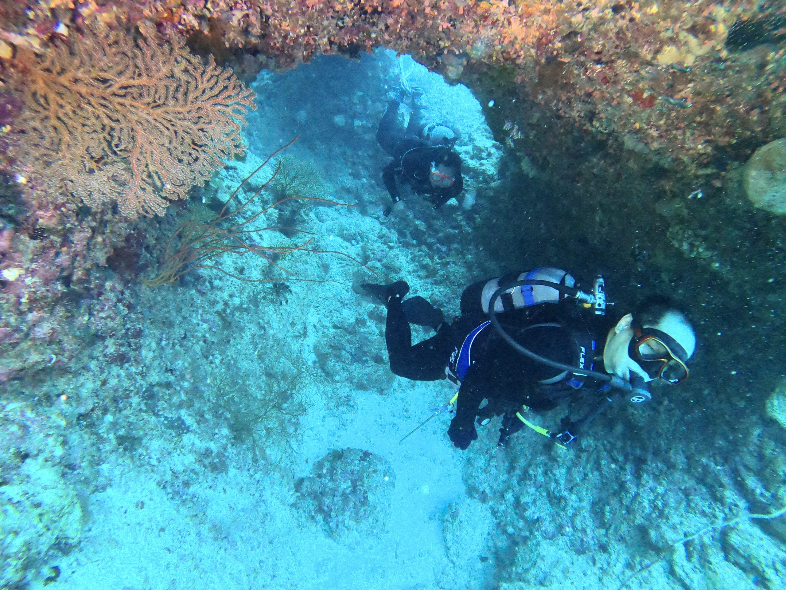 「ツインケーブ&エイトポールアーチ」透明度15m 天気☁時々☂ 水温25℃ 気温27℃ 北東の風 波2.5m