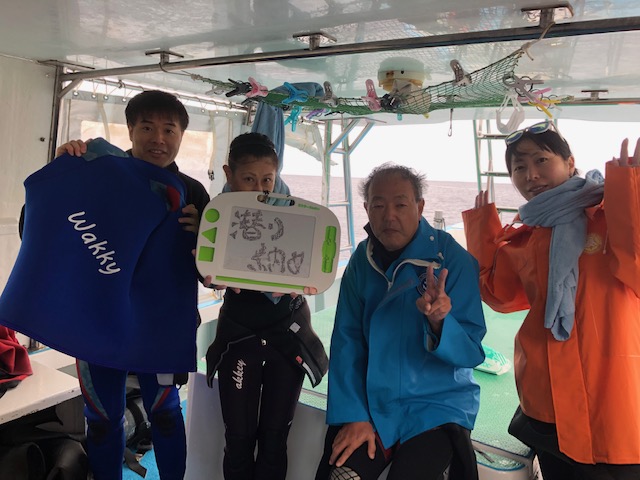 「ガオー」透明度15m 天気☁ 水温23℃ 気温15℃ 北風 波7m