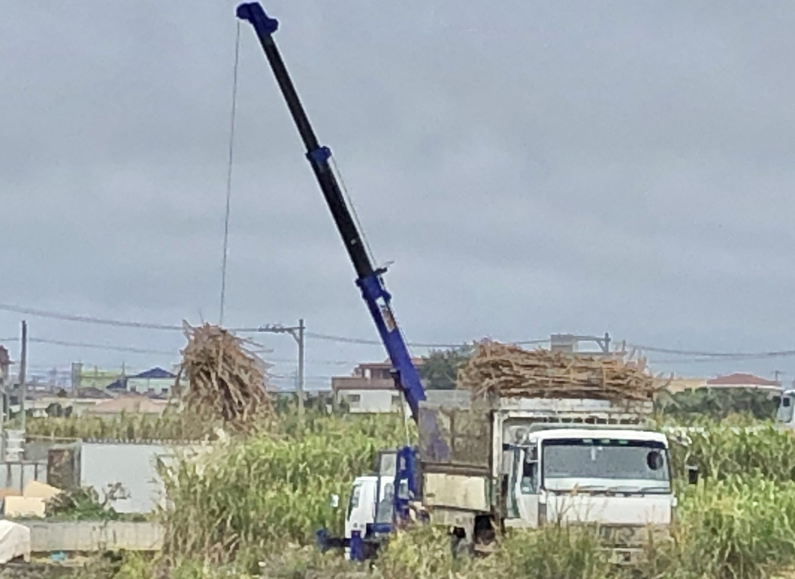 手がりのサトウキビを運搬準備。