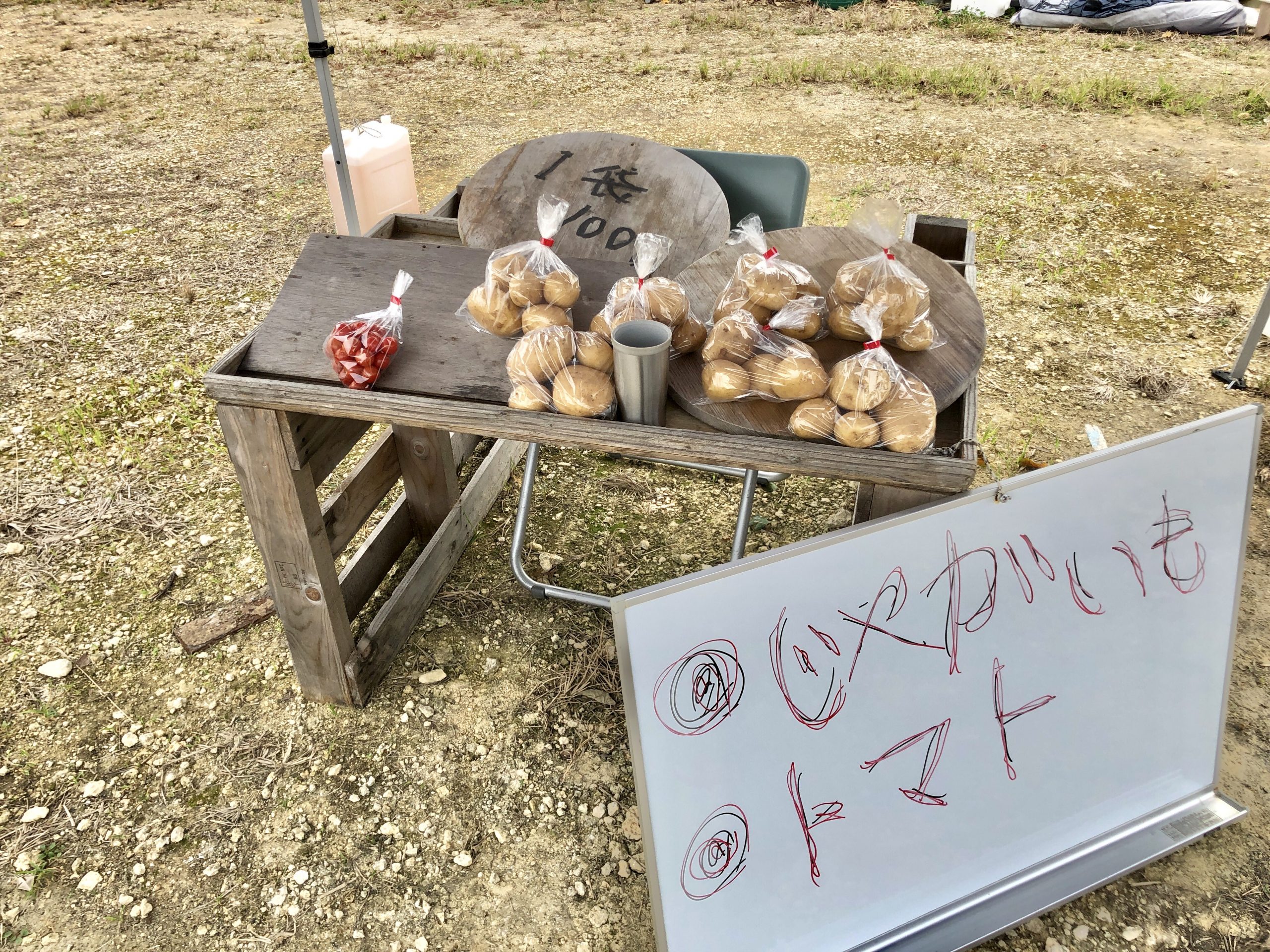 部落内の団地前に無人販売所がありました。