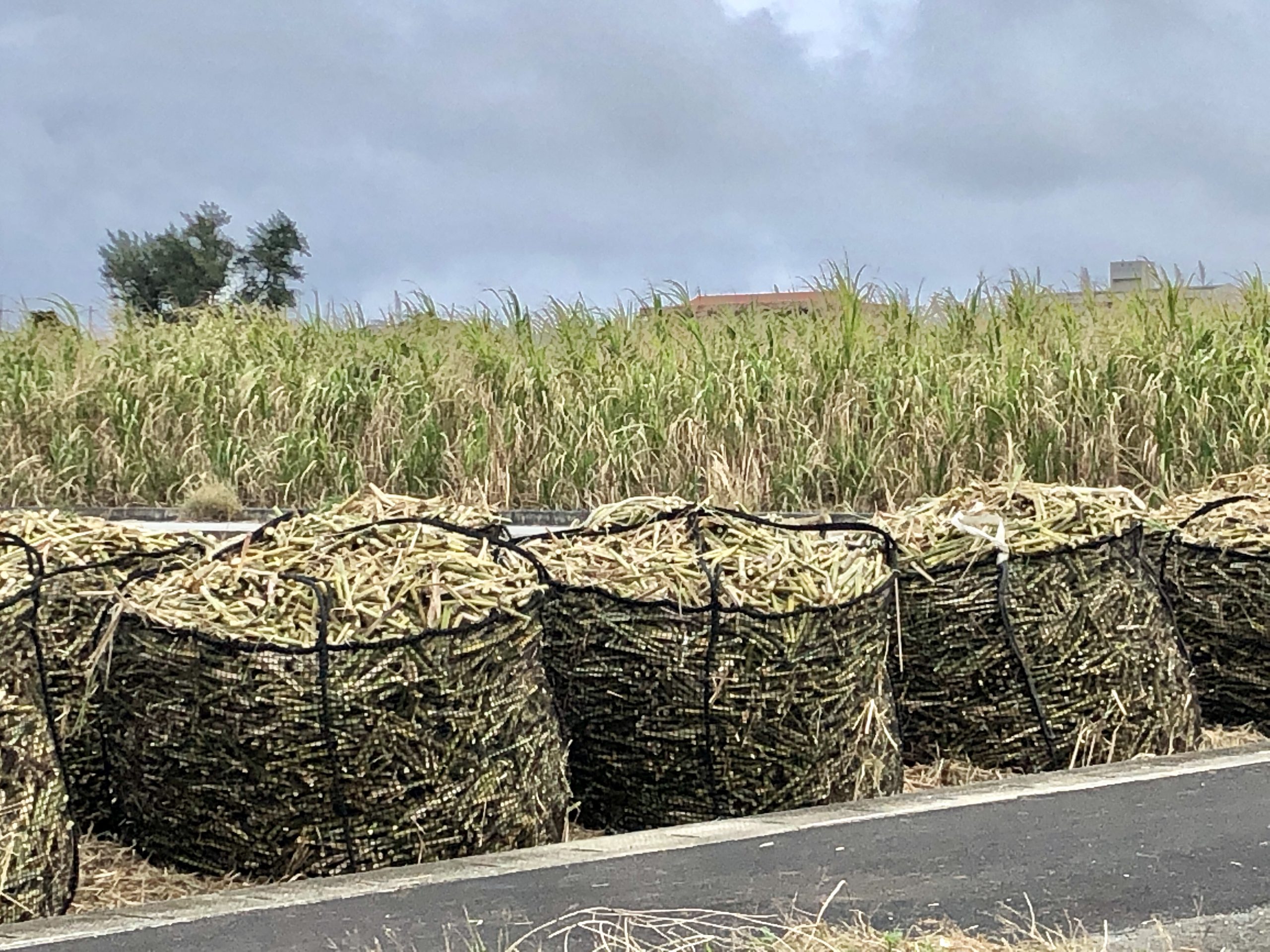 ハーベスターで刈ったさとうきびたち。