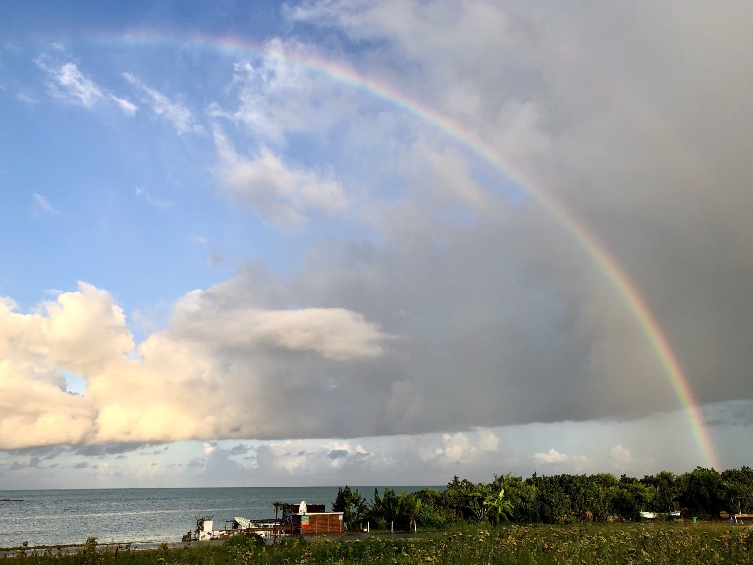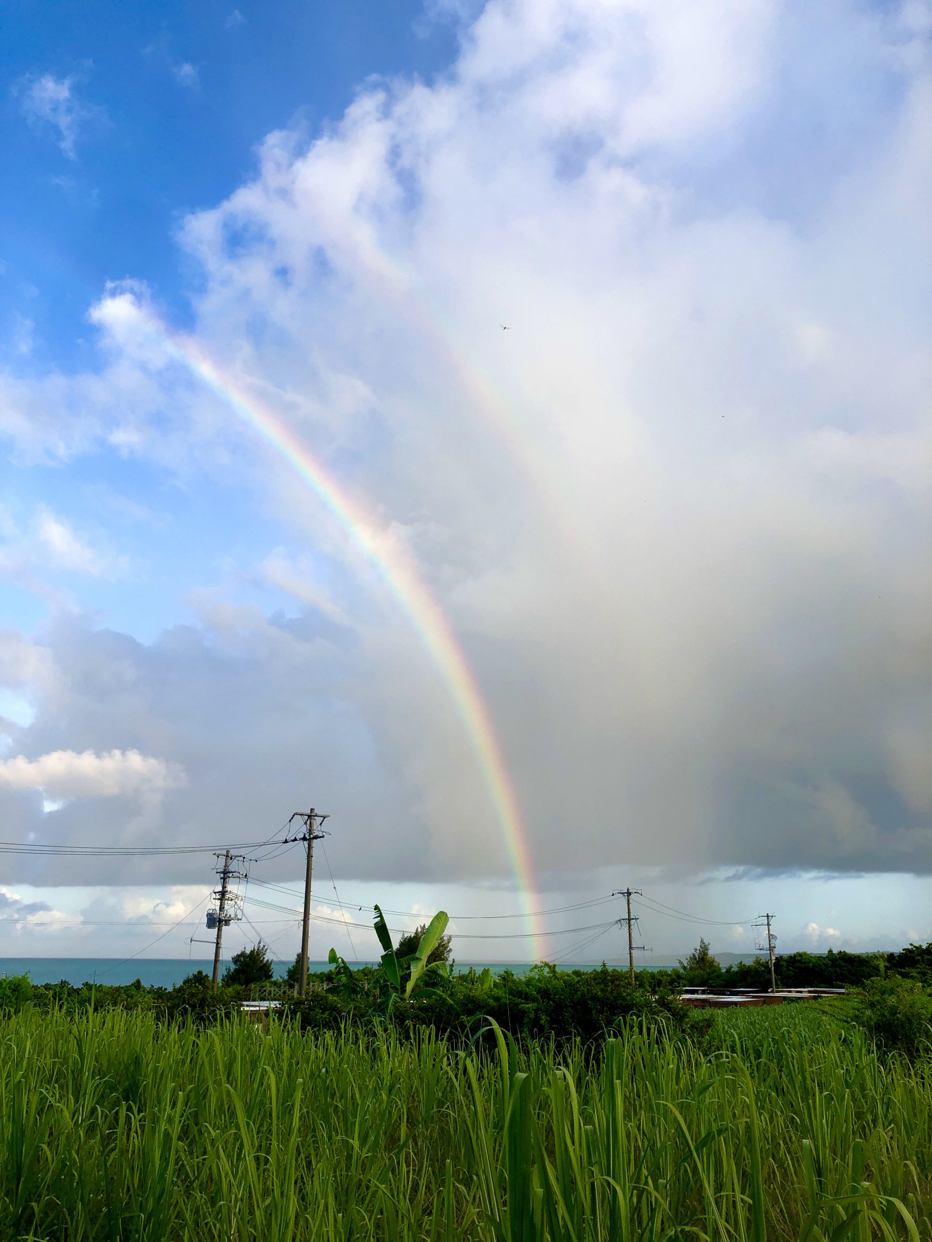 6月30日(金) 定休日です。明日から7月!! コメントを残す こんばんわ。 本日は定休日。 朝のモズクのお散歩時。 雨にザー!!!と降られた後に虹!! ダブルレインボー!! 海から虹色光線が出てます。 出てます! 虹のかけらも雲にひっかかってる。 昨夜は今が盛りのサガリバナ鑑賞に。 なかなかの人でした! 妖艶な香りが充満してました~ 今回は苗木を買っちゃいました!! うちの庭で育つのかな?? さて、明日から7月です!! 7~10月は応援スタッフヨッシーが常駐します!! まぁ