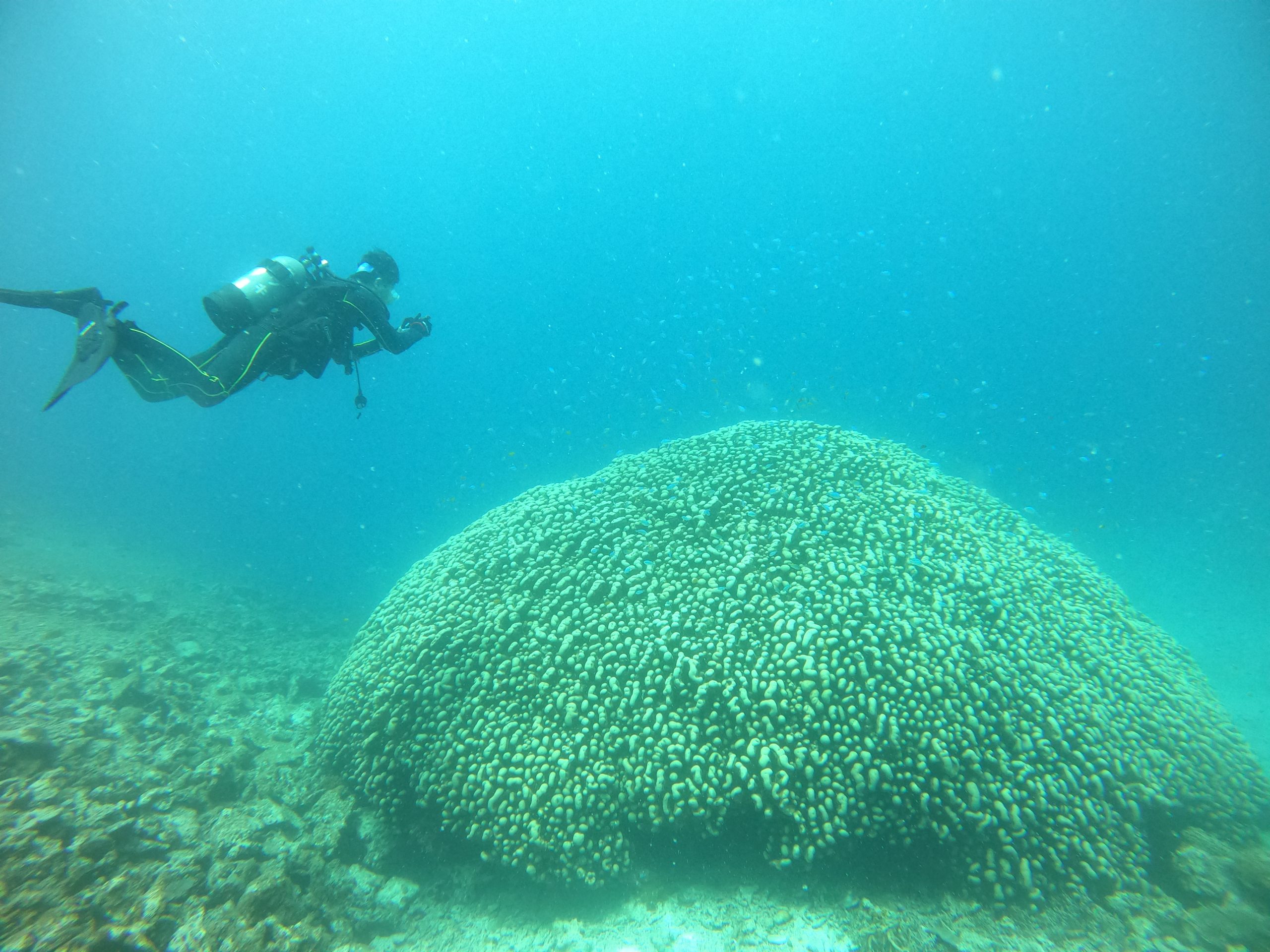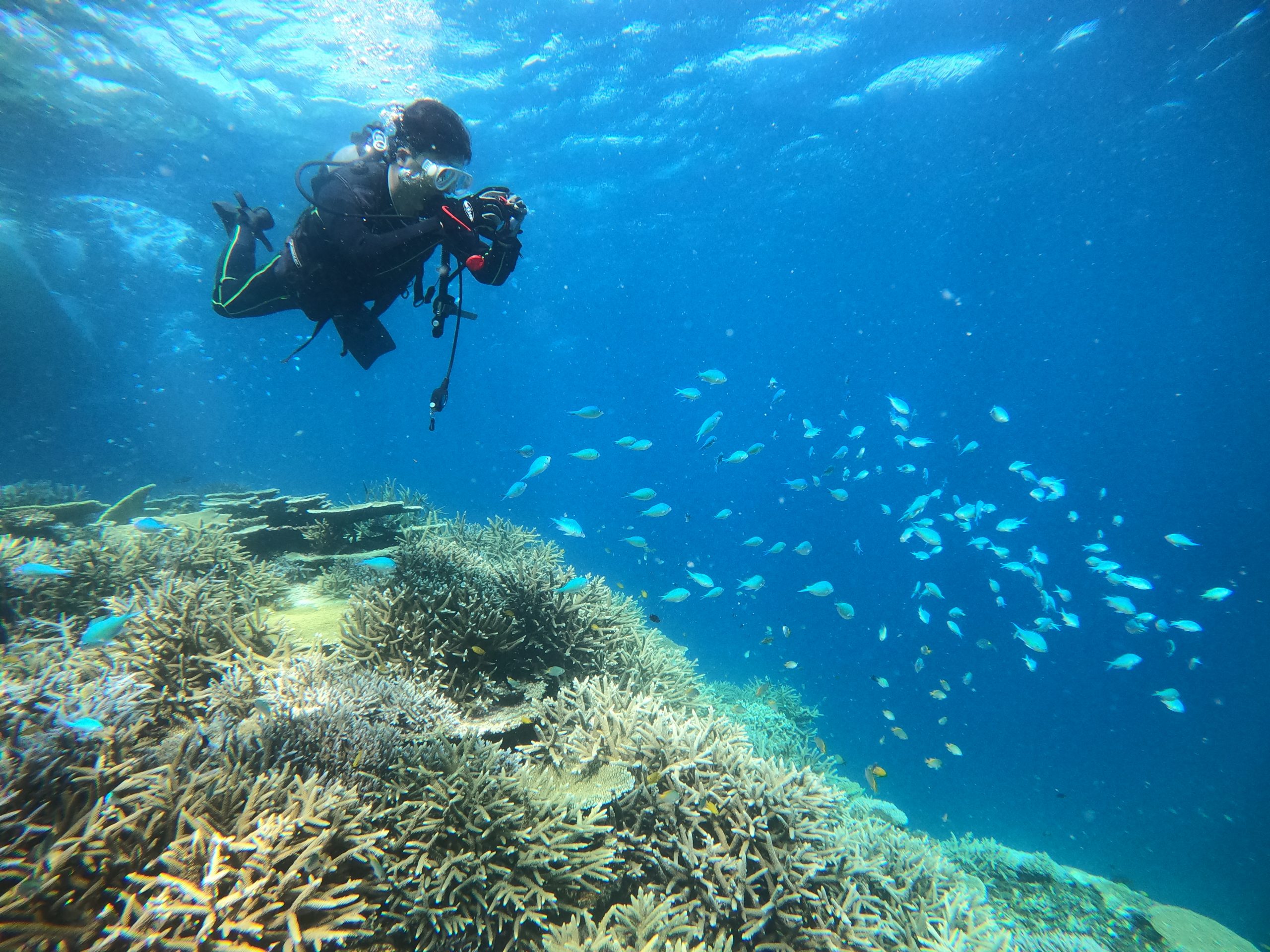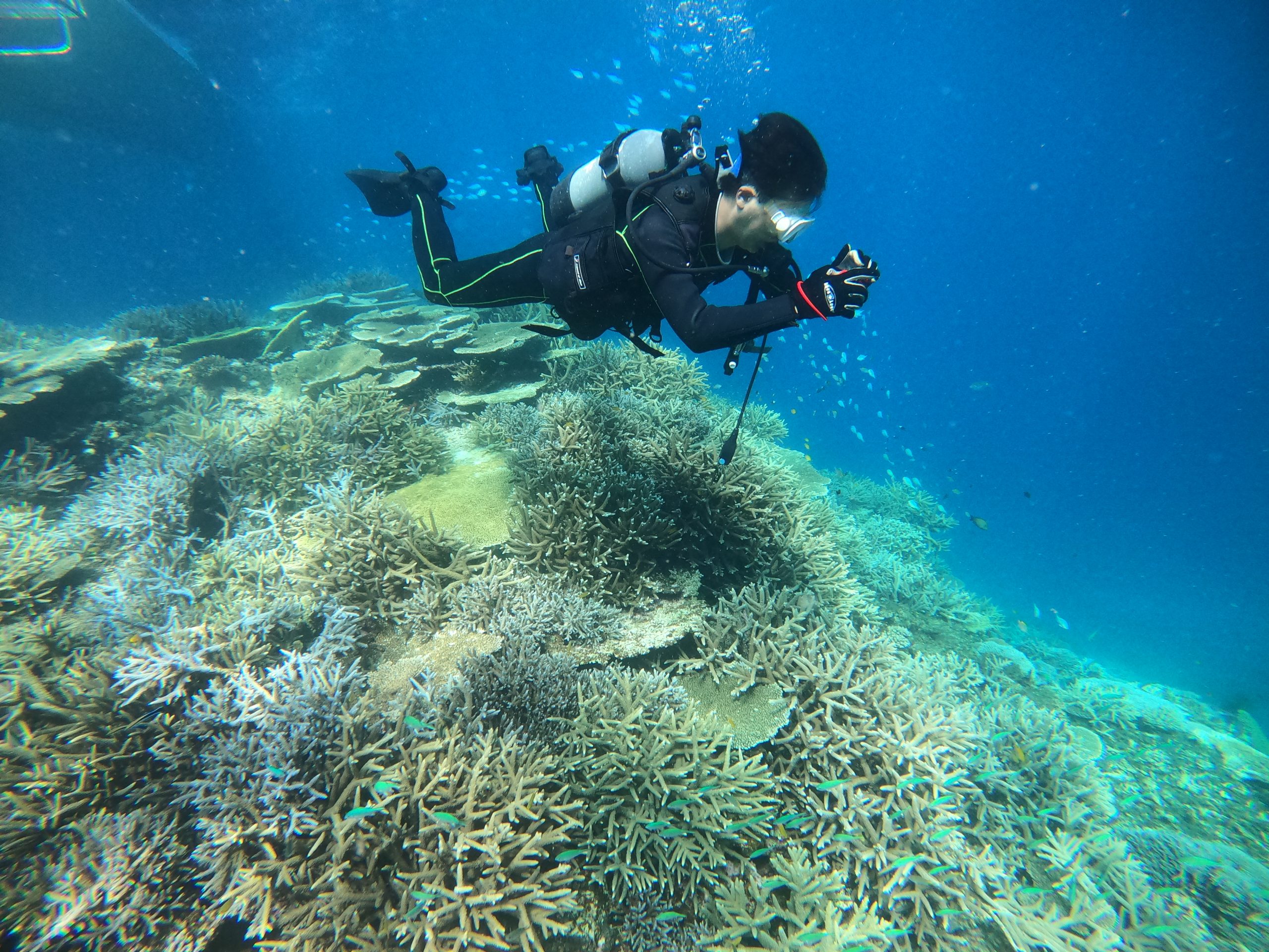 ダイバーは表情の変わる海中を