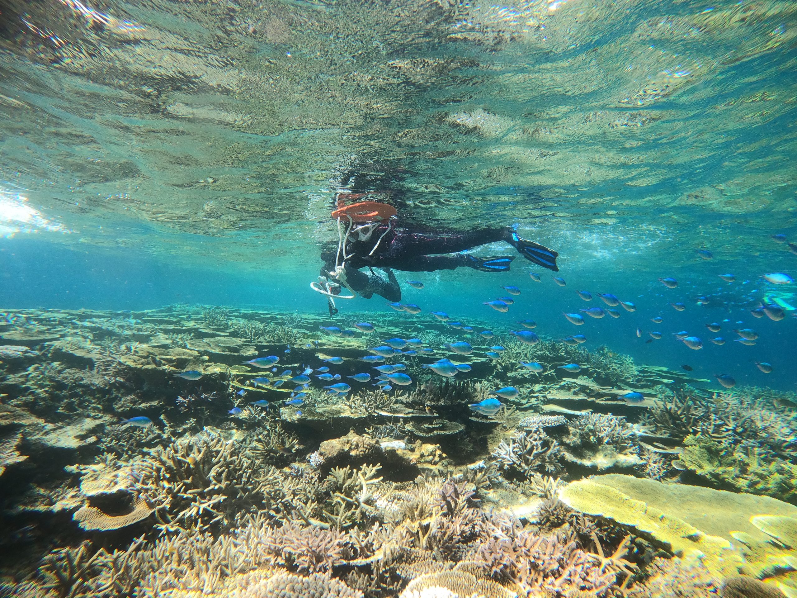 スノーケルチームも浅場のサンゴにうっとり。