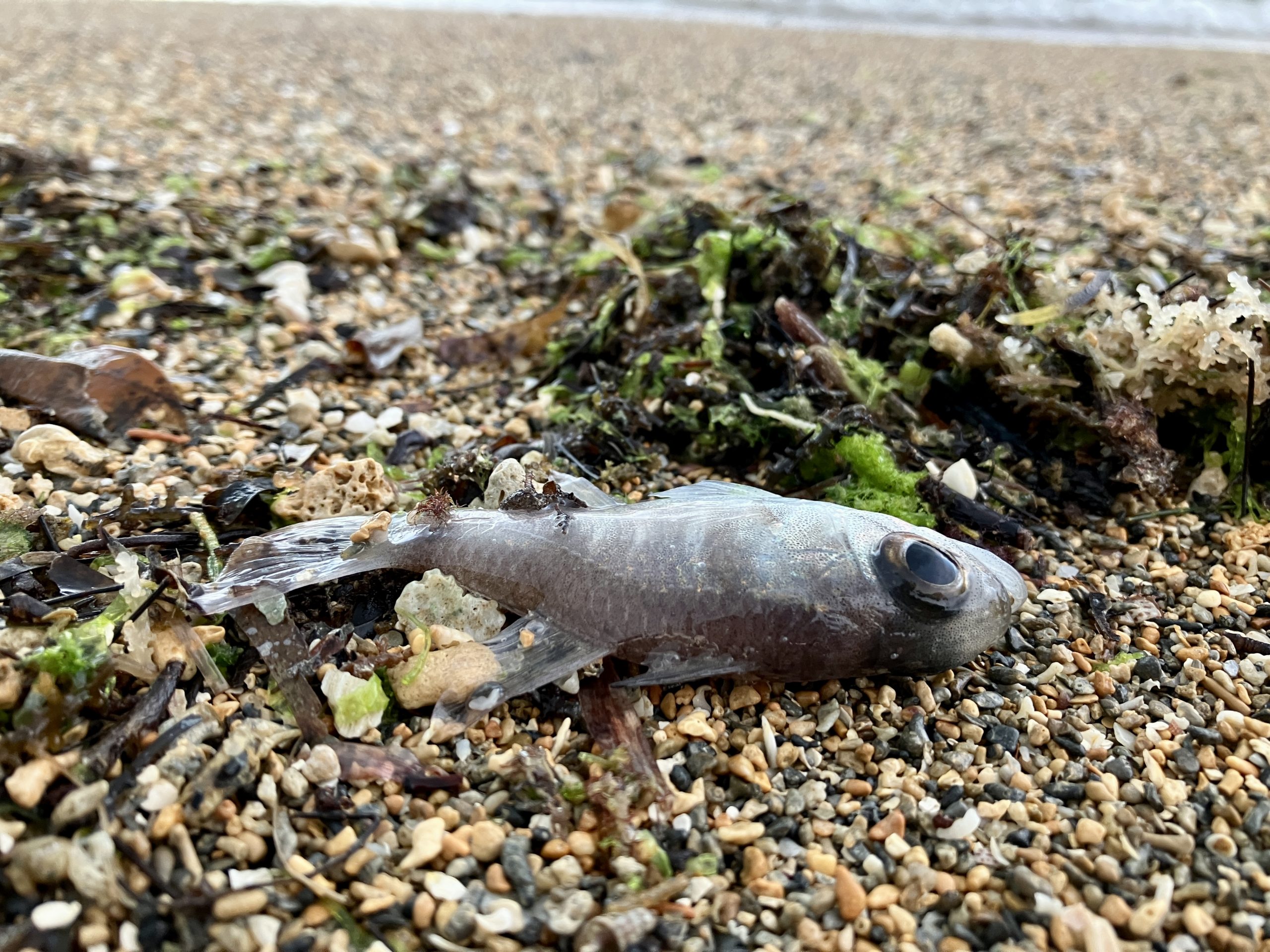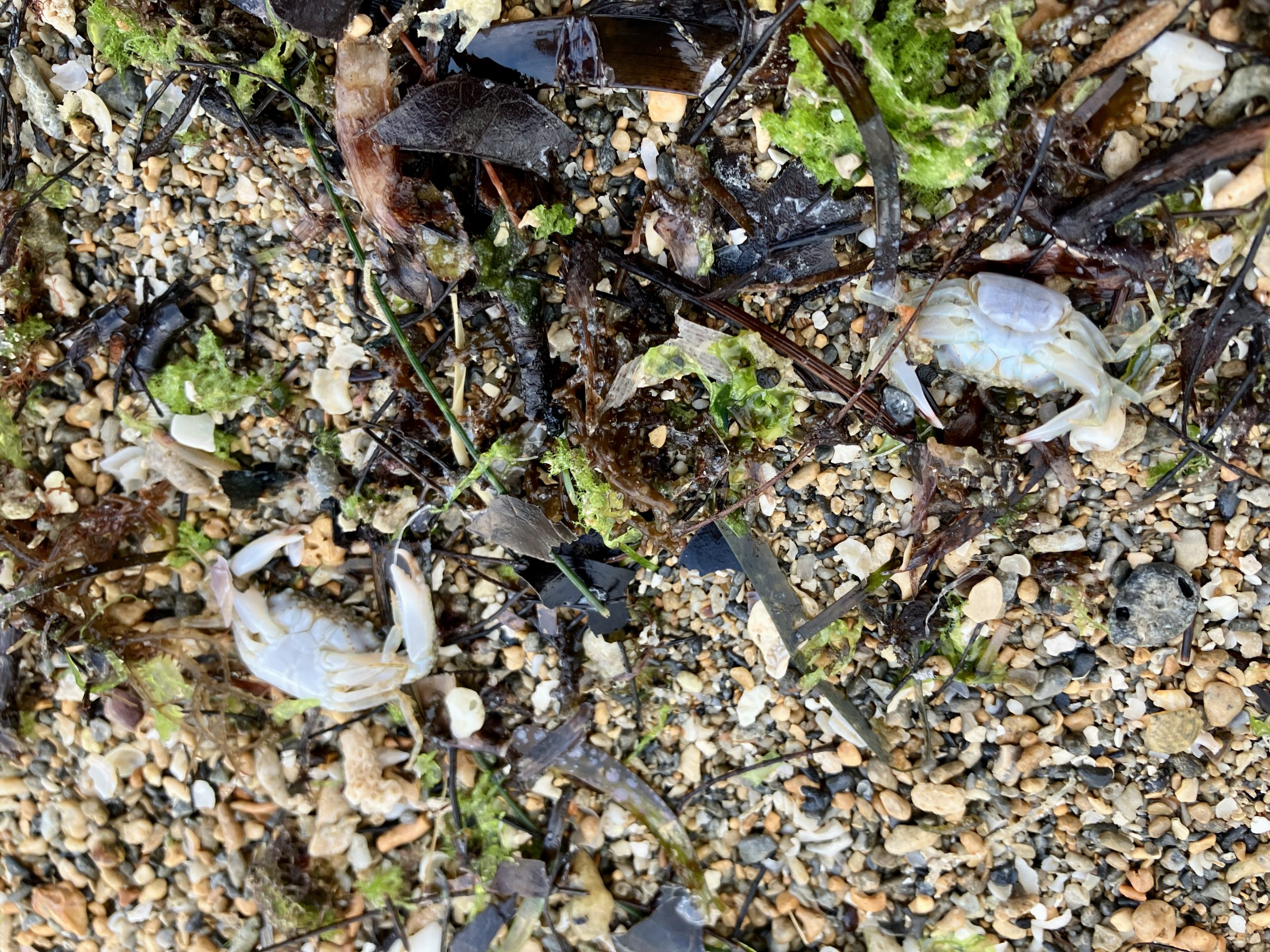干潮時にアオサの養殖網が色づいているのを発見!