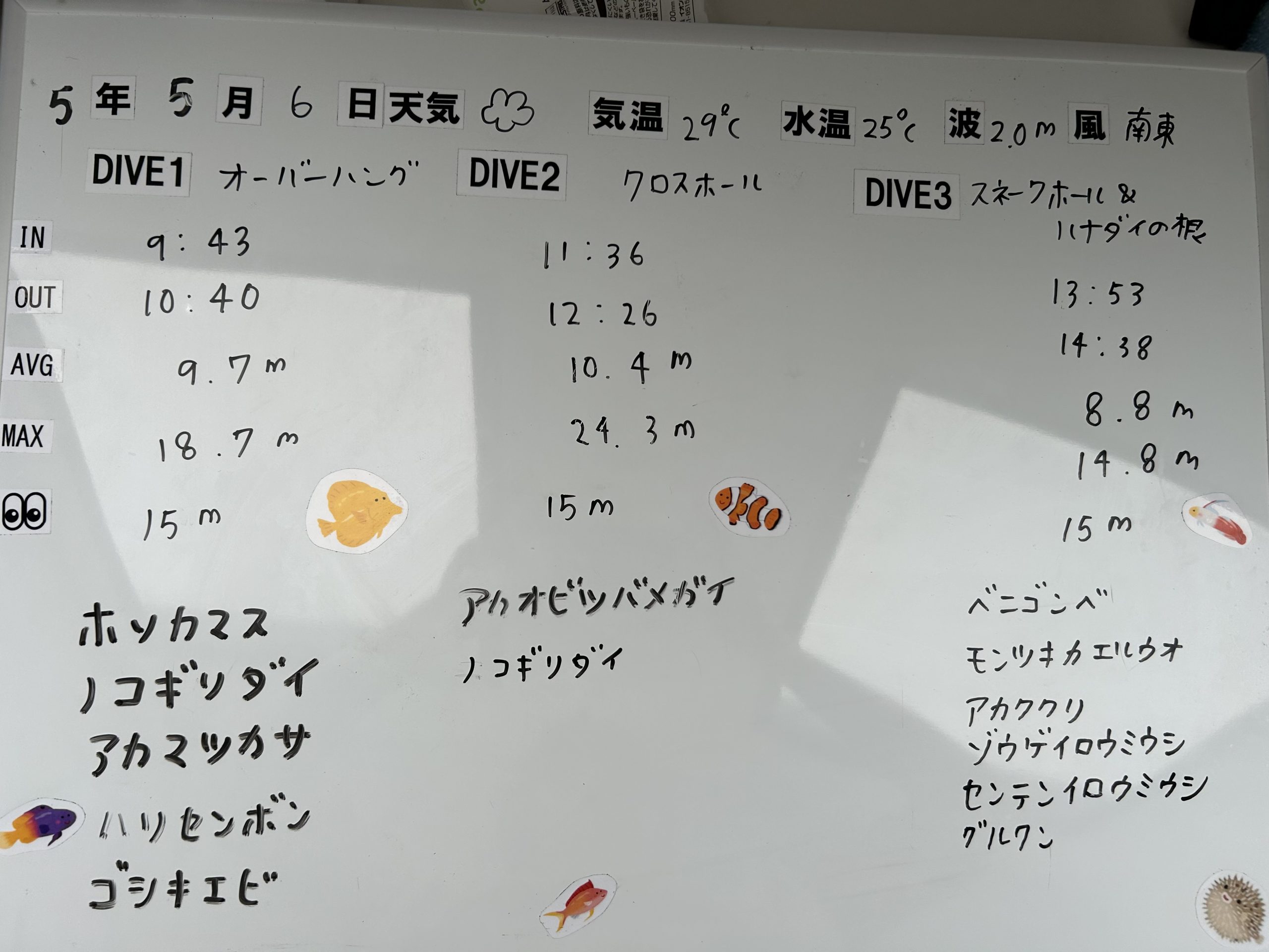 5月6日(土) コメントを残す みなさまごきげんよう。 ゴールデンウィーク落ち着いてきた 今日この頃。 実は、 アドバンス講習やってました DCIM101GOPROGOPR1855.JPG なんだかんだ ゴールデンウィーク中はお天気もまずまず。 クロスホールも光バッチリ! DCIM101GOPROGOPR1826.JPG ノコギリダイもばっちり DCIM101GOPROGOPR1833.JPG はじめての洞窟にゲスト様もにっこり DCIM101GOPROGOPR1839.JPG おさかなもたーーーーーーくさん見れてヨカッタ! DCIM101GOPROGOPR1846.JPG ゴールデンウィークもひと段落です! ランチは そぼろどん!! ✋ ハルカ