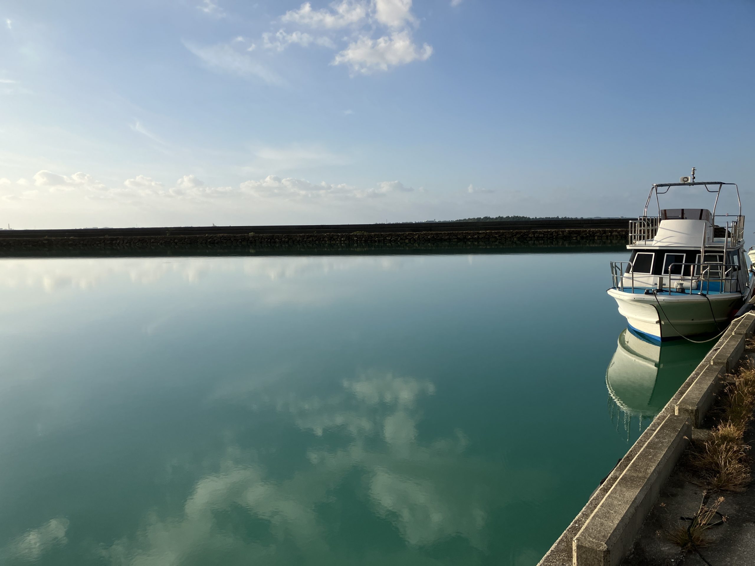 今朝は風が落ちて静かな港。