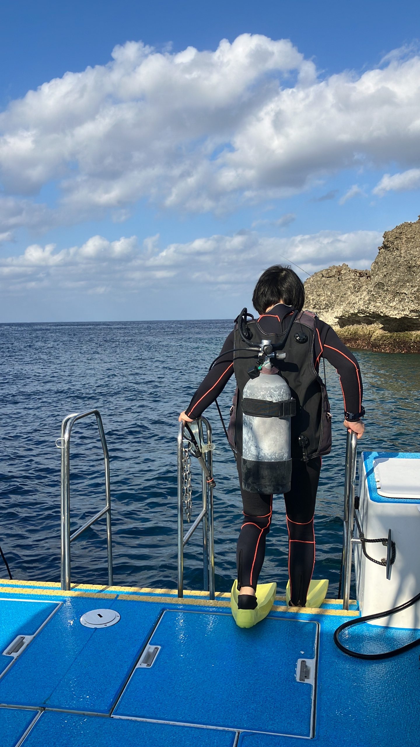 ウエットスーツ着てる途中でした。笑