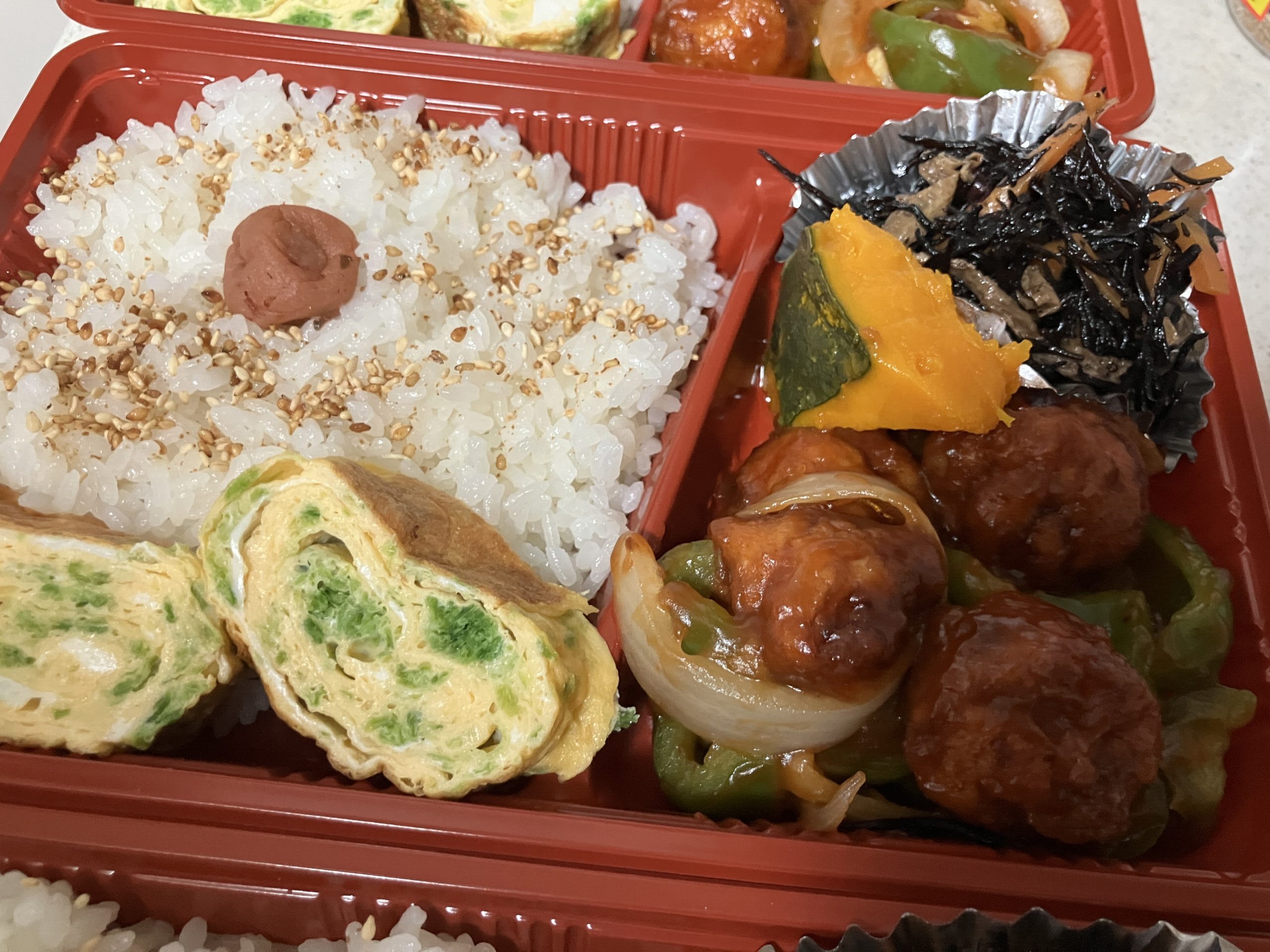 甘酢鳥だんご。卵焼きには旬のアオサ🎵