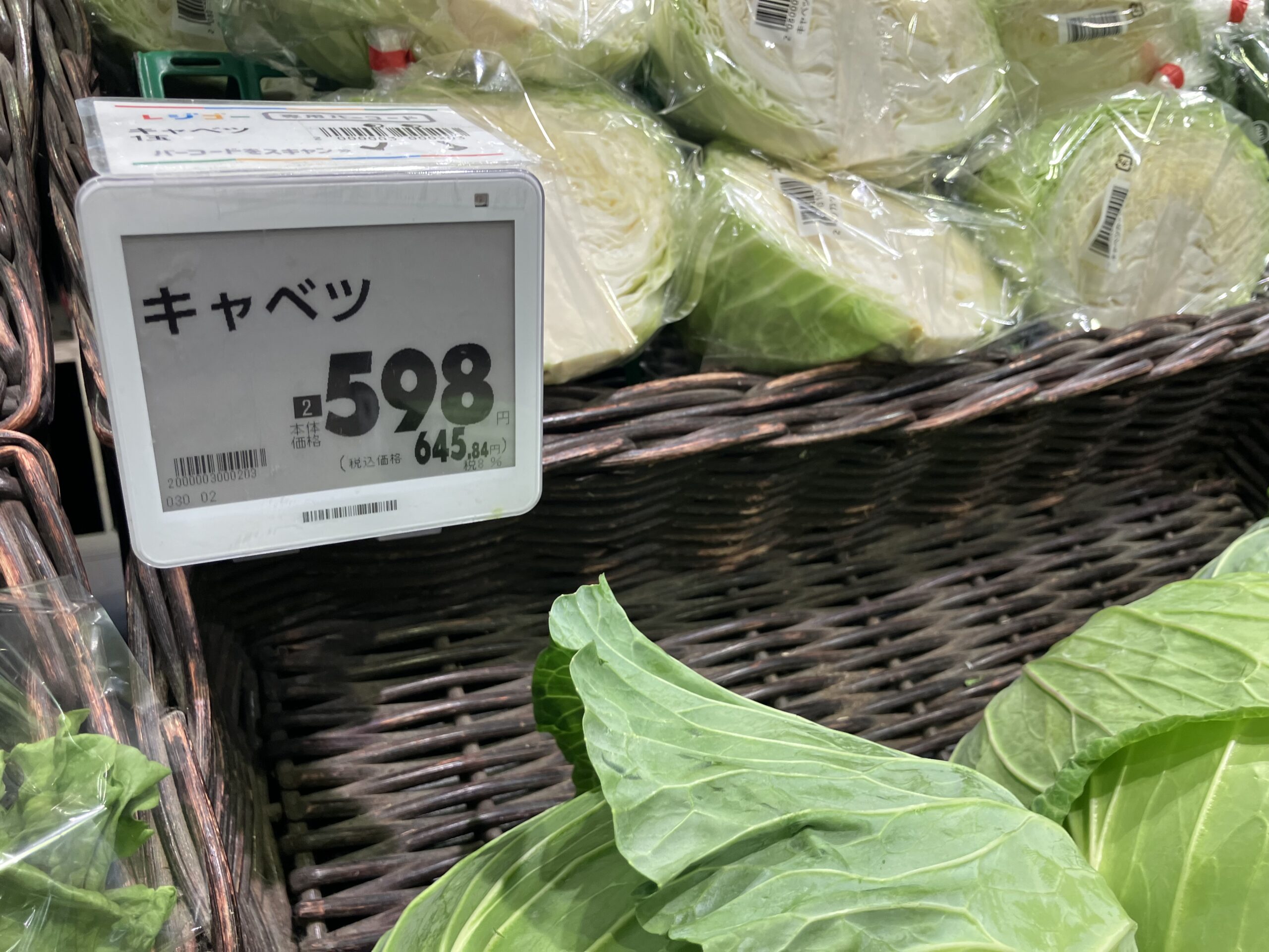 スーパーの野菜売り場ではきゃべつにびっくり!