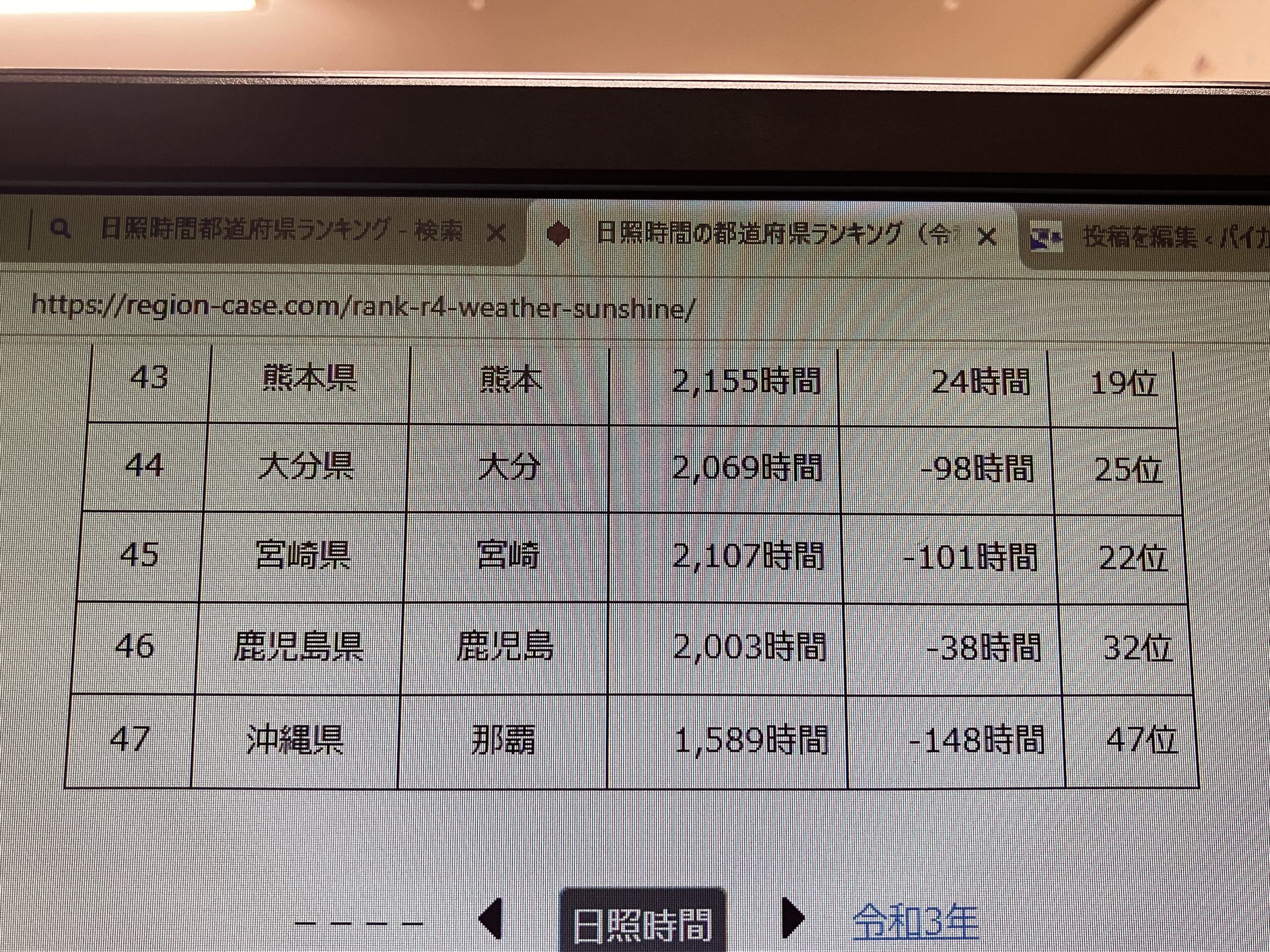 年間ではなんと日本で一番日照時間が少ない県らしいです