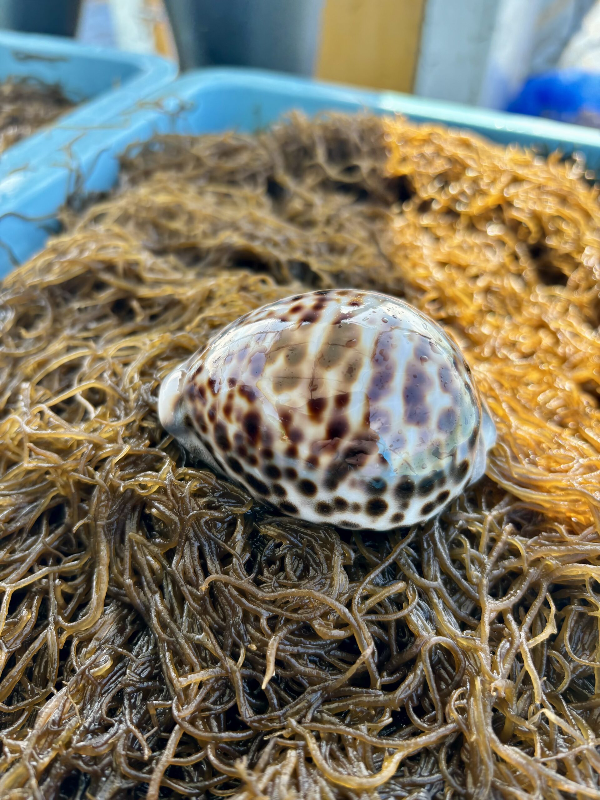 漁場は砂地なのに、たまにいるタカラガイ。
