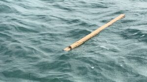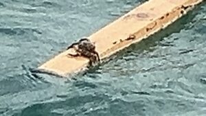 棒っきれにつかまったカニが流されてきた~